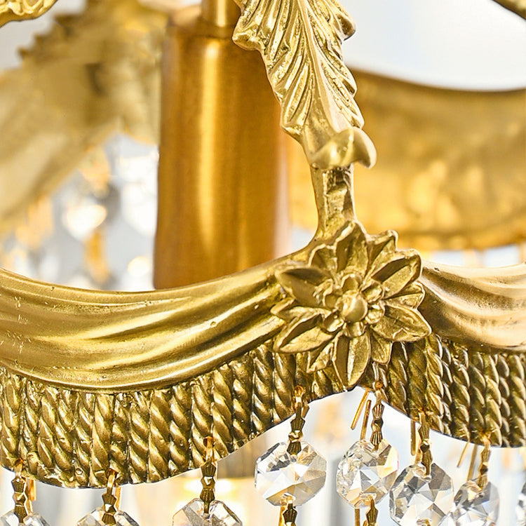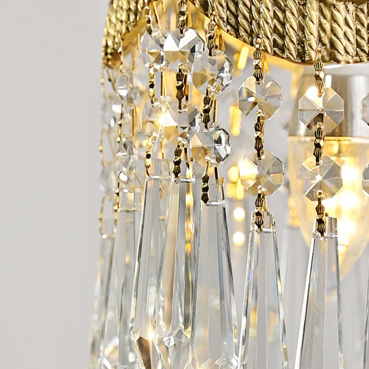 This elegant pendant light boasts a traditional French design in a striking golden hue, featuring a round tassel waterdrop style crafted from premium copper and crystal. Its adjustable hanging chain offers versatile installation, making it a perfect 1-light solution for both bedrooms and living rooms.