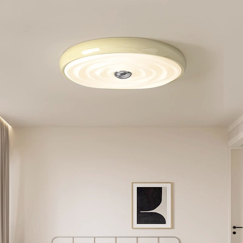 Traditional French Cream Round Iron LED Flush Mount Ceiling Light For Bedroom