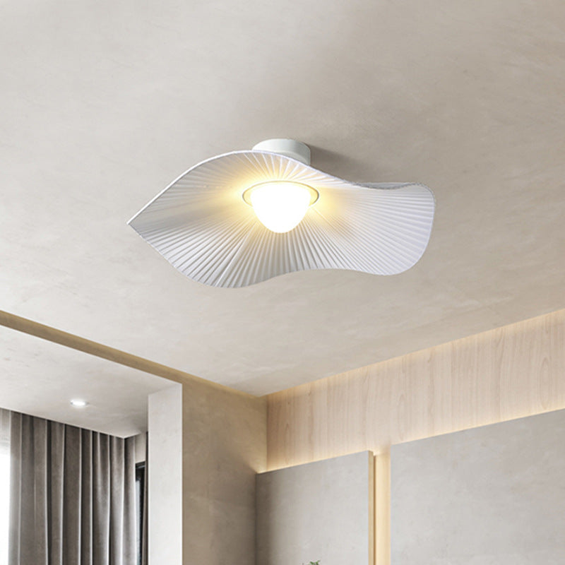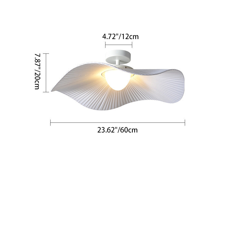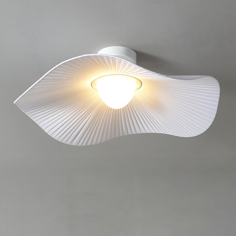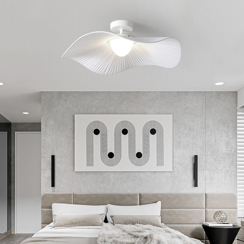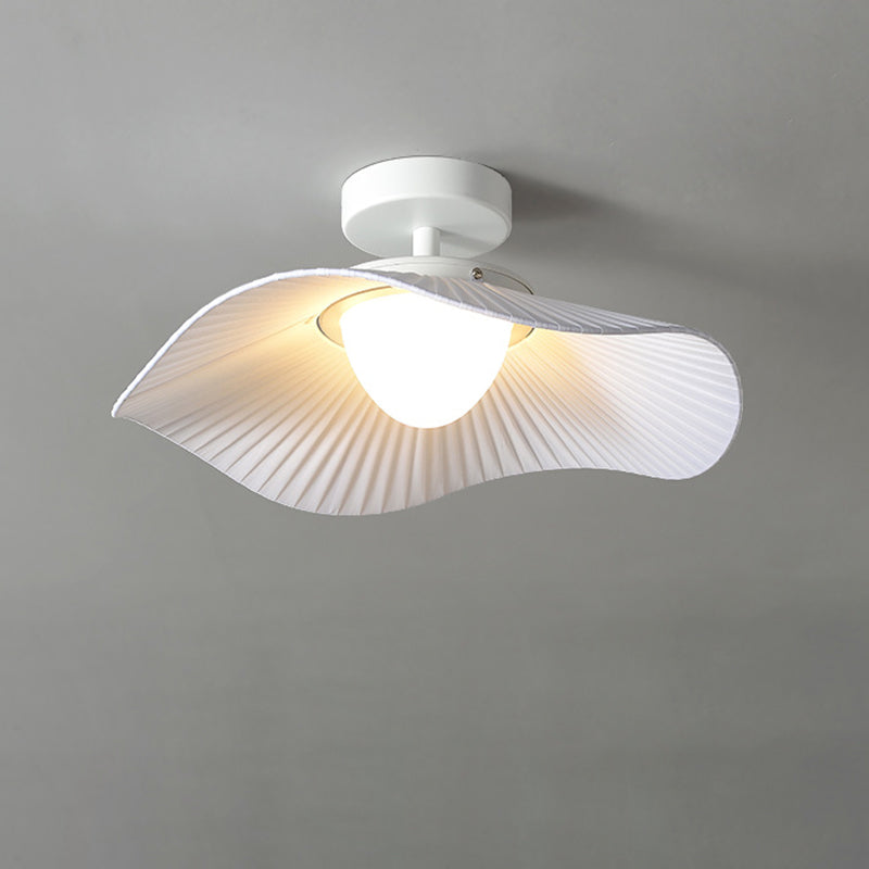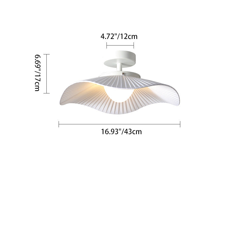 Traditional French Cream Ruffle Shape Fabric Iron LED Semi-Flush Mount Ceiling Light For Living Room