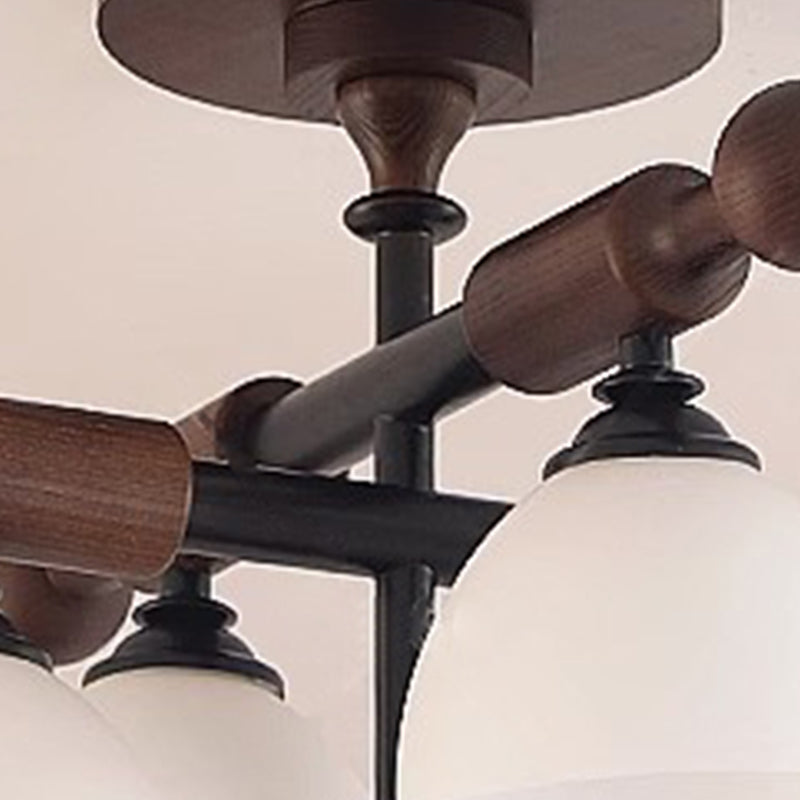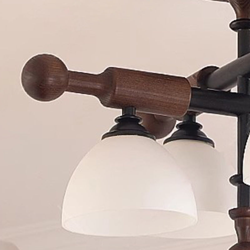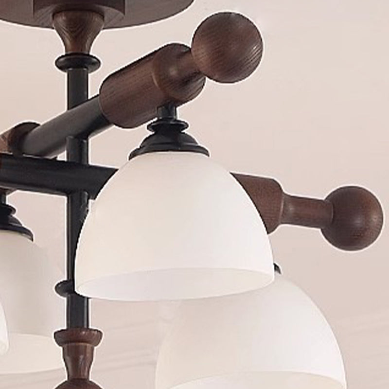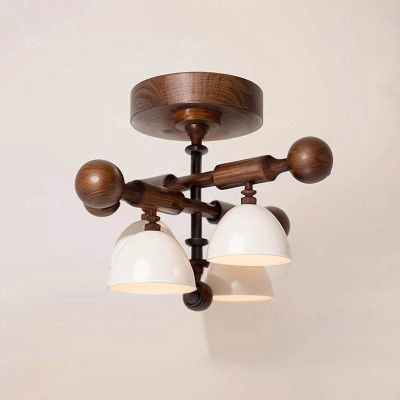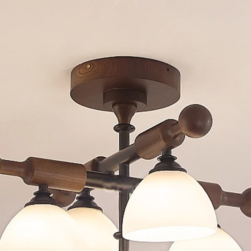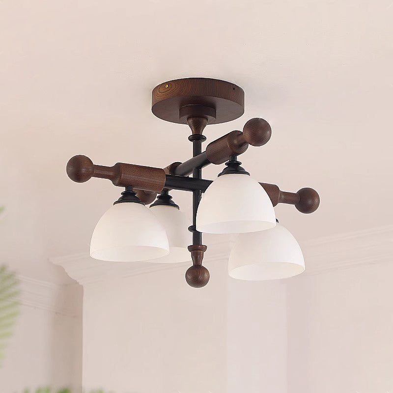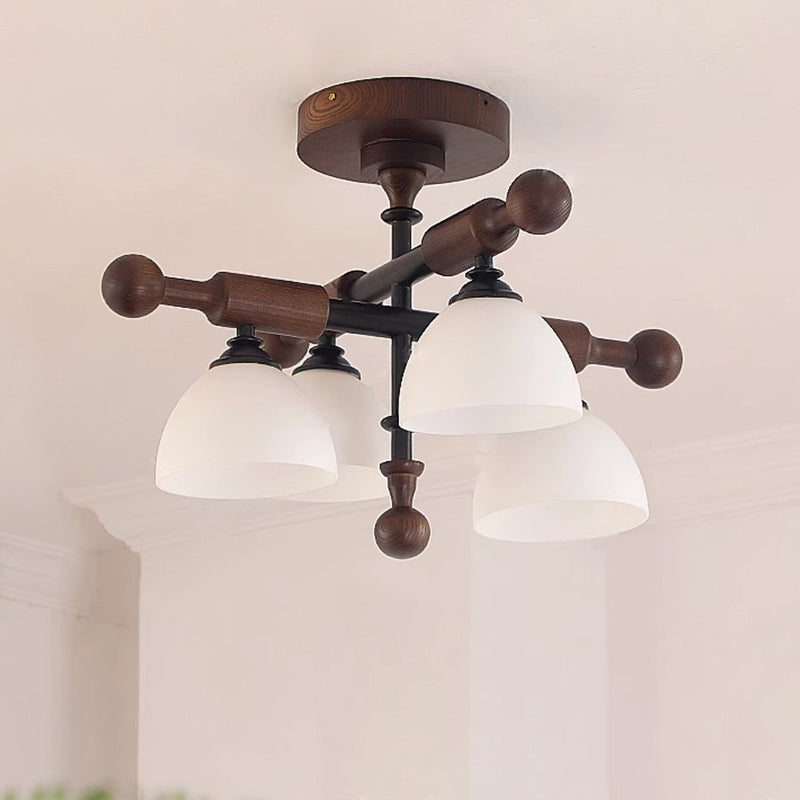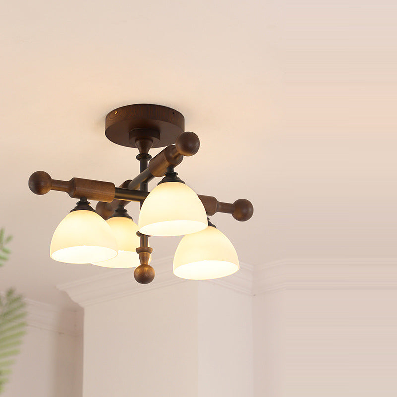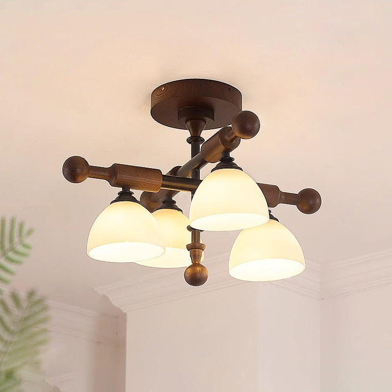 Traditional French Cross Dome Bowl Hardware Wood Frame Glass Shade 4-Light Semi-Flush Mount Ceiling Light For Living Room