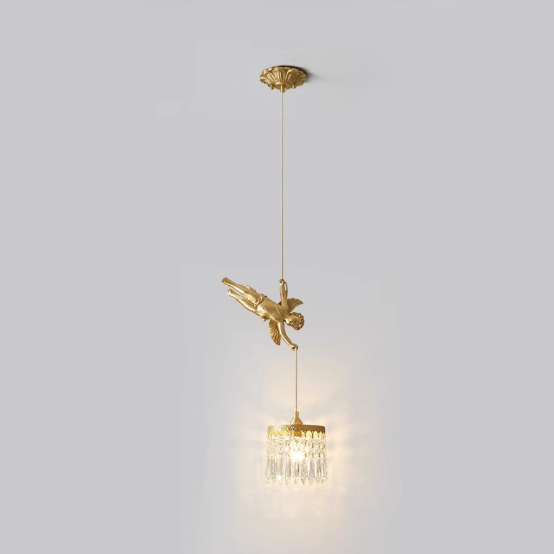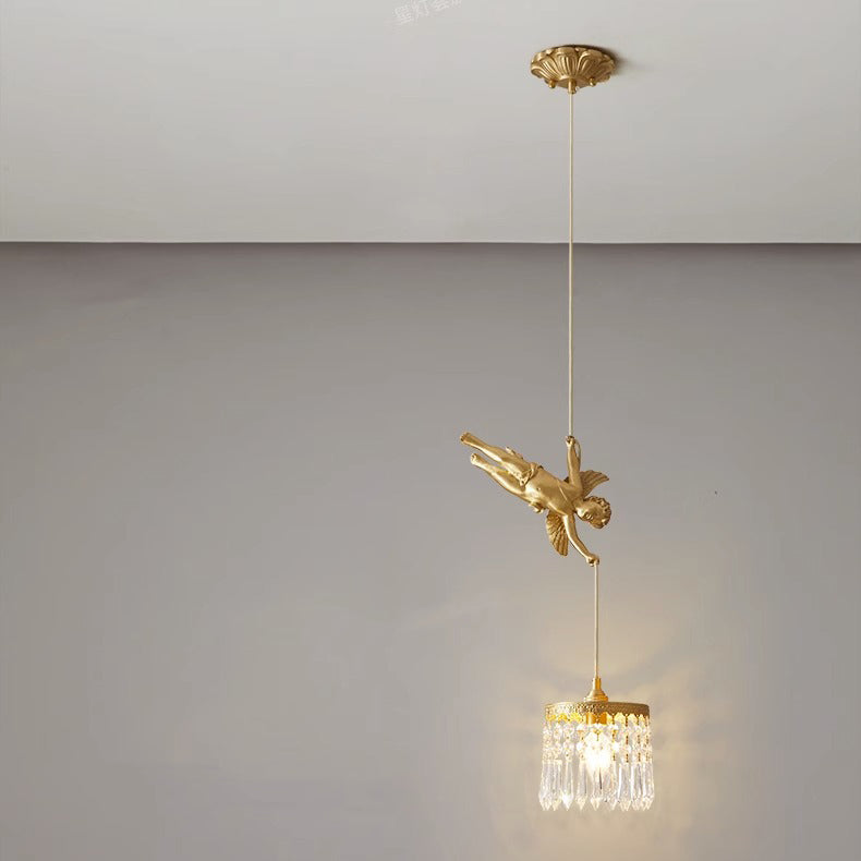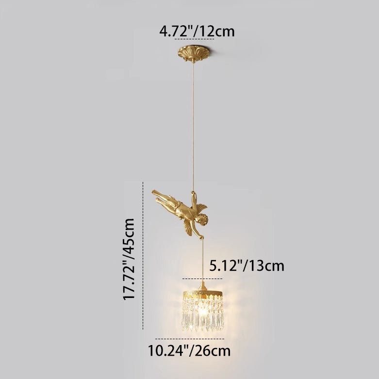 Traditional French Crystal Copper Angel Round 1-Light Pendant Light For Living Room & Dining Room