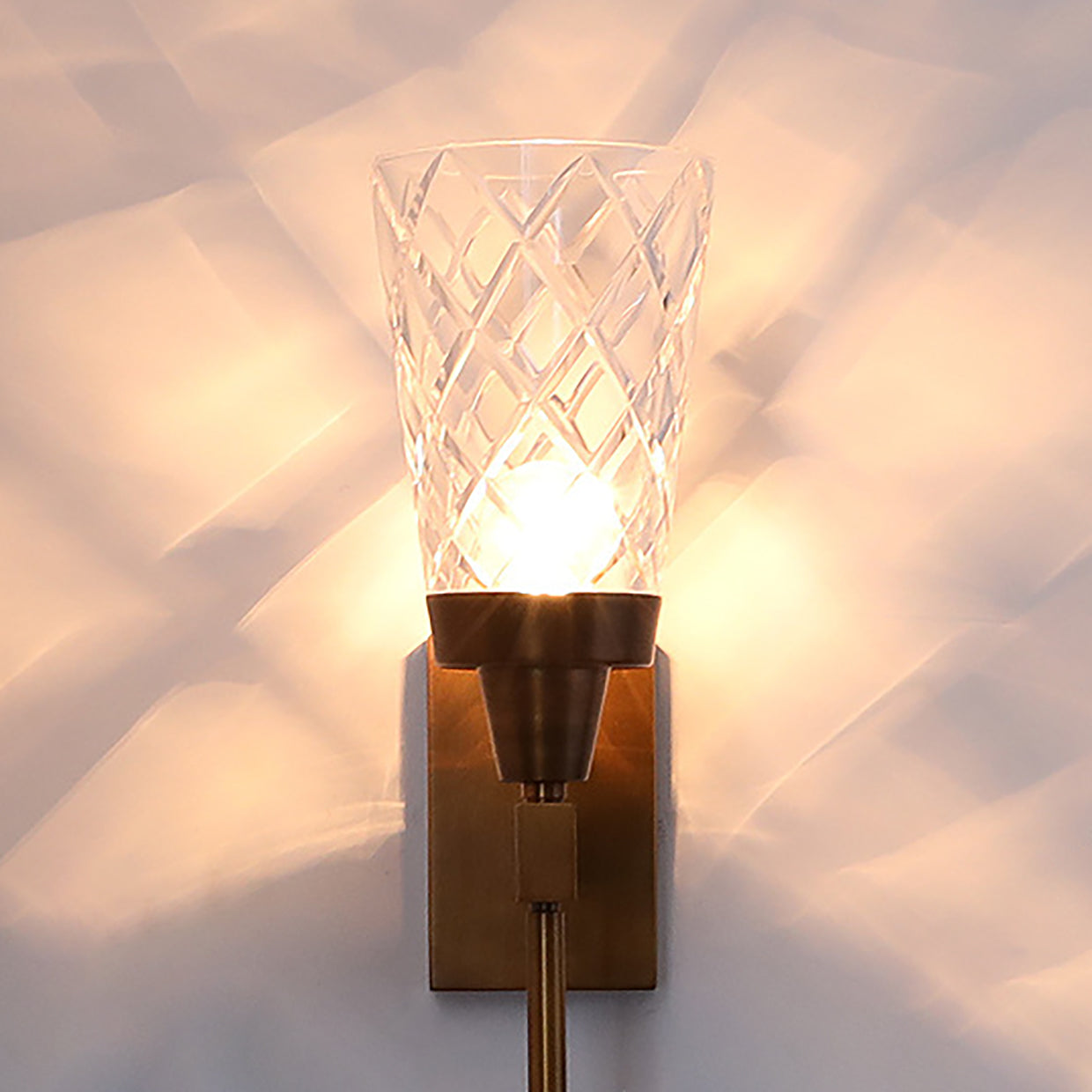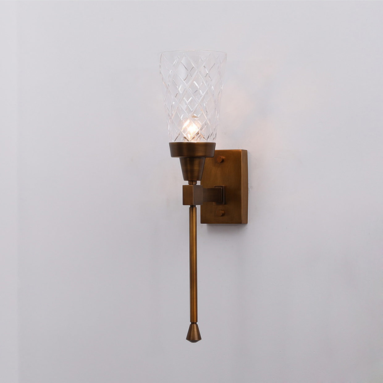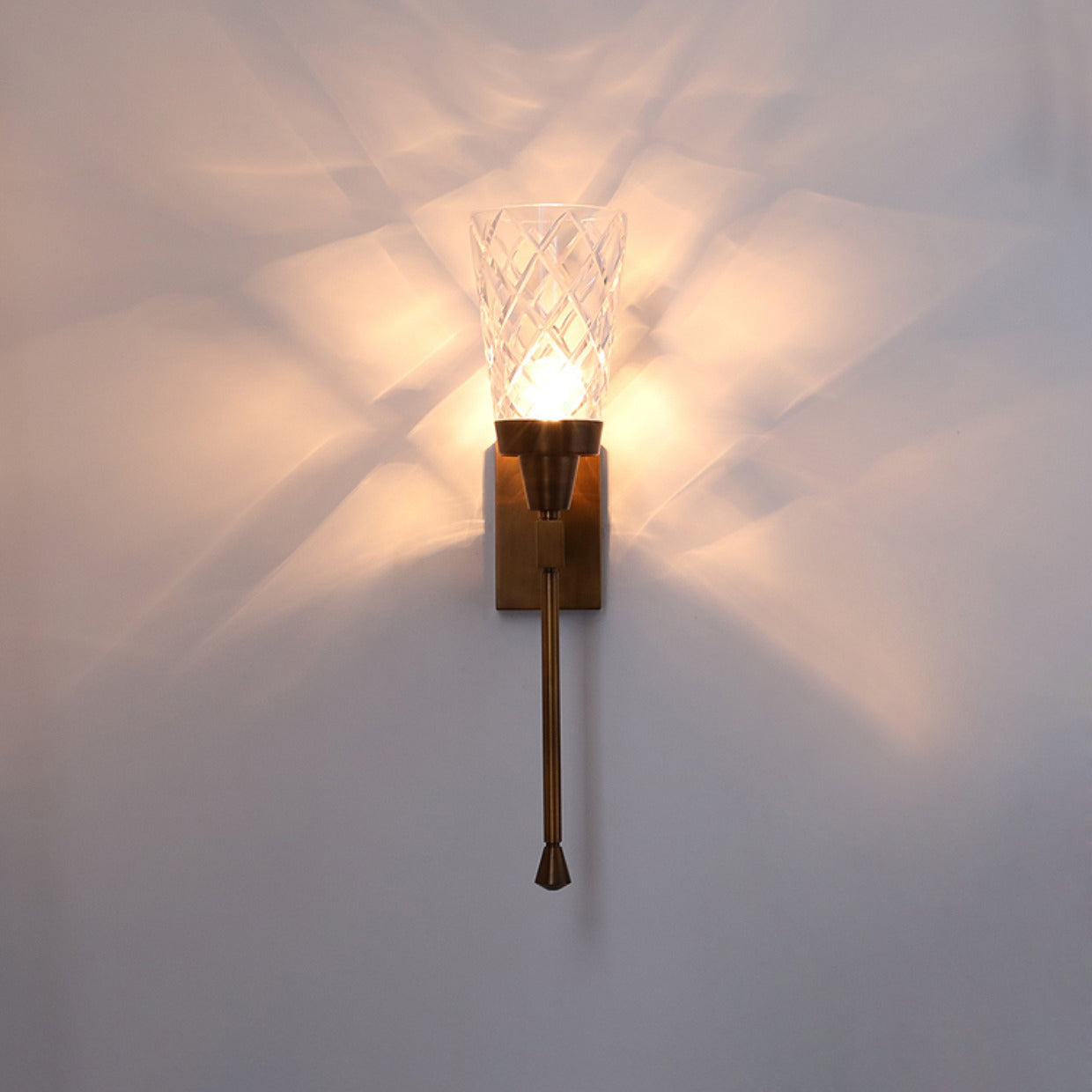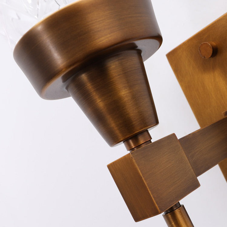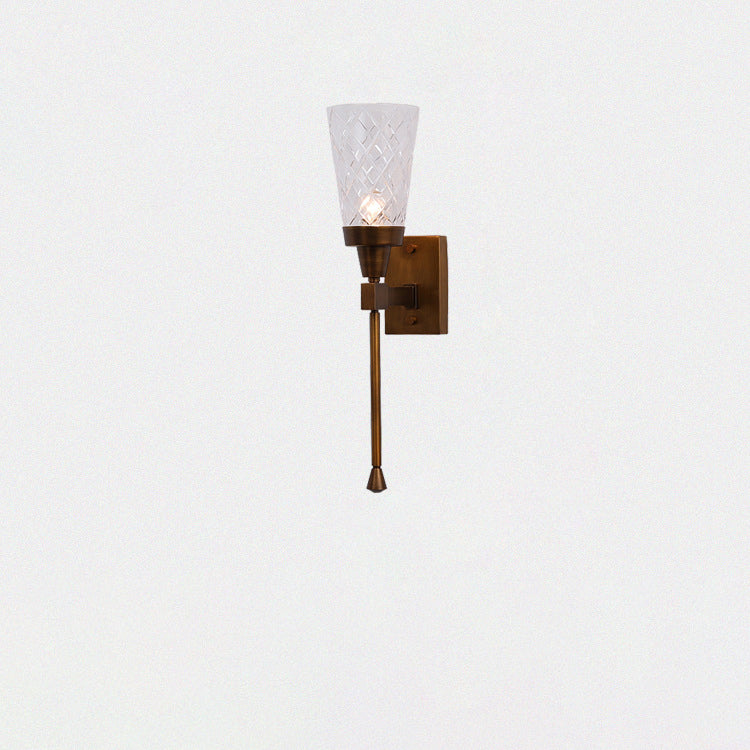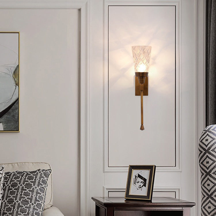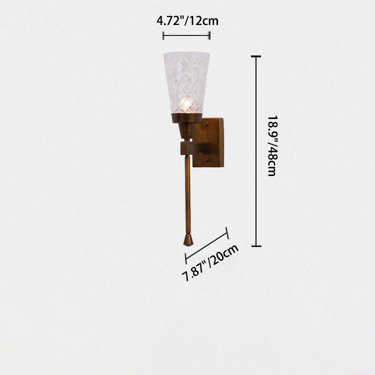 Traditional French Cylinder Carved Copper Glass 1-Light Wall Sconce Lamp For Living Room