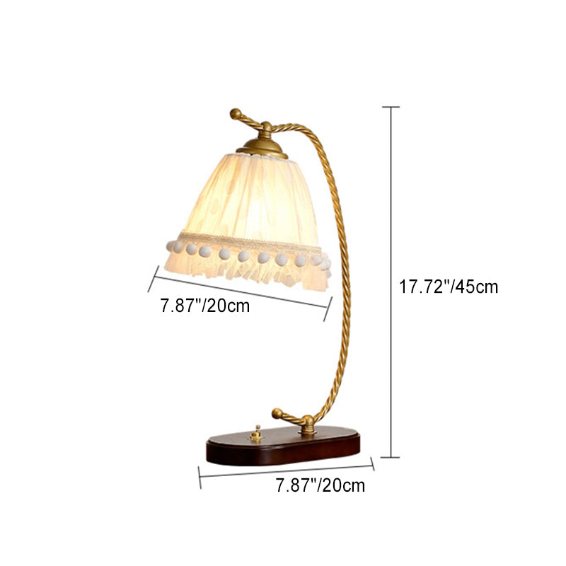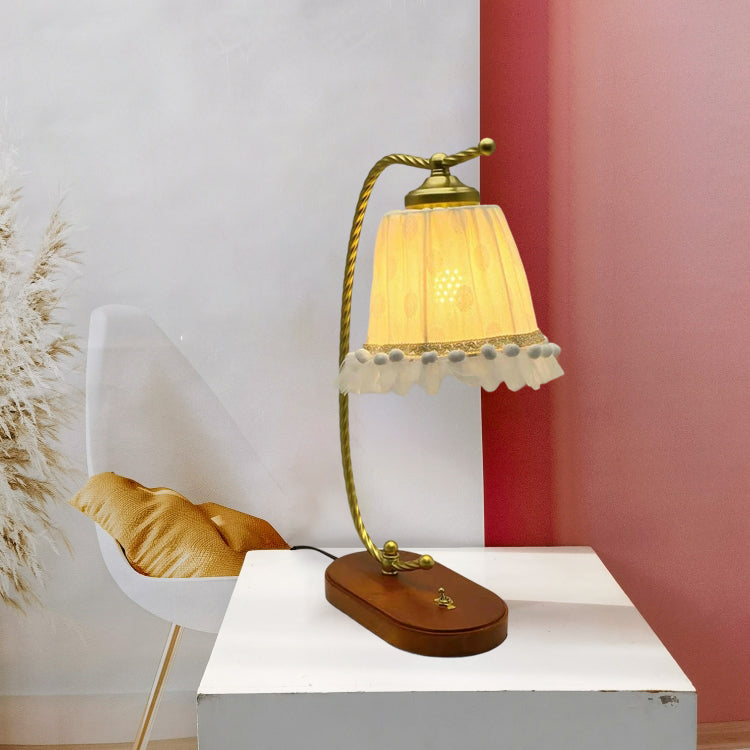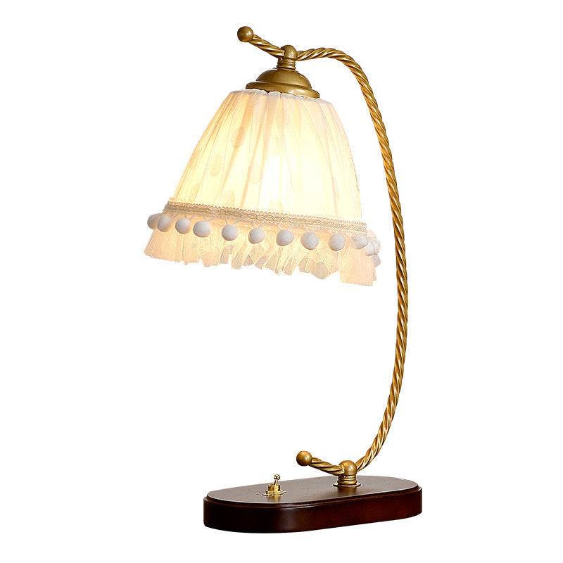 Traditional French Fabric Metal Wood Lace Conic 1-Light Table Lamp For Bedside