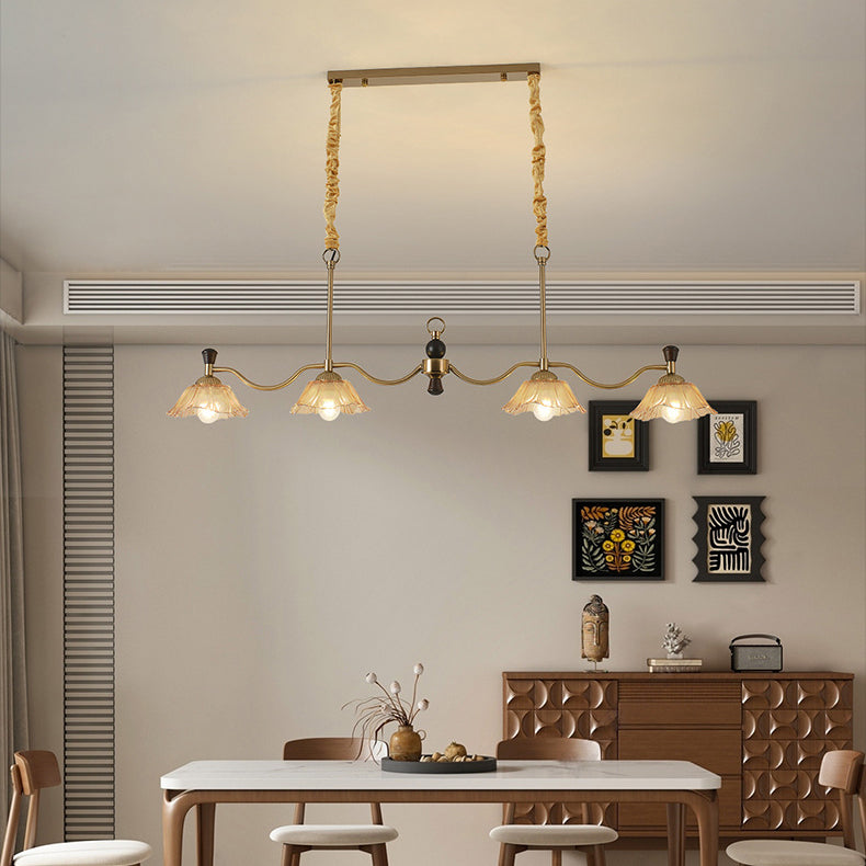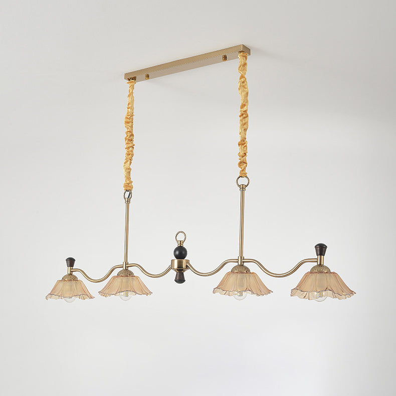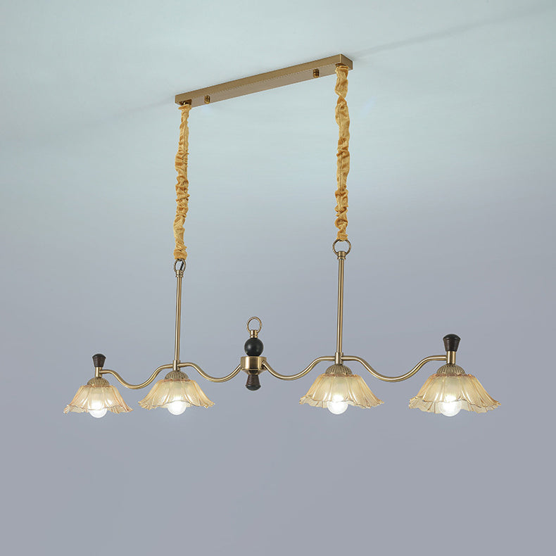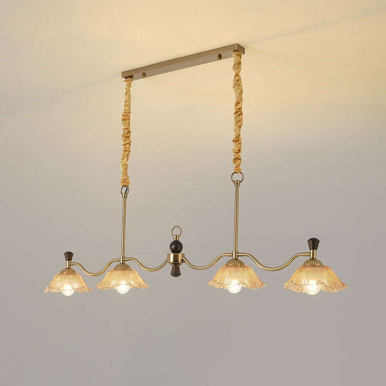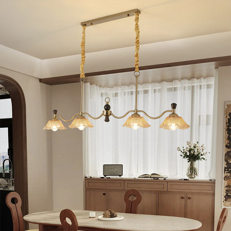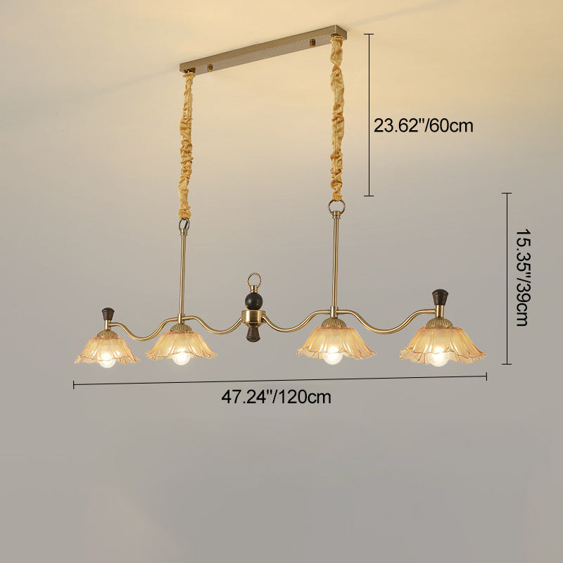 Traditional French Flower Iron Solid Wood Glass 4 - Light Chandelier Island Light For Dining Room