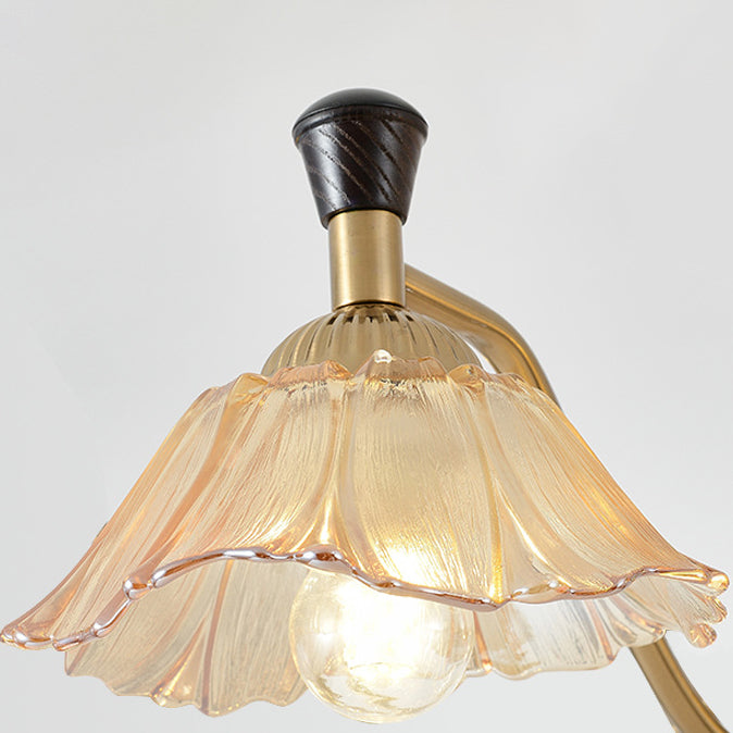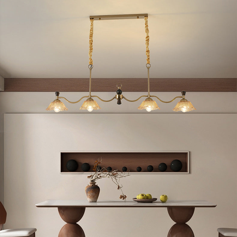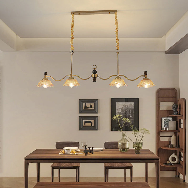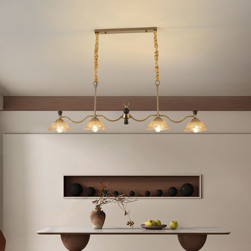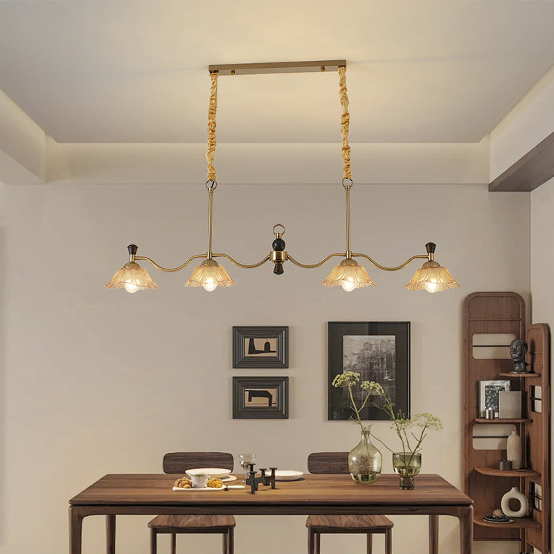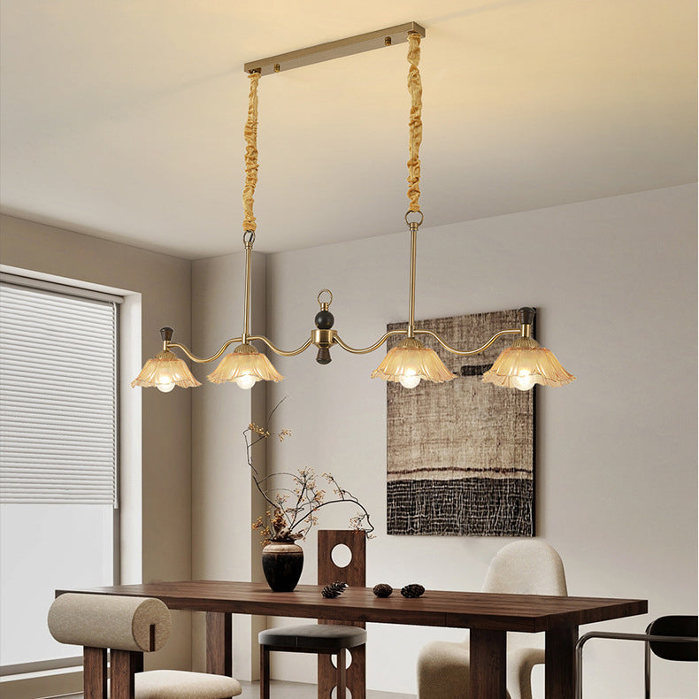Traditional French Flower Iron Solid Wood Glass 4 - Light Chandelier Island Light For Dining Room