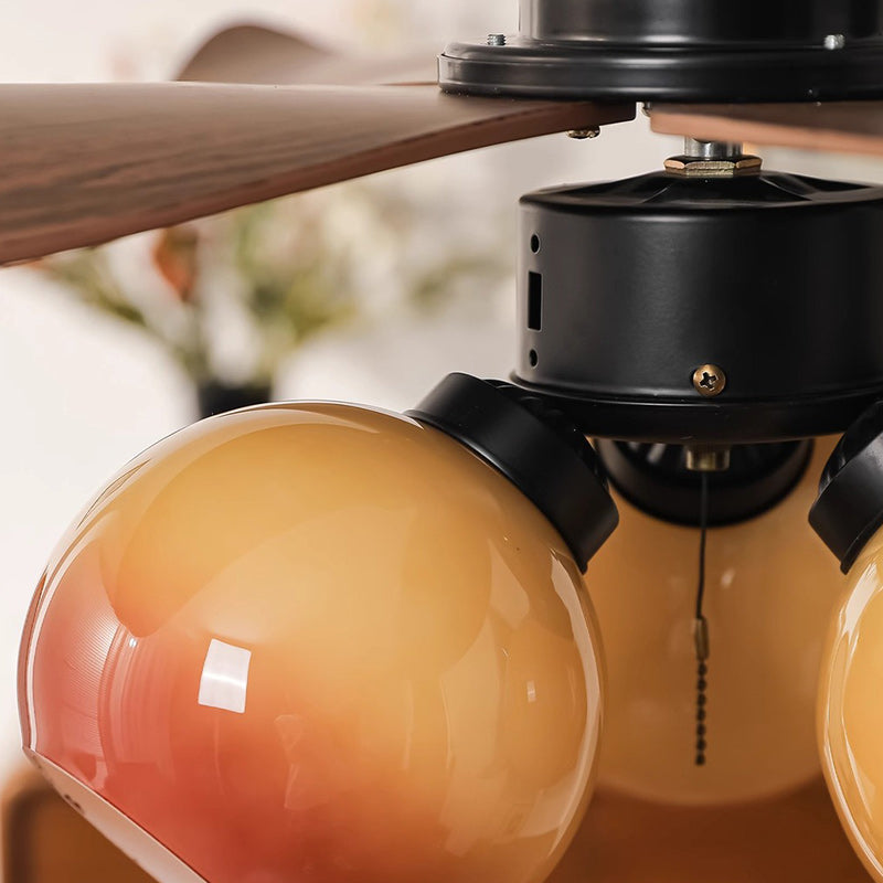 Traditional French Four ABS Fan Round Glass Lampshade Iron 3 - Light Downrods Ceiling Fan Light For Living Room