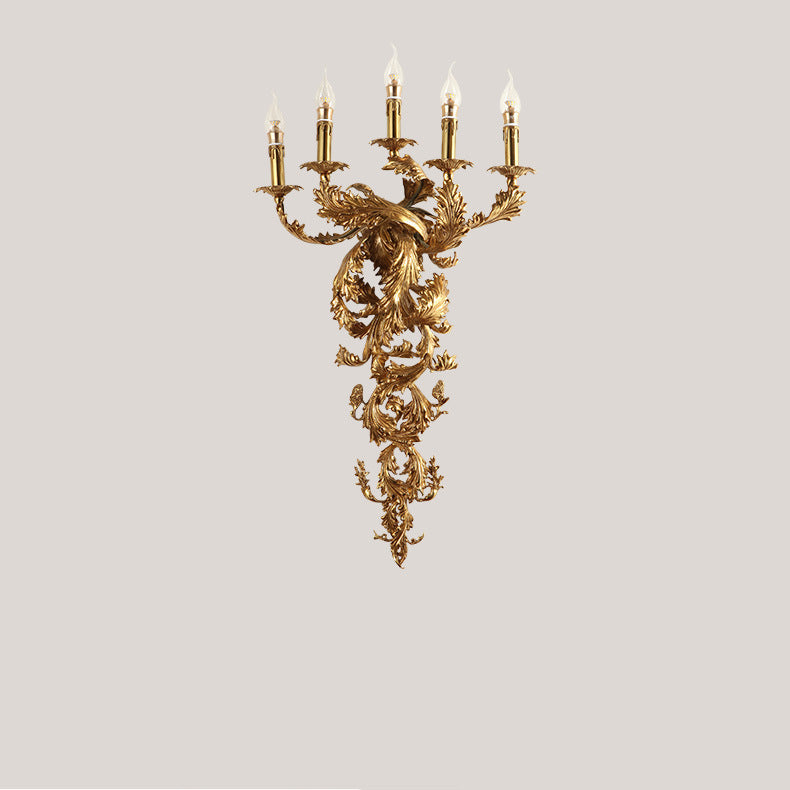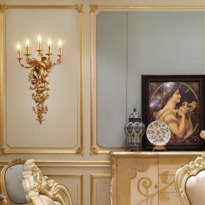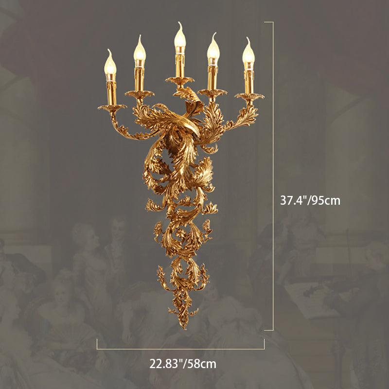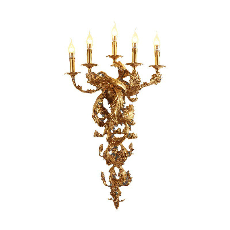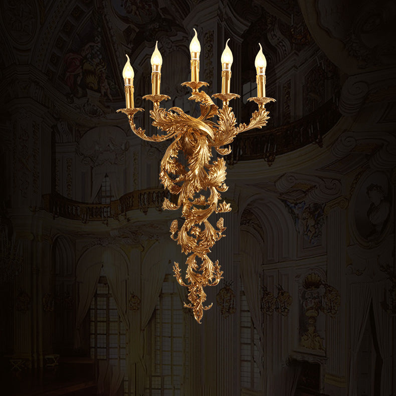 Traditional French Full Copper Carved Lamp Arm Palace Candelabra 5-Light Wall Sconce Lamp For Living Room