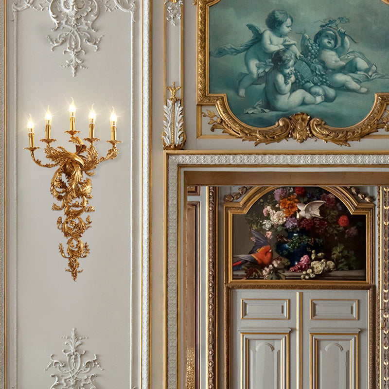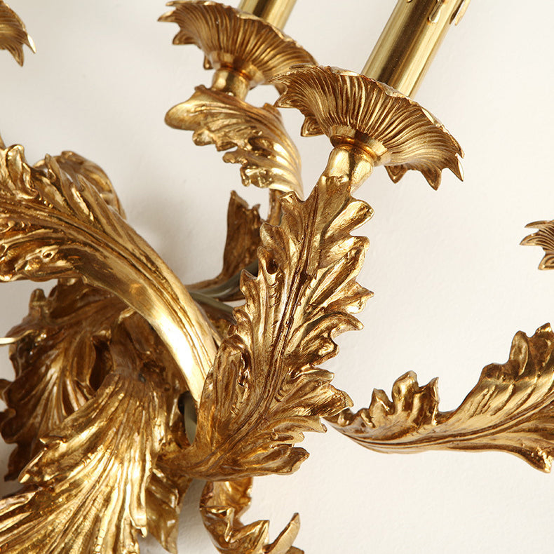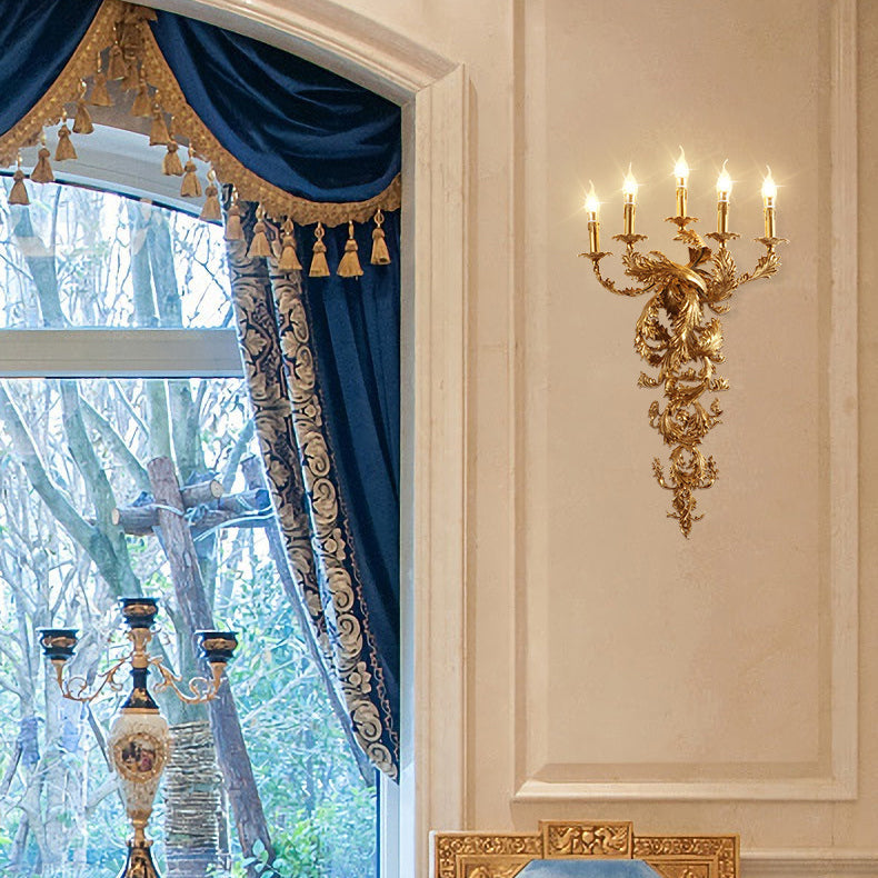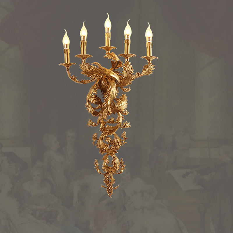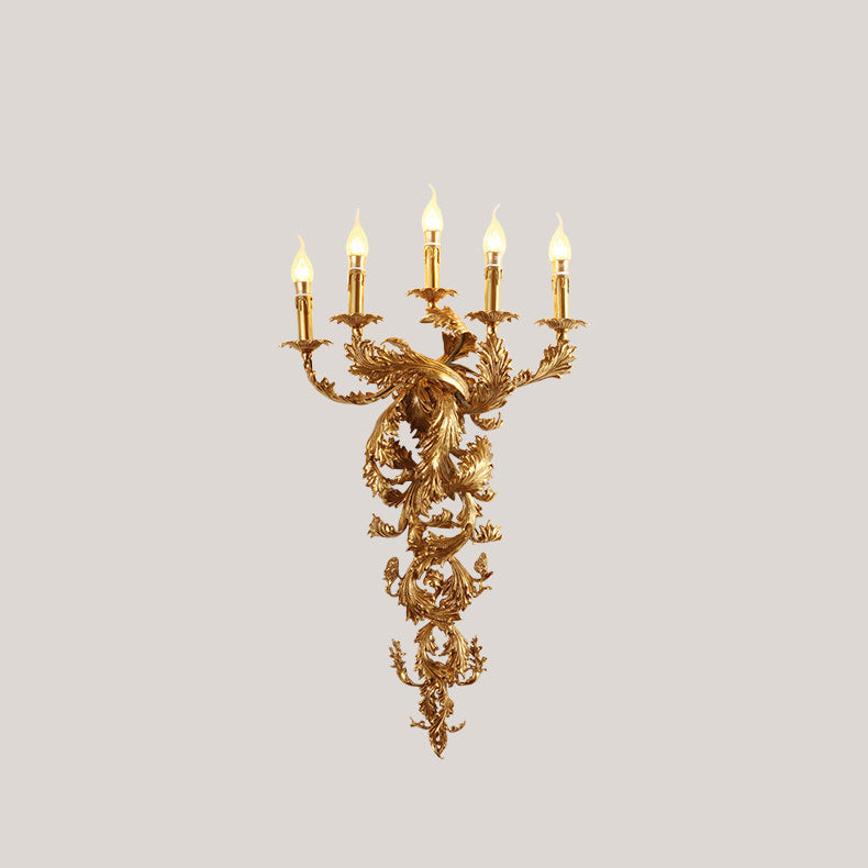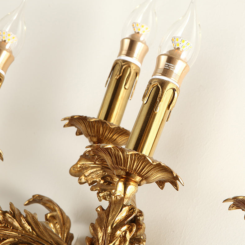 Traditional French Full Copper Carved Lamp Arm Palace Candelabra 5-Light Wall Sconce Lamp For Living Room