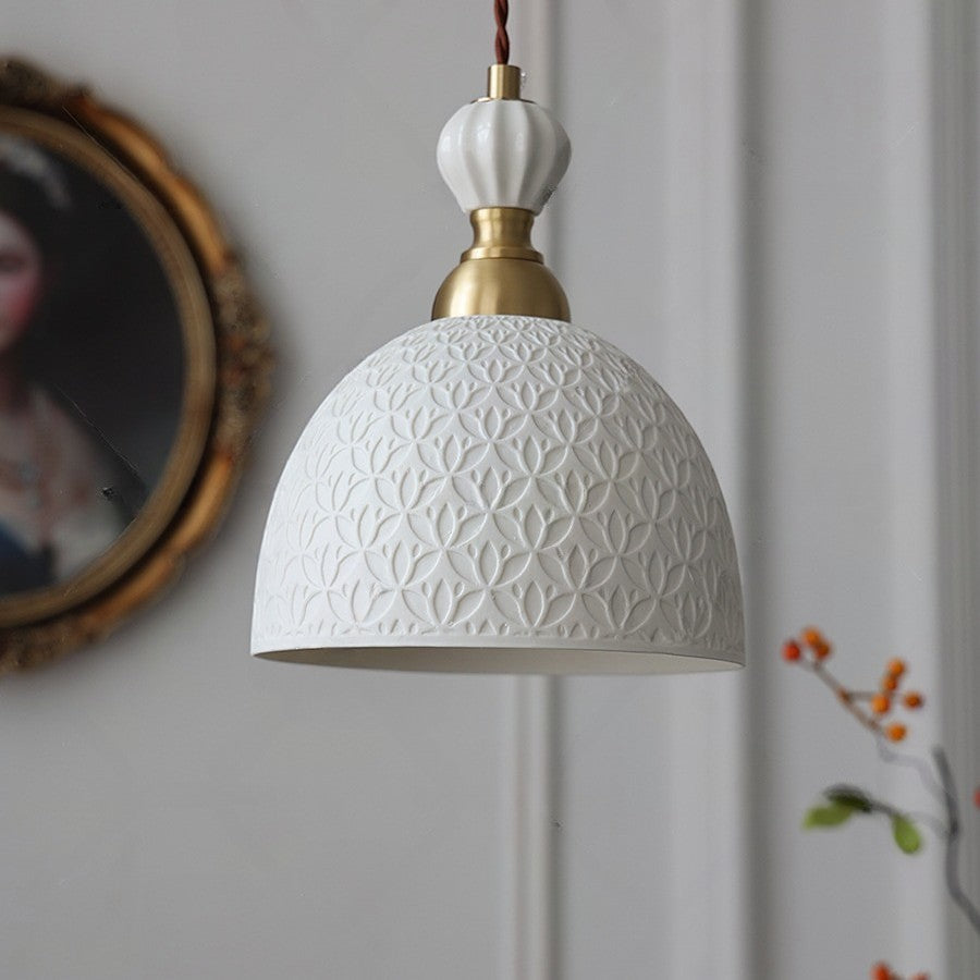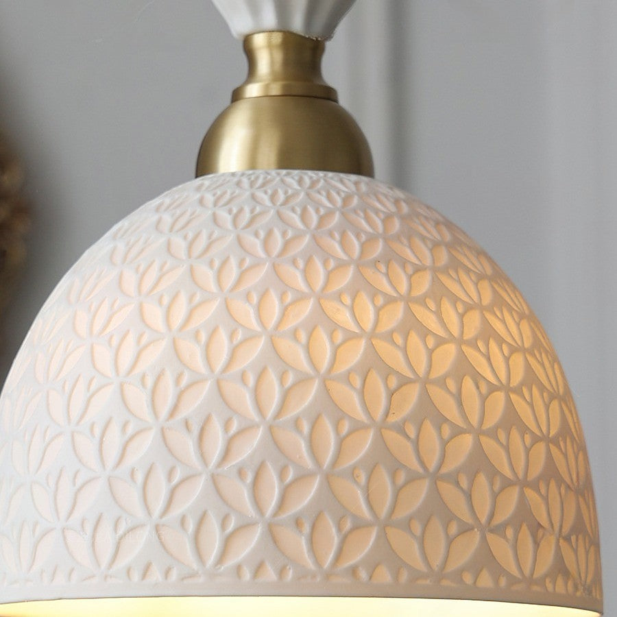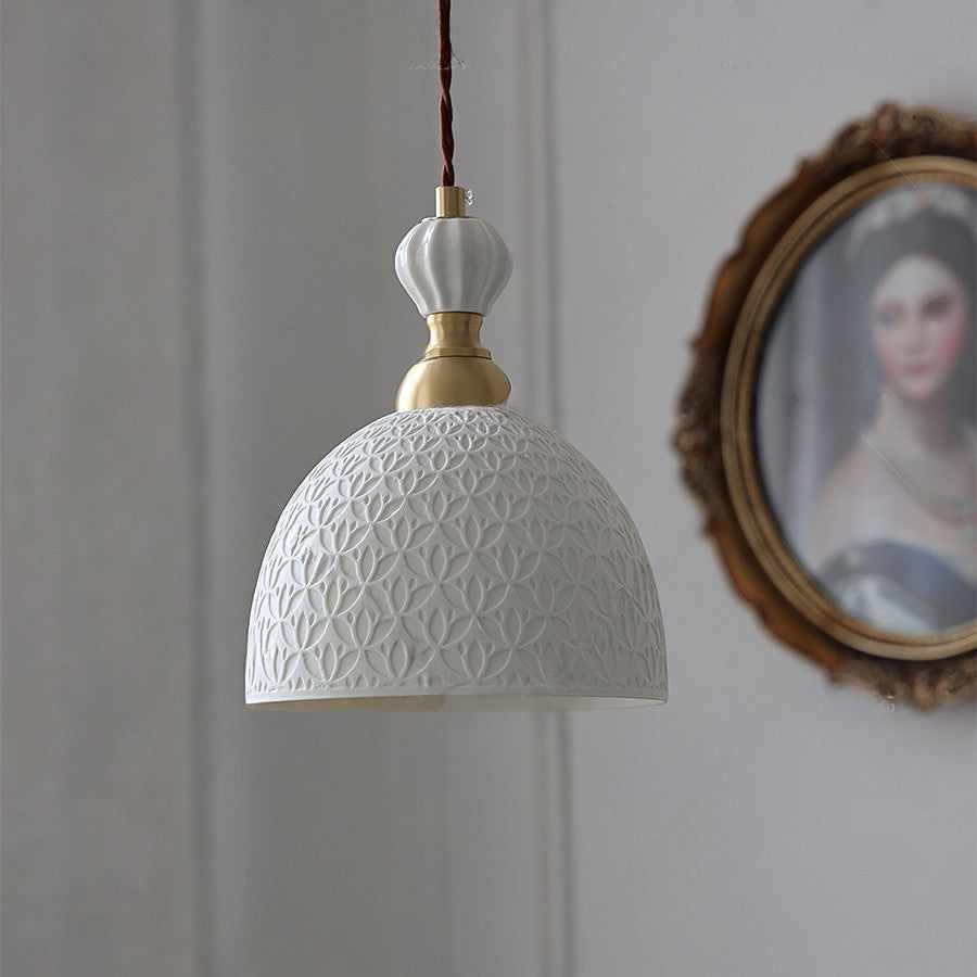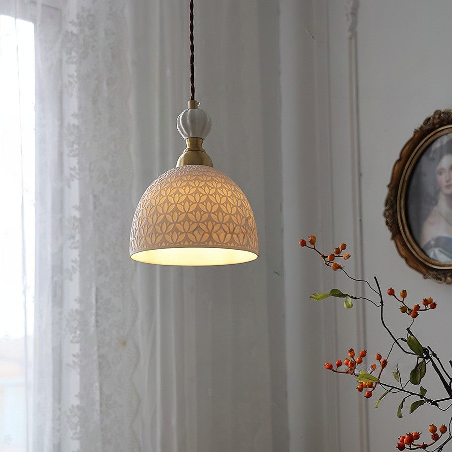 Traditional French Full Copper Ceramic Semicircle 1-Light Pendant Light For Dining Room