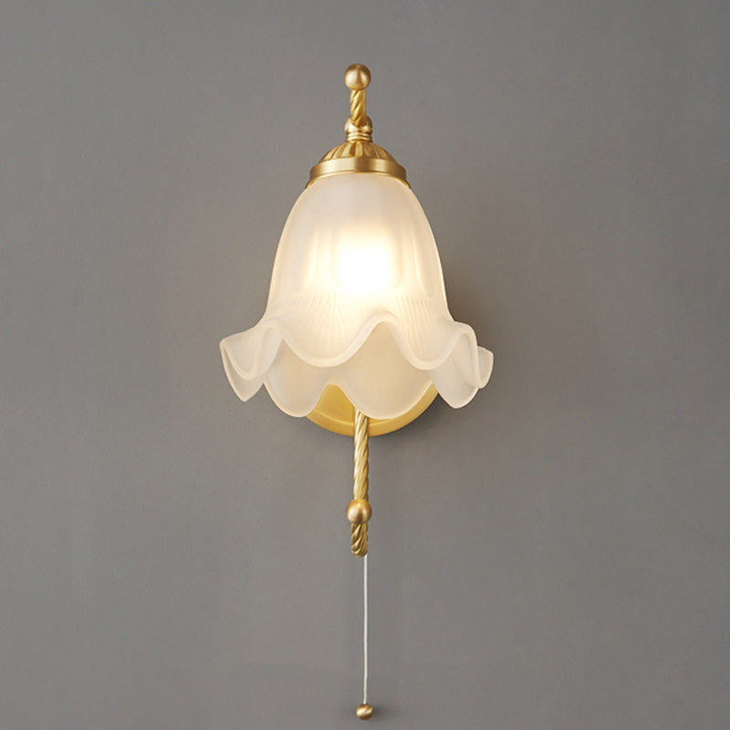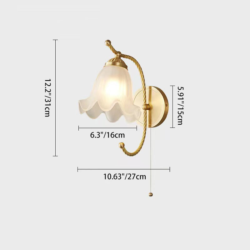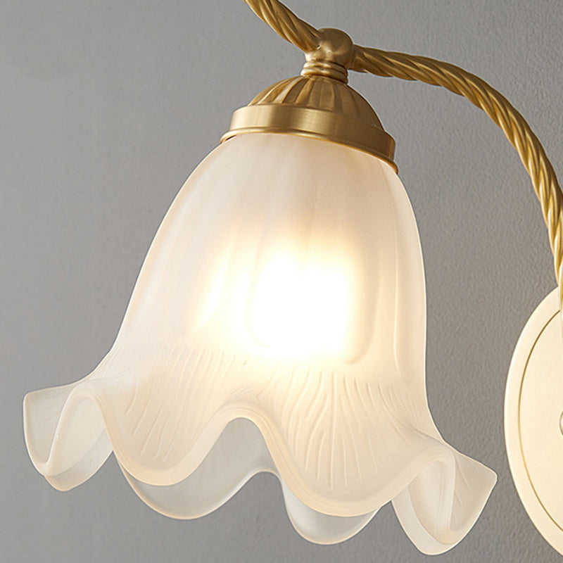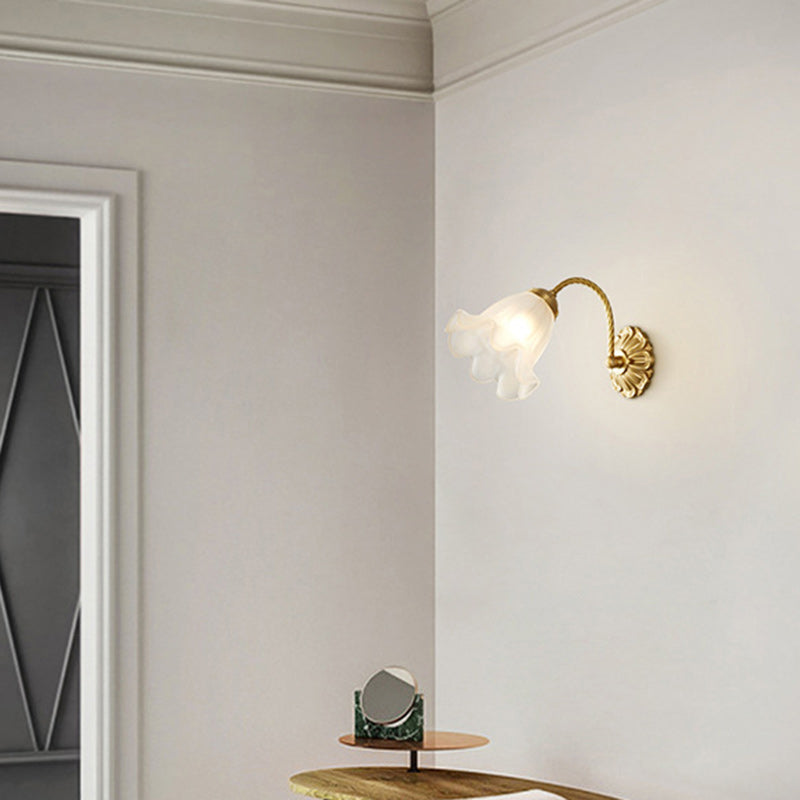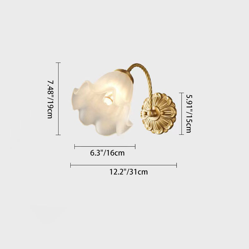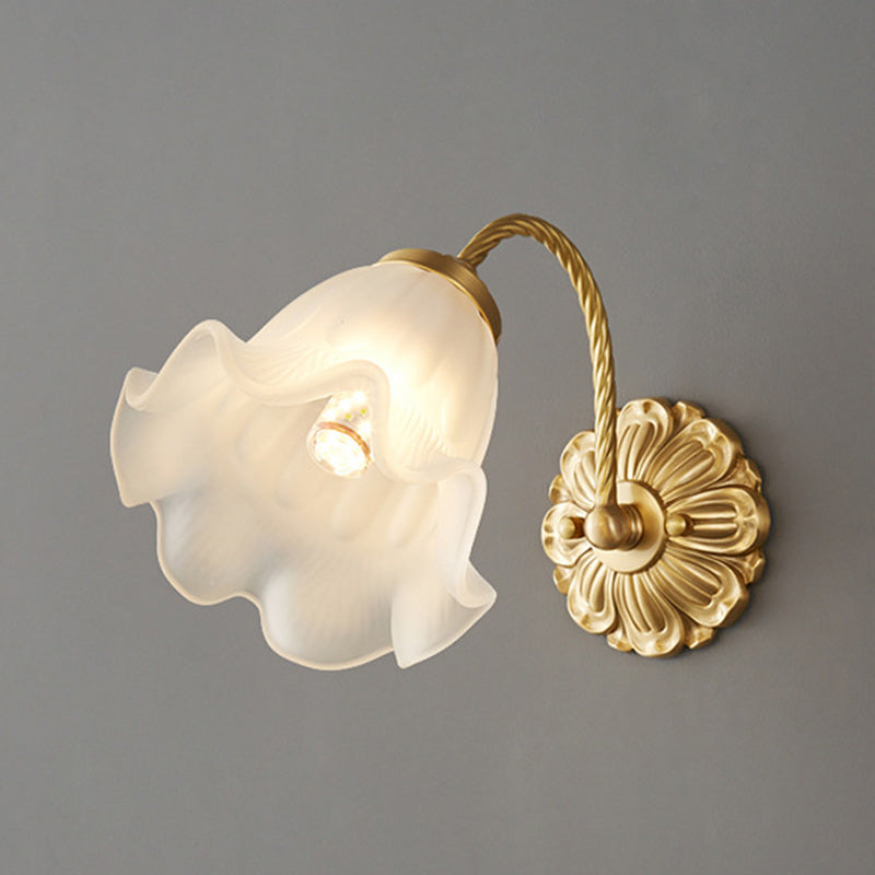 Traditional French Full Copper Flower Glass Shade 1-Light Wall Sconce Lamp For Bedroom