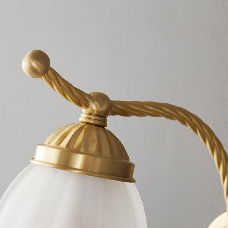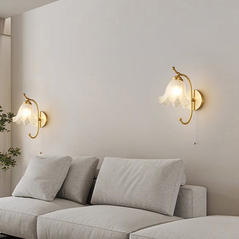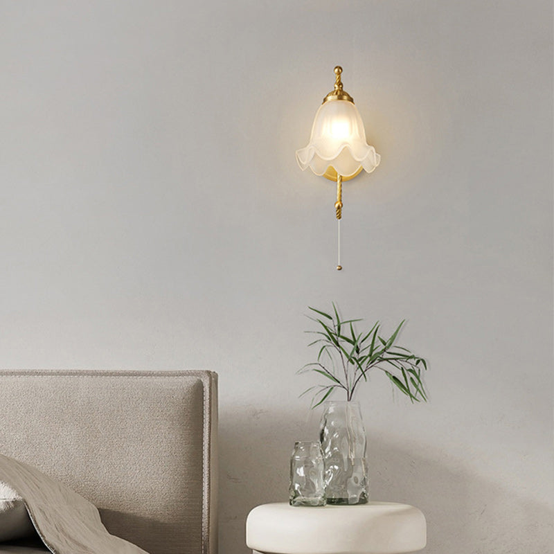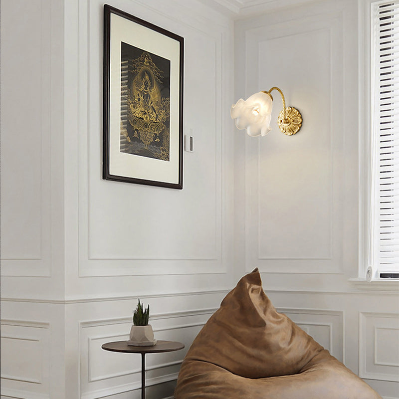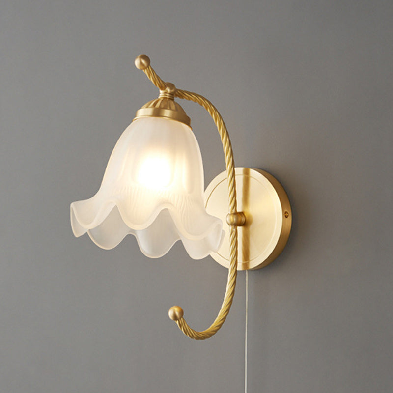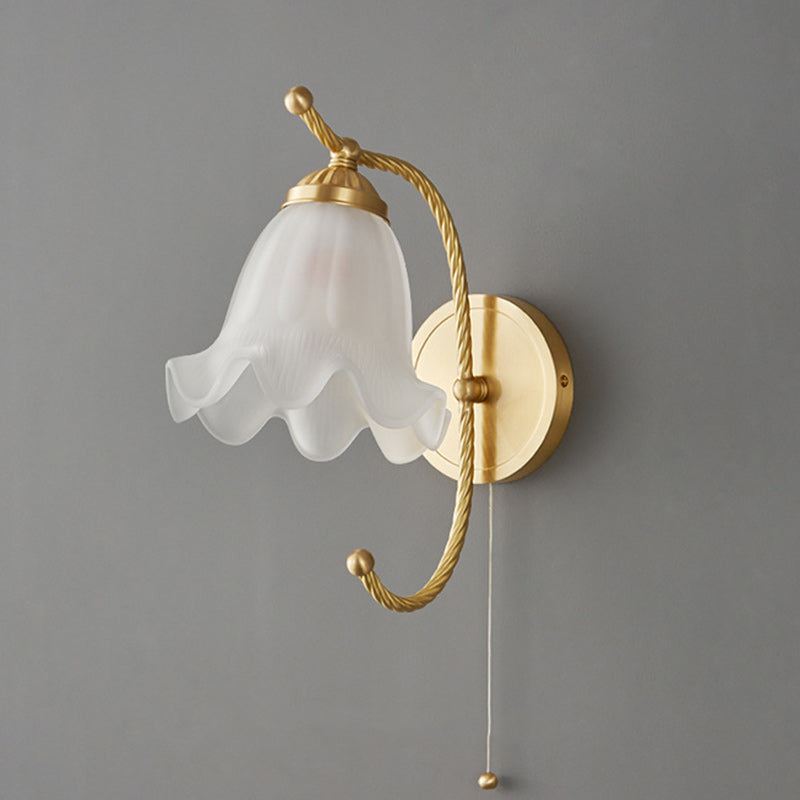 Traditional French Full Copper Flower Glass Shade 1-Light Wall Sconce Lamp For Bedroom