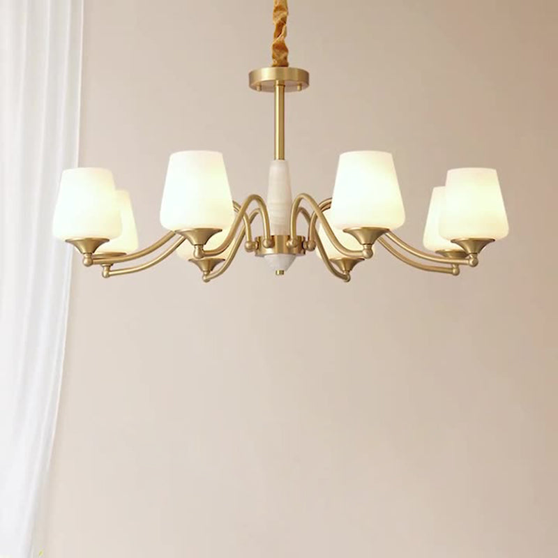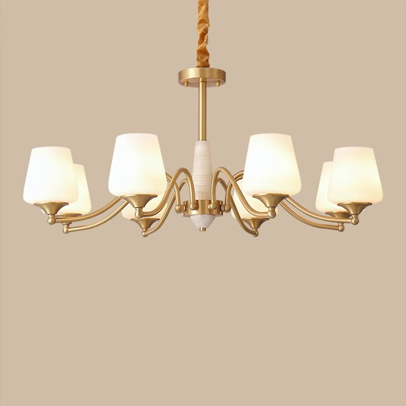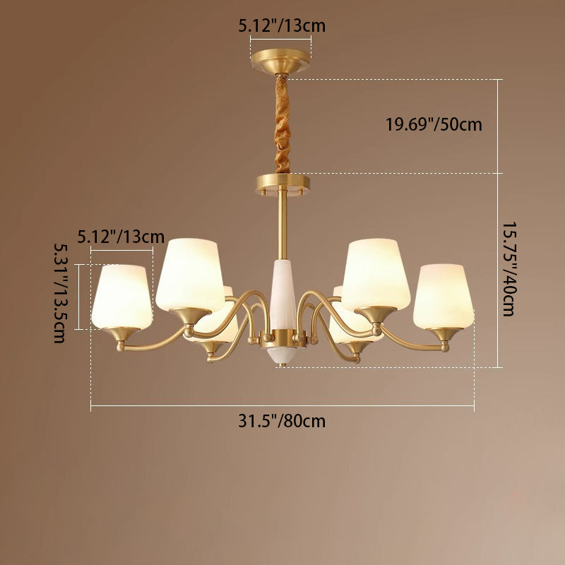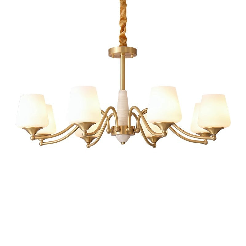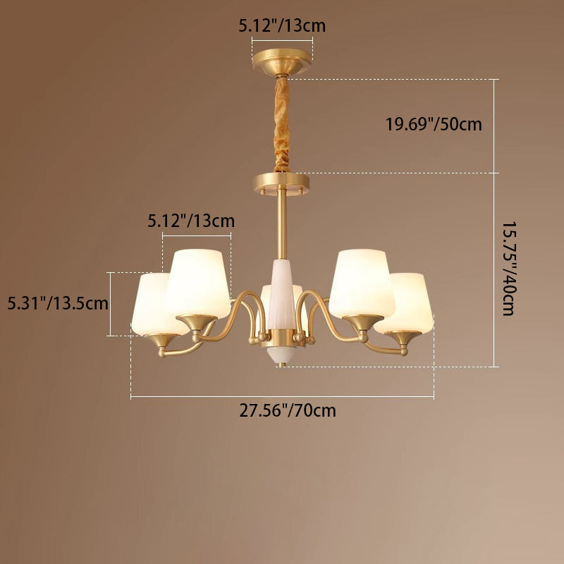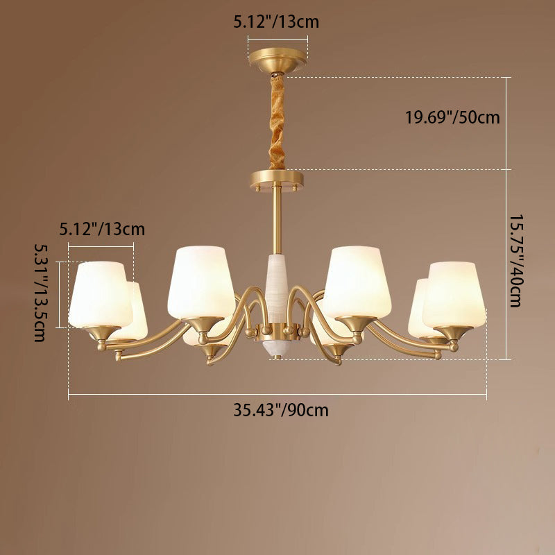 Traditional French Full Copper Jade Glass Cup Shade 5/6/8-Light Chandelier For Living Room