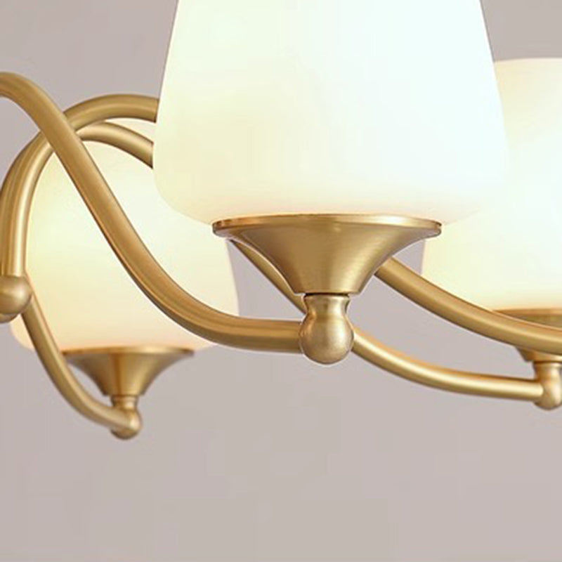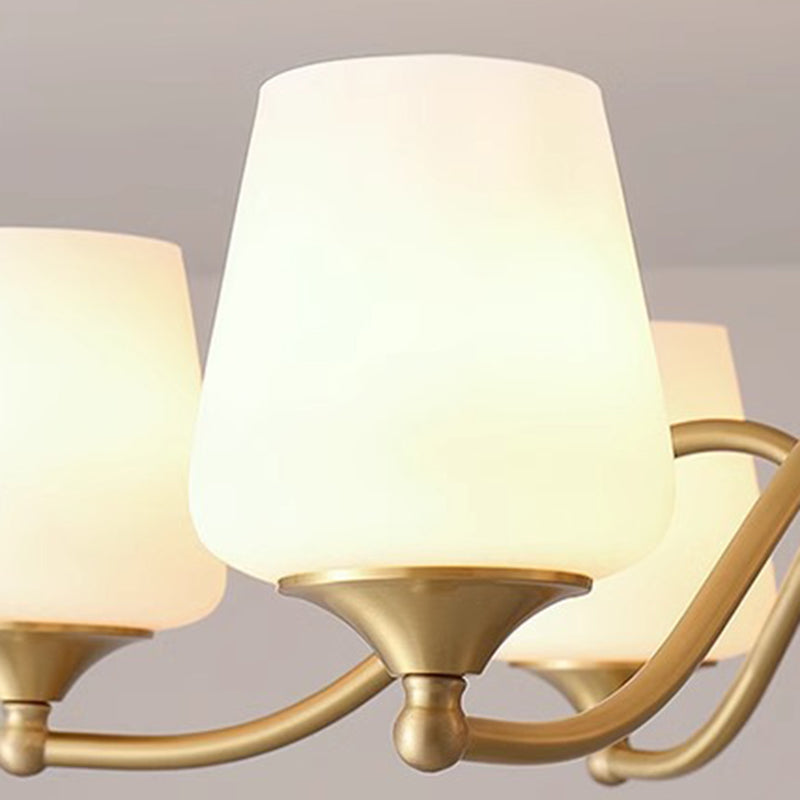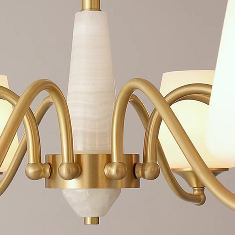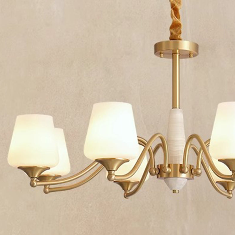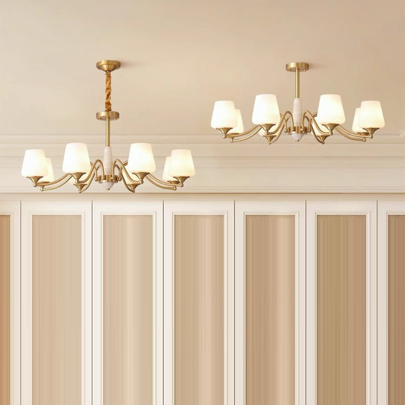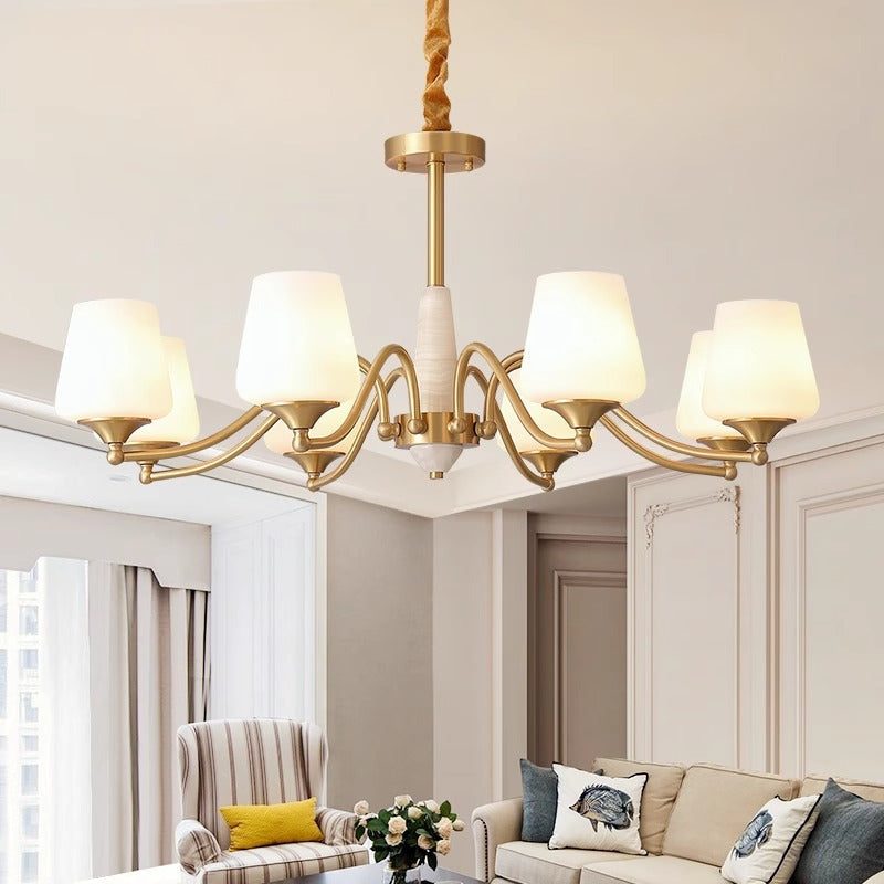 Traditional French Full Copper Jade Glass Cup Shade 5/6/8-Light Chandelier For Living Room