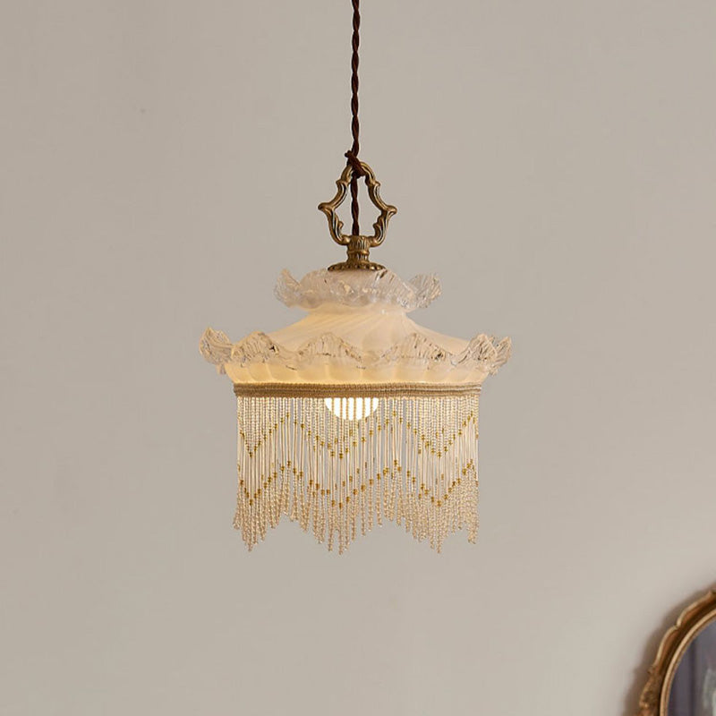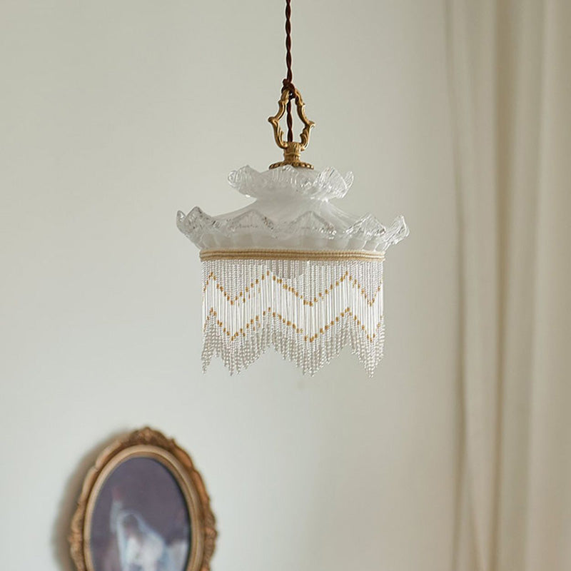 Traditional French Glass Copper Crown Tassel 1-Light Pendant Light For Dining Room