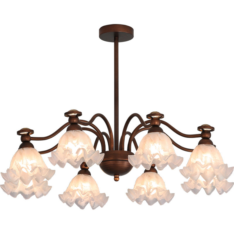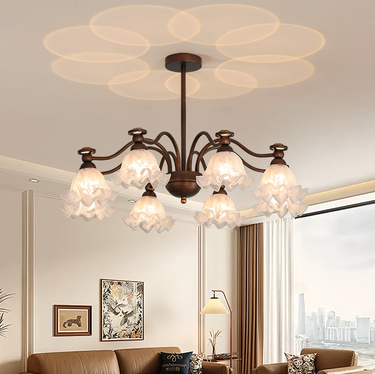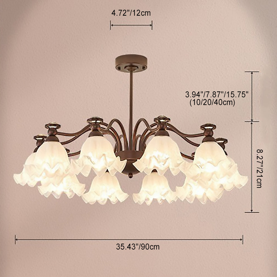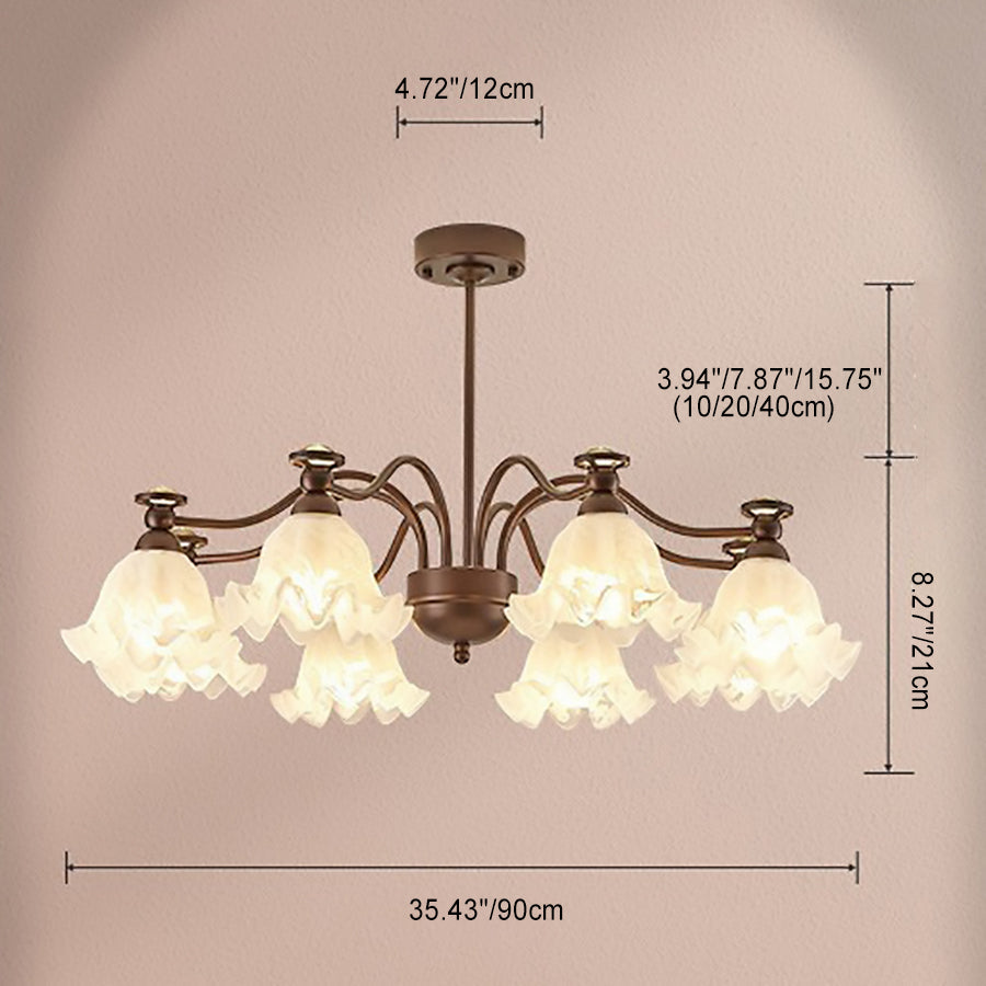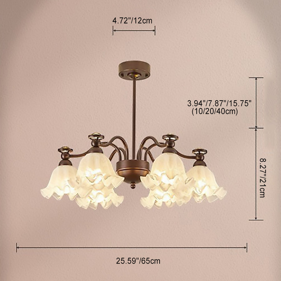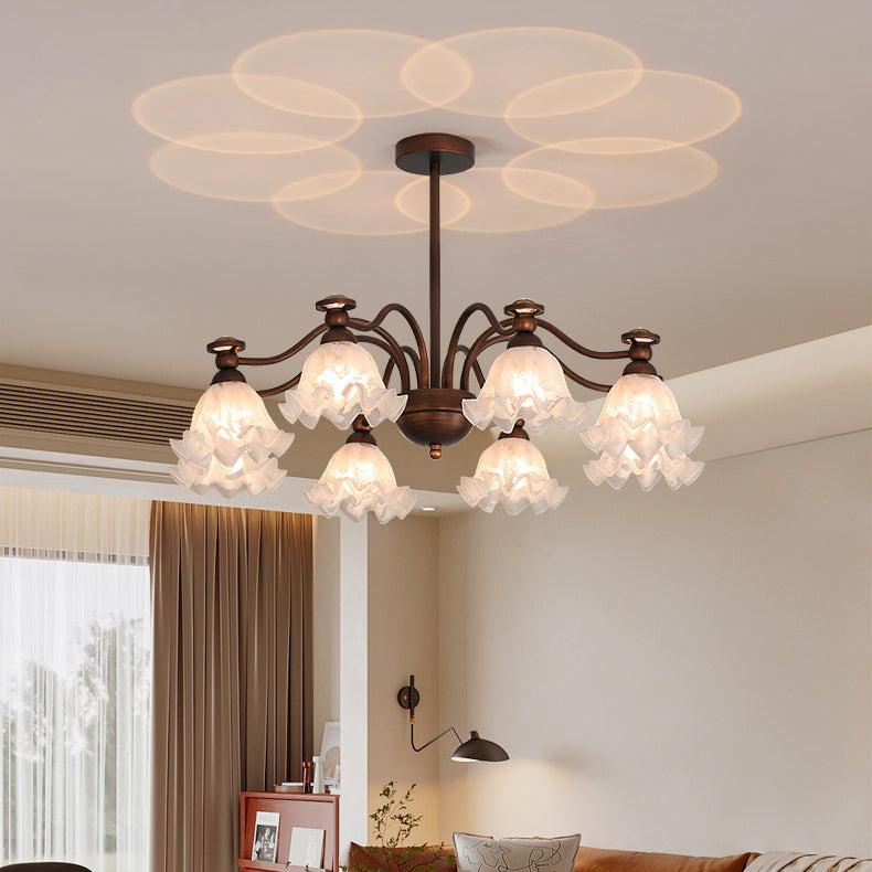 Traditional French Hardware Glass Snow Pattern Flower 4/6/8/10 Light Chandeliers For Living Room