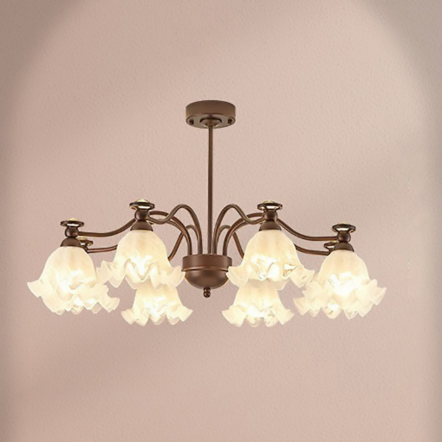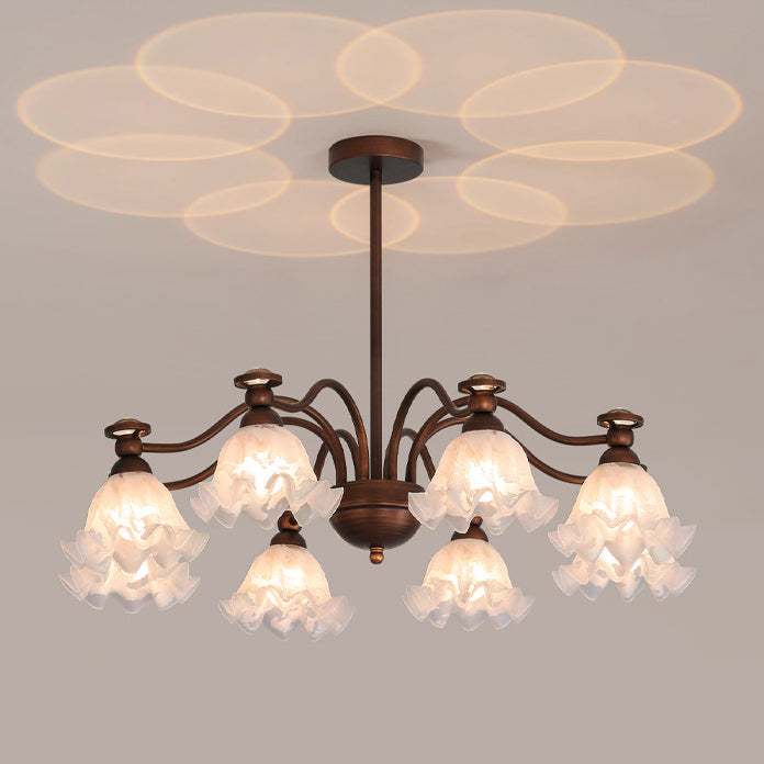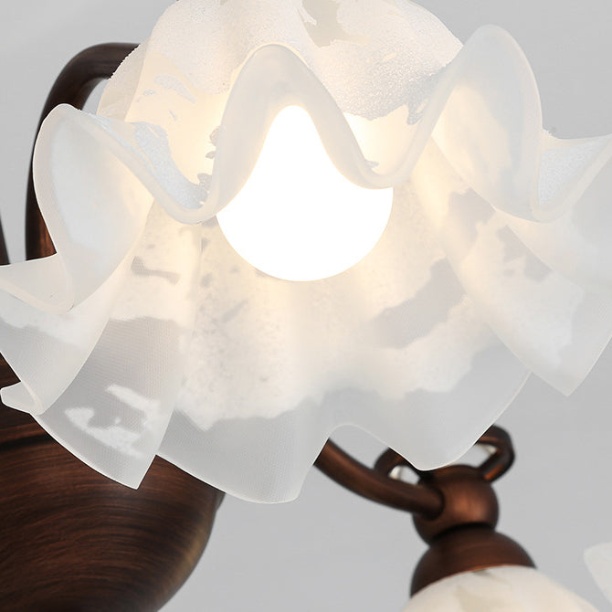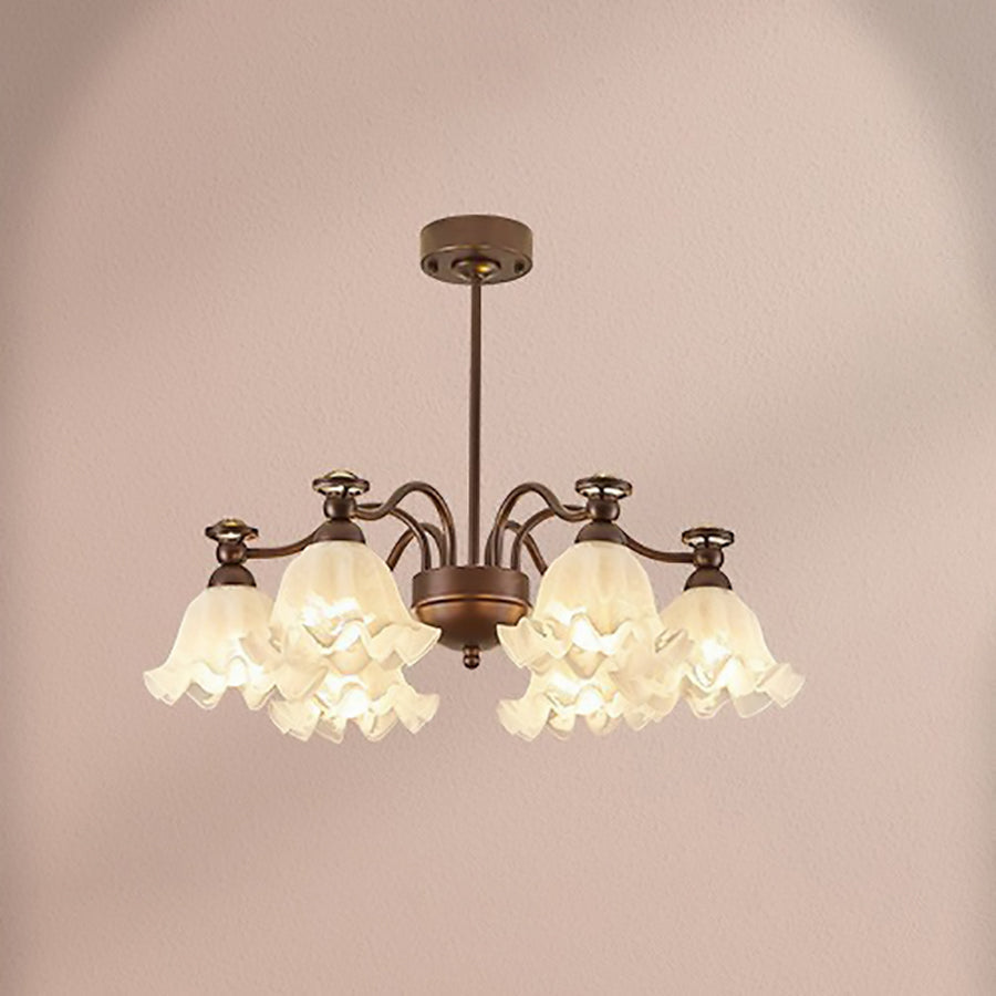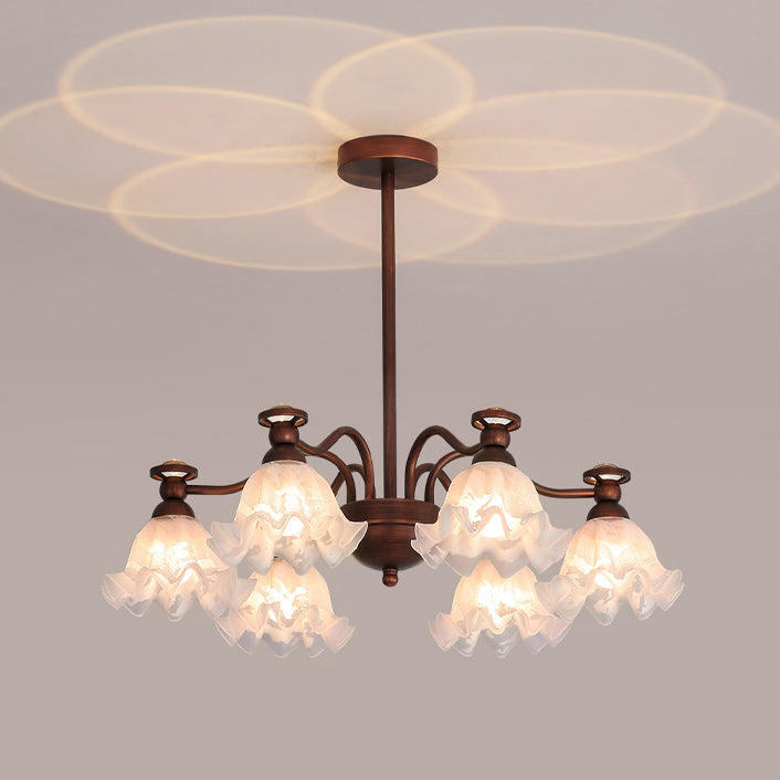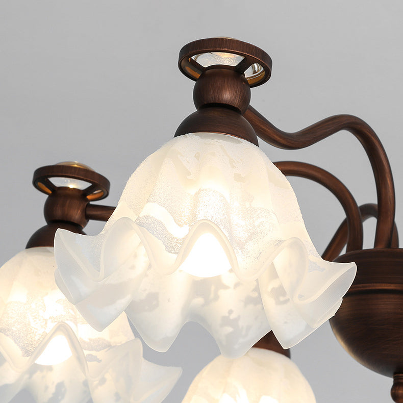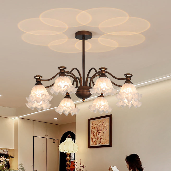 Traditional French Hardware Glass Snow Pattern Flower 4/6/8/10 Light Chandeliers For Living Room
