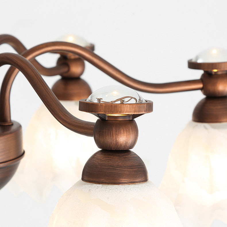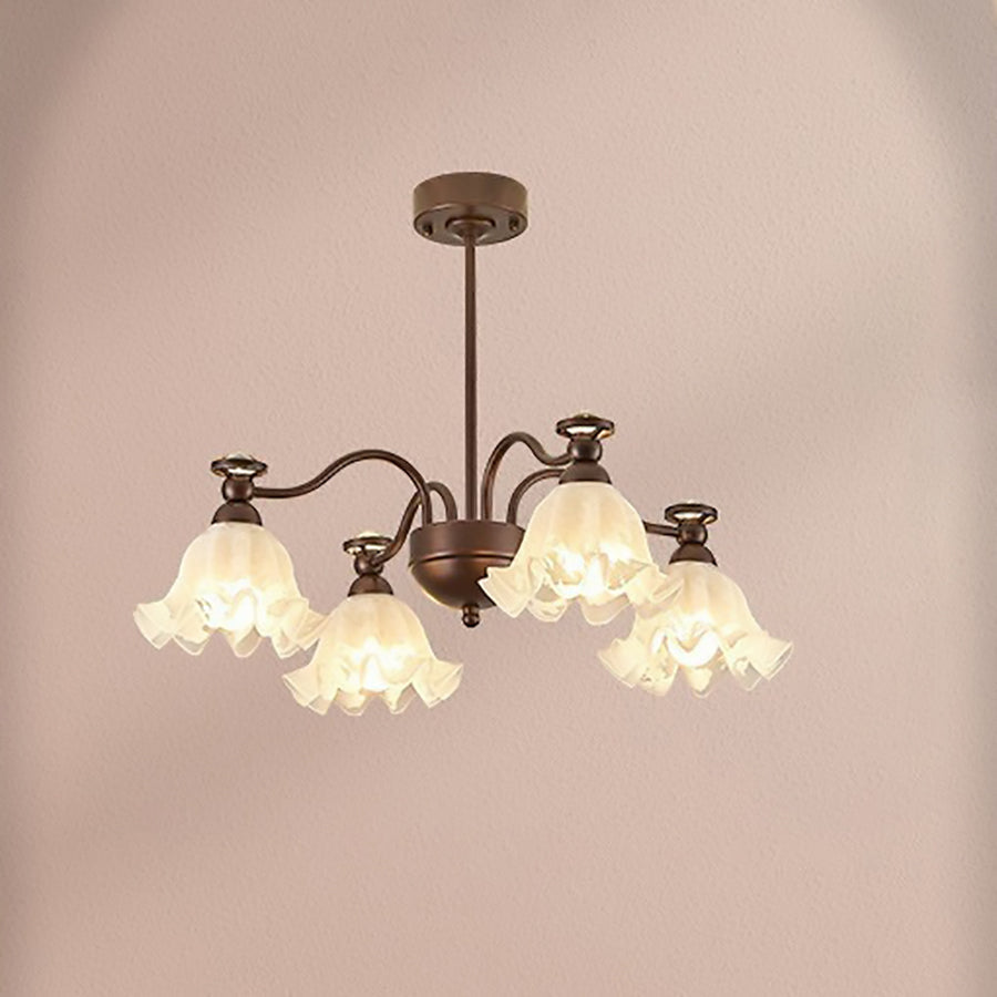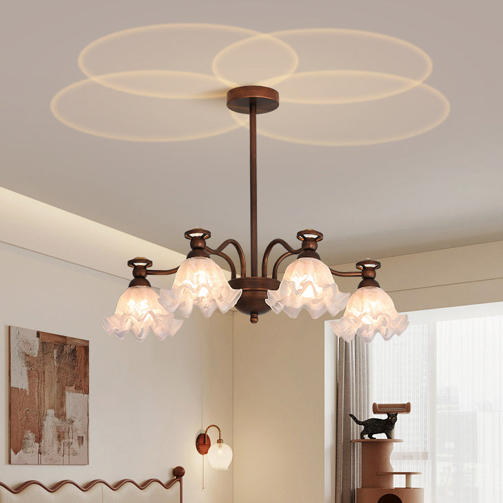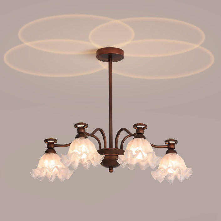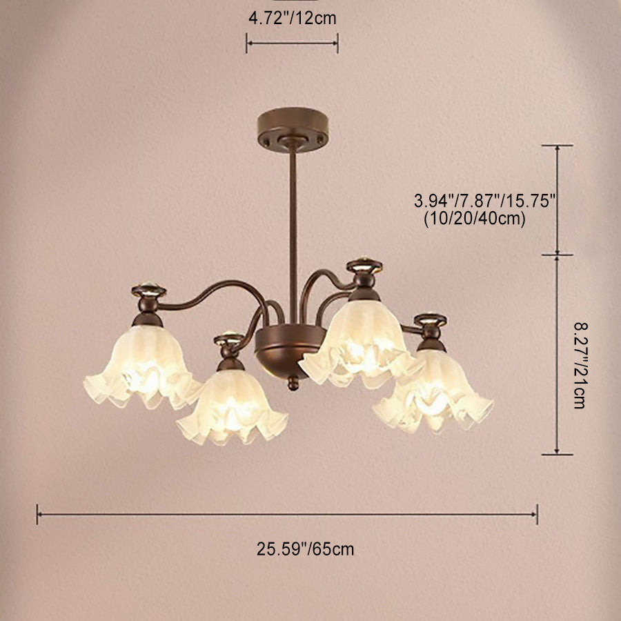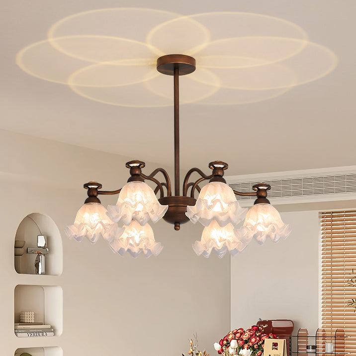 Traditional French Hardware Glass Snow Pattern Flower 4/6/8/10 Light Chandeliers For Living Room