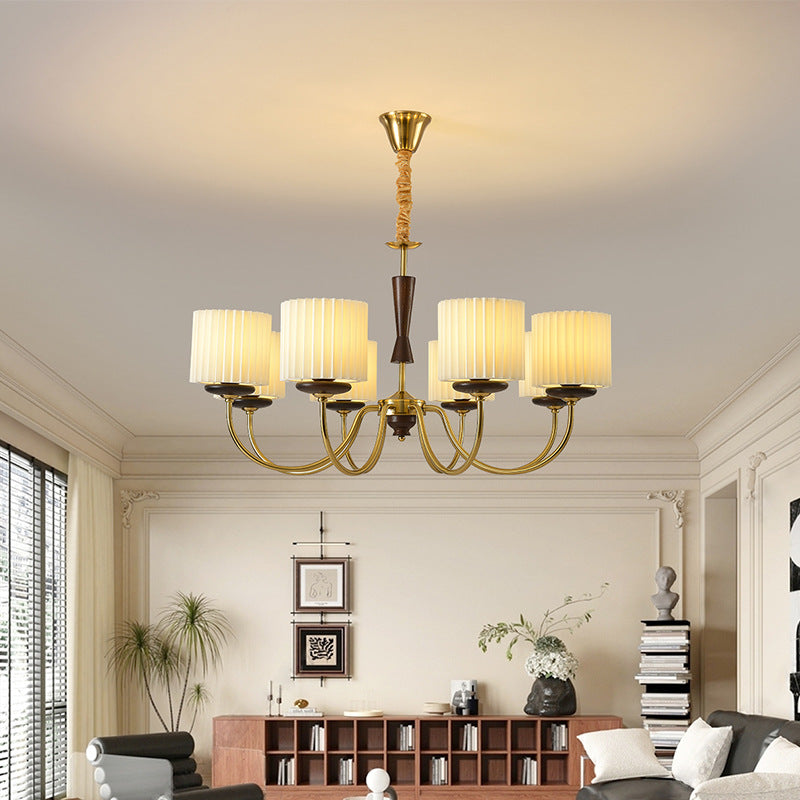 Traditional French Iron Wood Fabric Branch Cylinder Chandelier With 6/8 Lights For Bedroom & Living Room