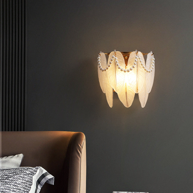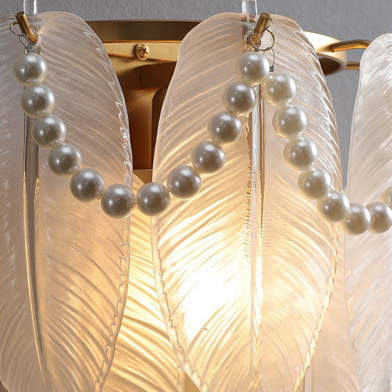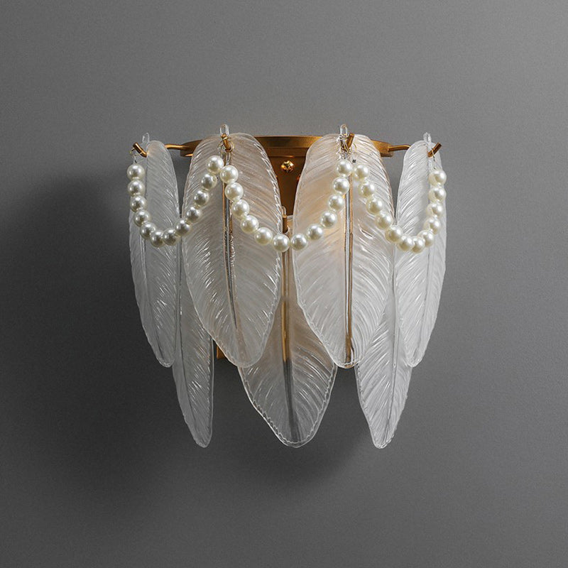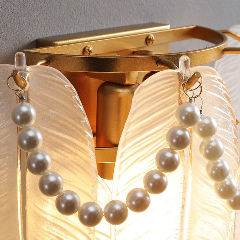 Traditional French Leaf Half Round Glass Iron 2-Light Wall Sconce Lamp For Living Room