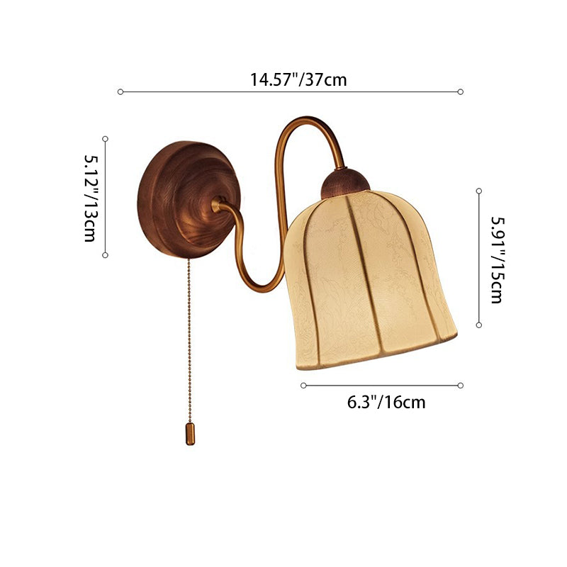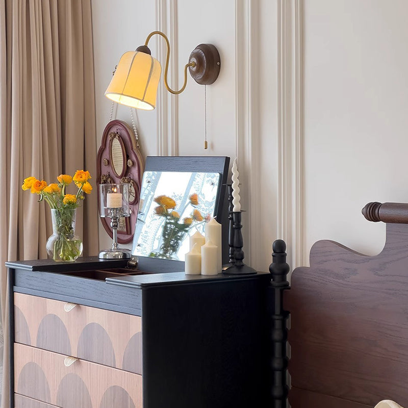 Experience the charm of traditional French design with this beautiful wall sconce. Crafted from metal and fabric, it features a delicately curved rod and a round, floral-patterned fabric shade, perfect for adding a touch of elegance to your bedroom.