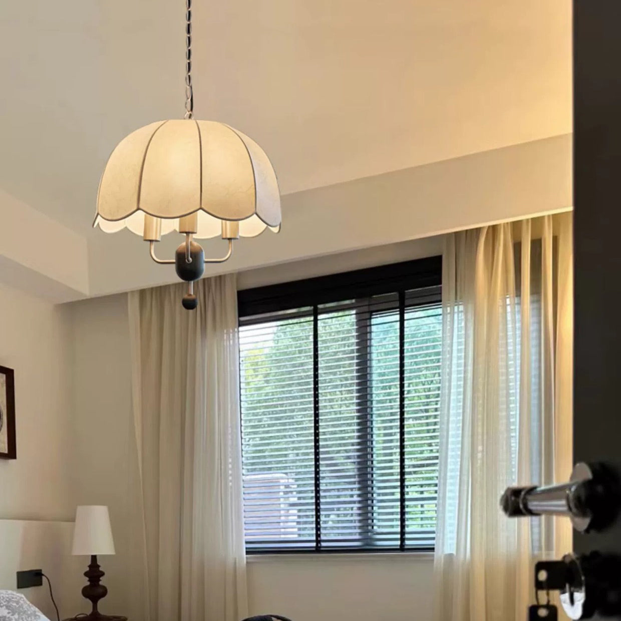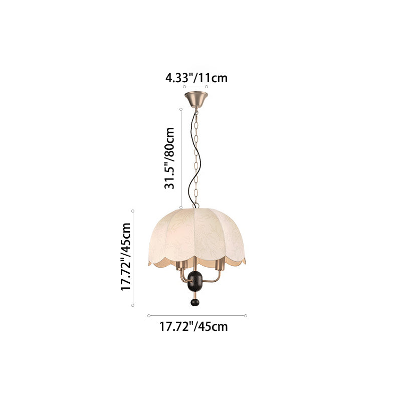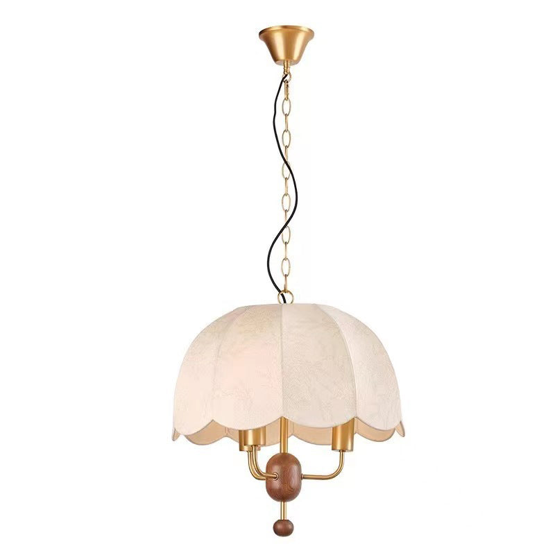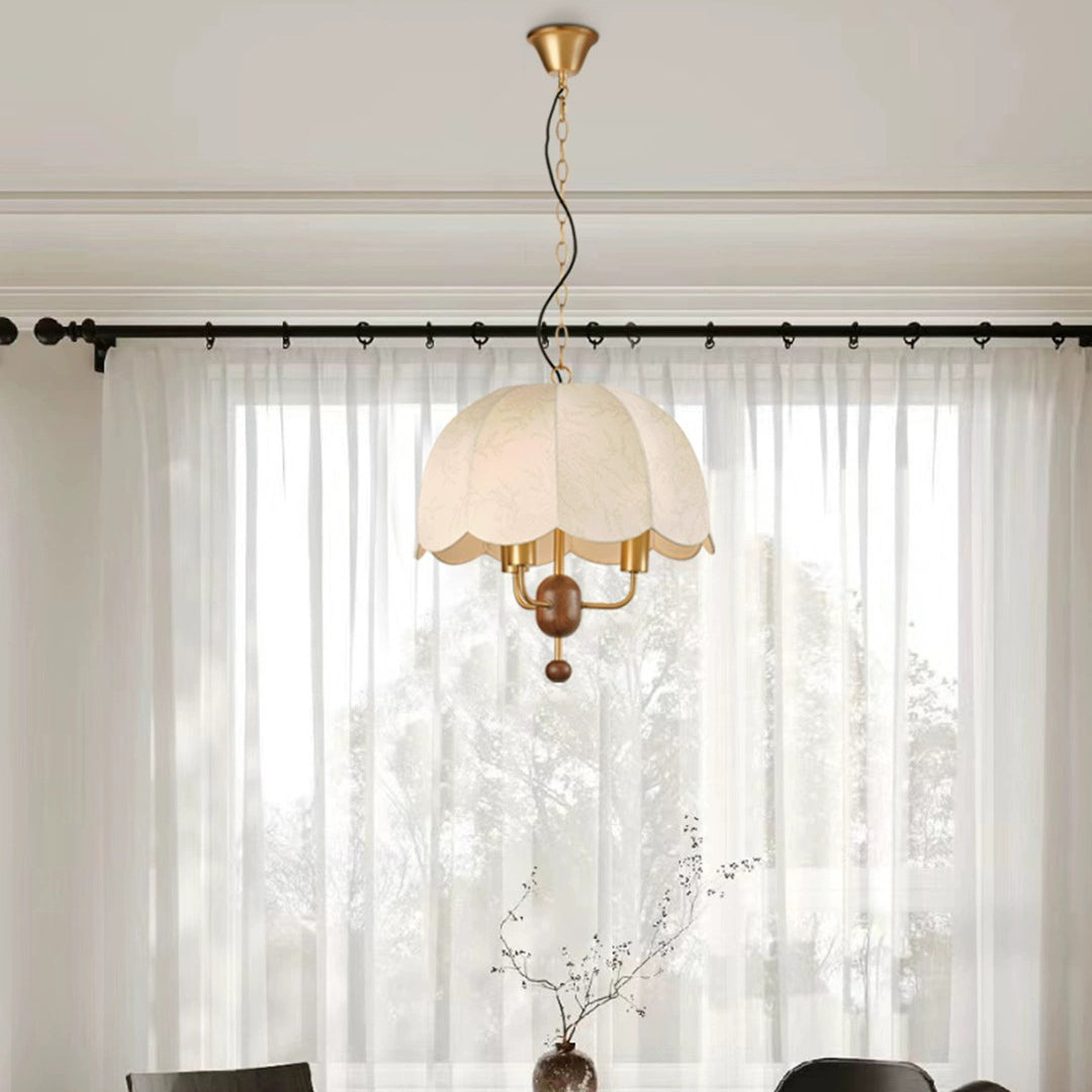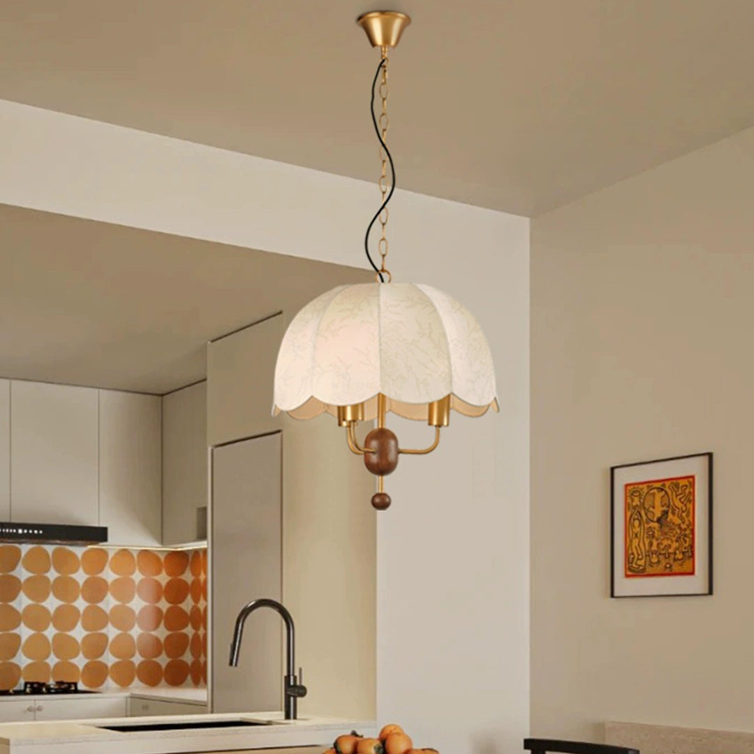 Traditional French Metal Wood Fabric Dome Decorative Border 3-Light Pendant Light For Dining Room
