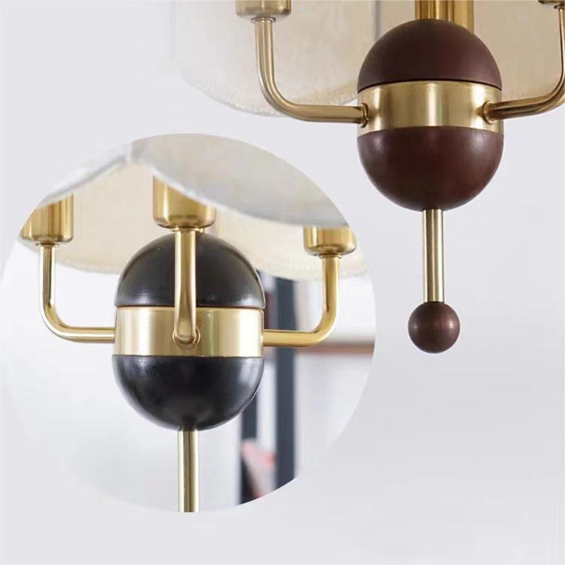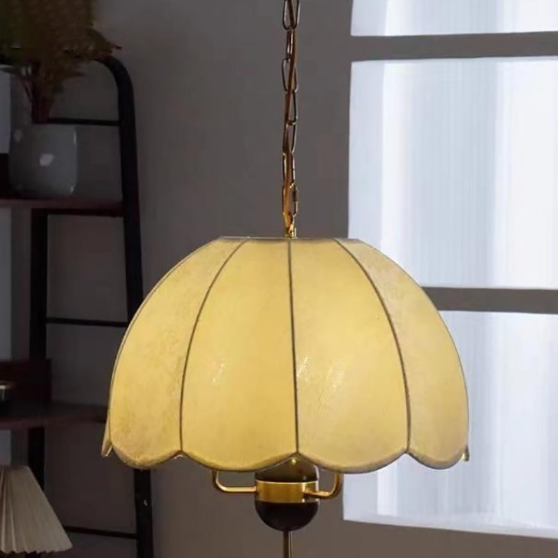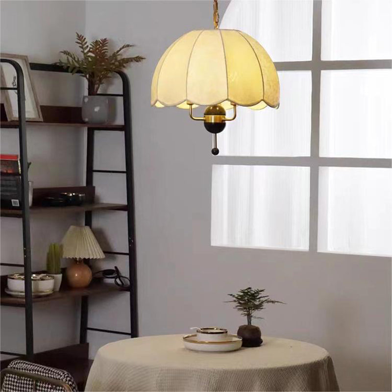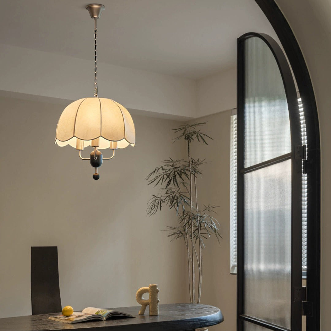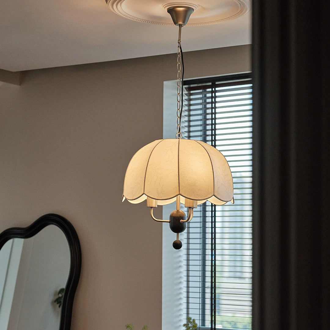 Traditional French Metal Wood Fabric Dome Decorative Border 3-Light Pendant Light For Dining Room