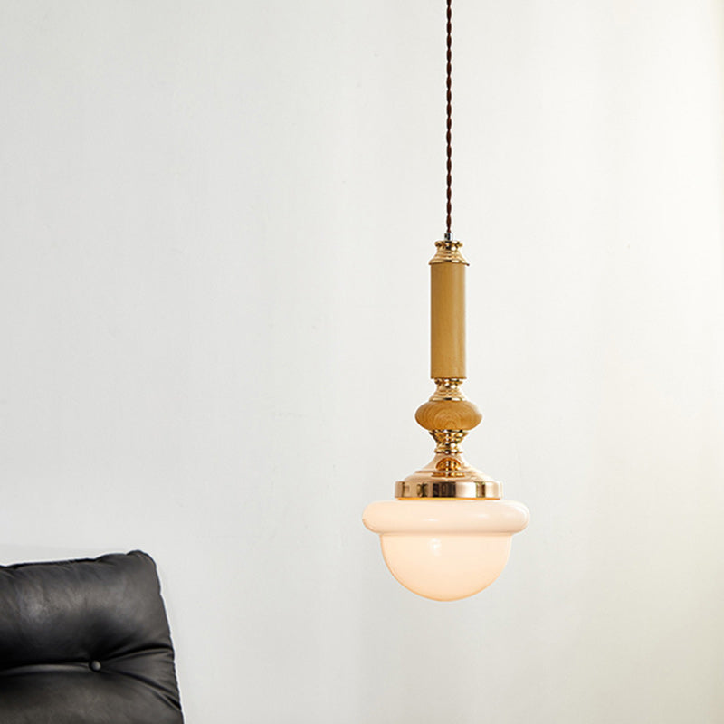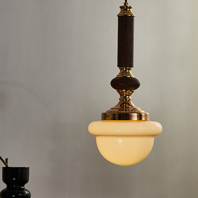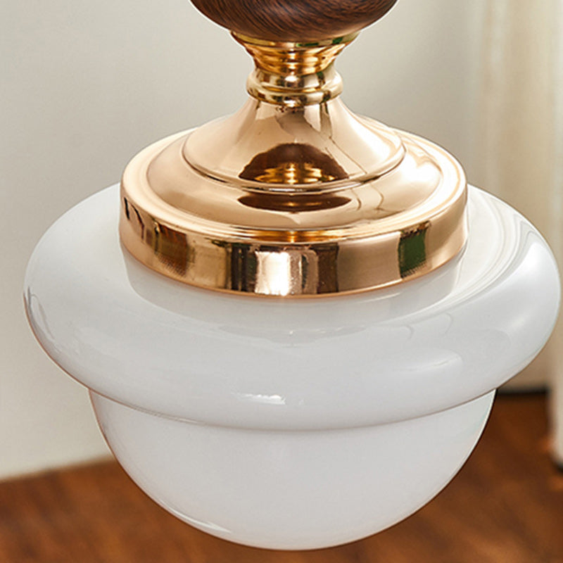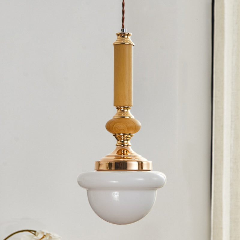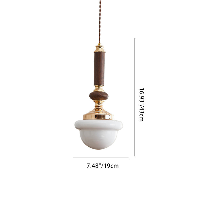 Traditional French Oval Iron Wood Glass 1-Light Pendant Light For Living Room