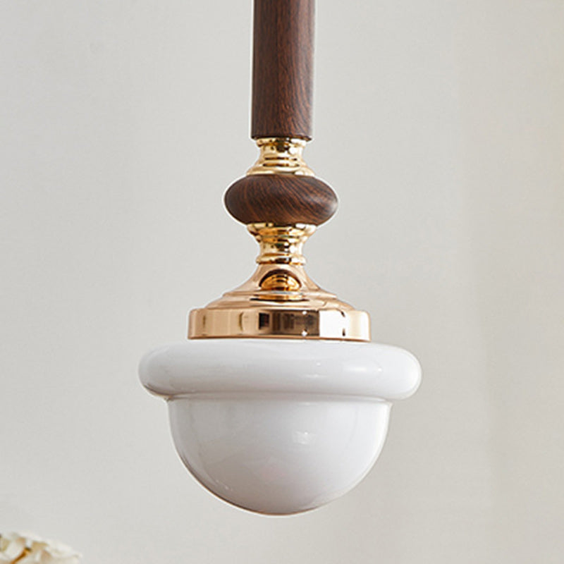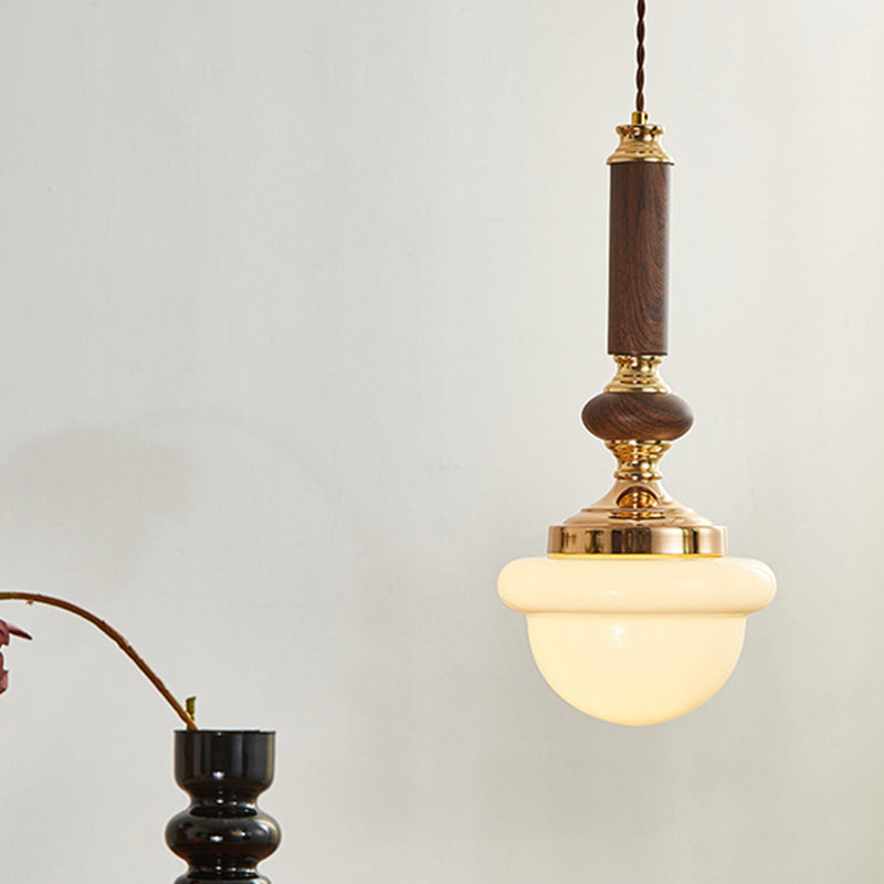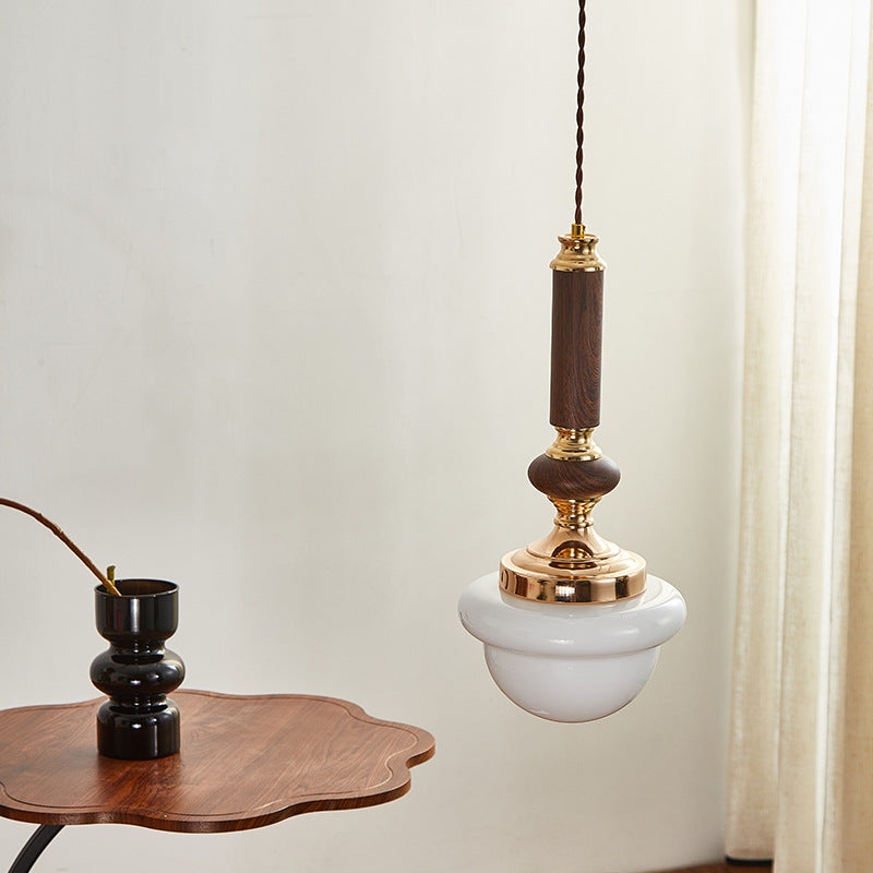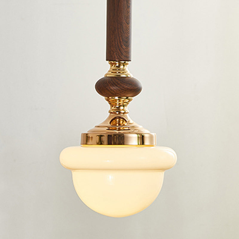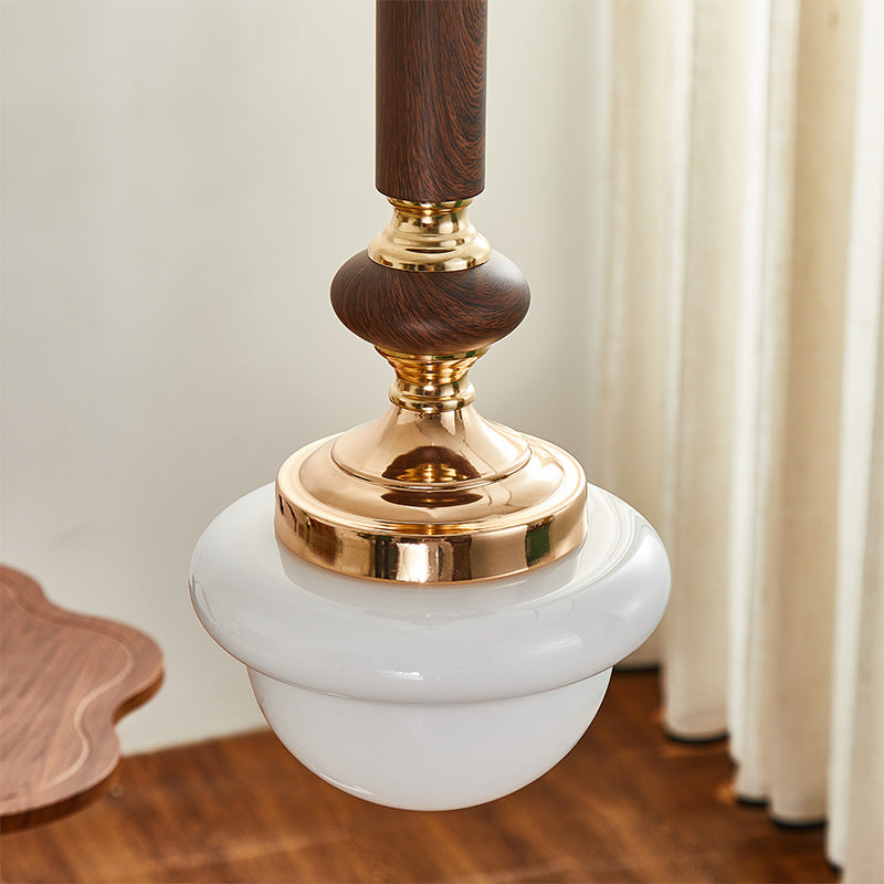 Traditional French Oval Iron Wood Glass 1-Light Pendant Light For Living Room
