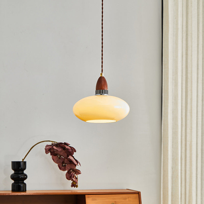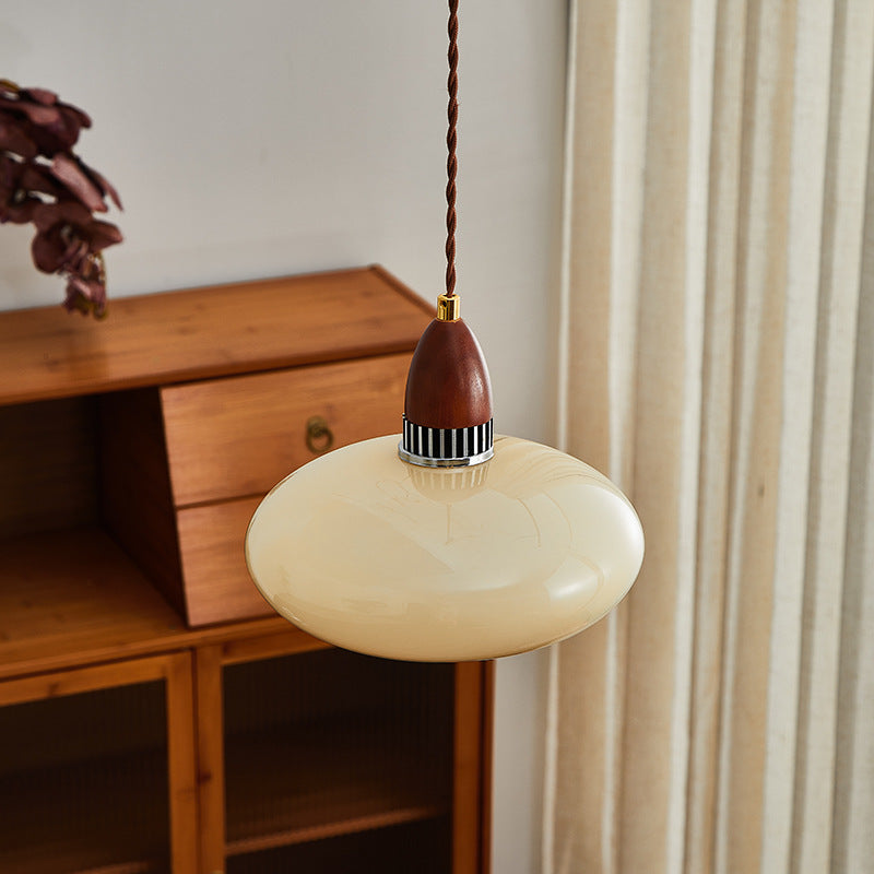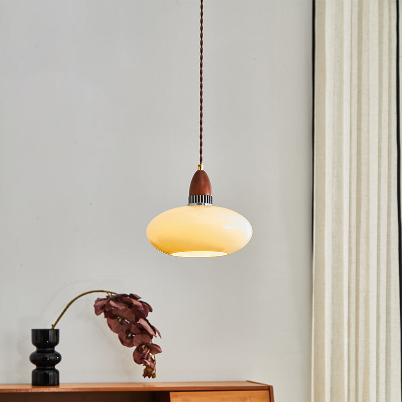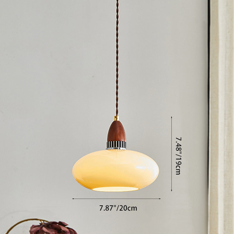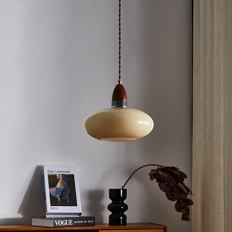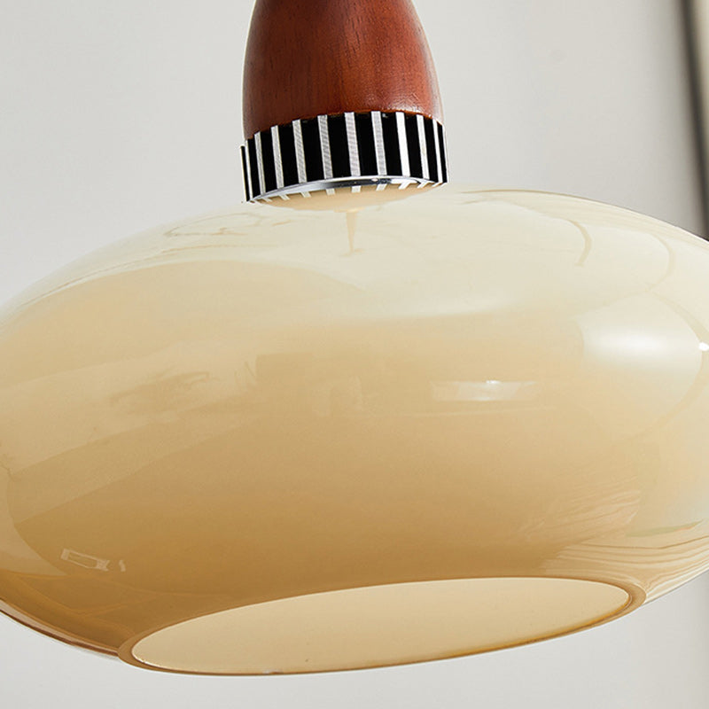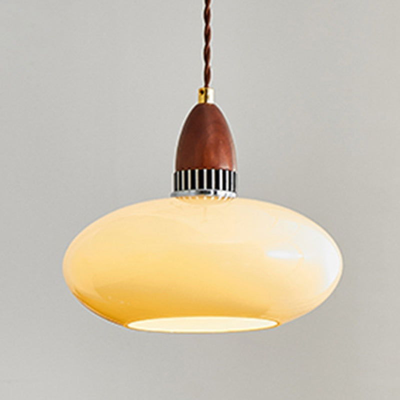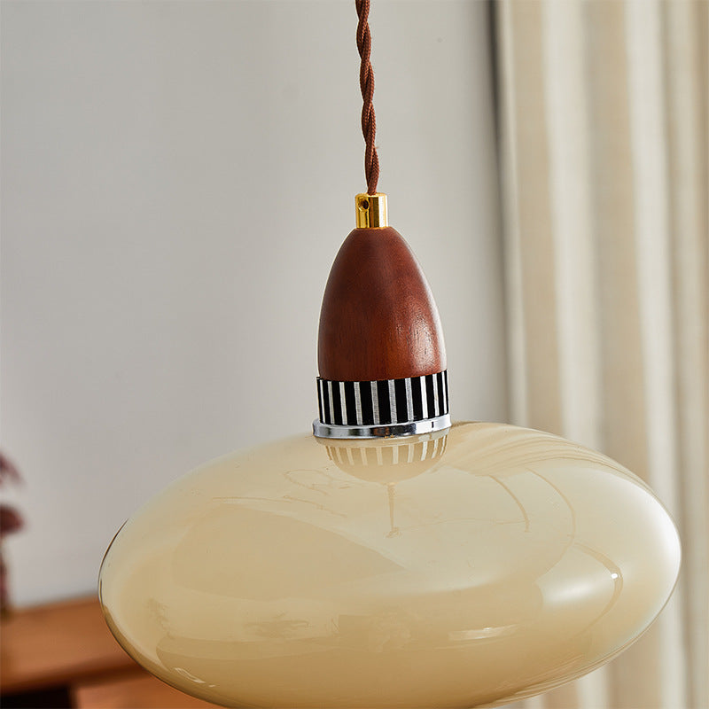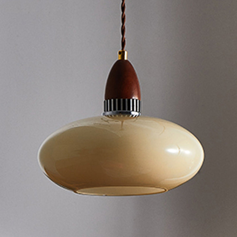 Traditional French Oval Wood Glass 1-Light Pendant Light For Living Room