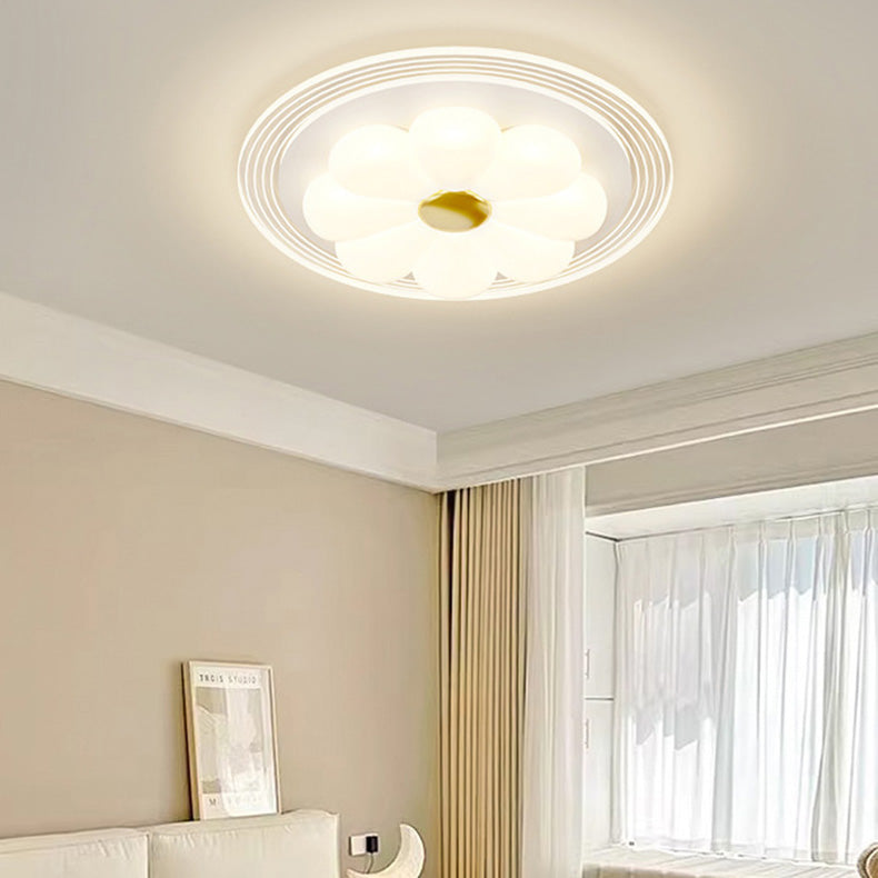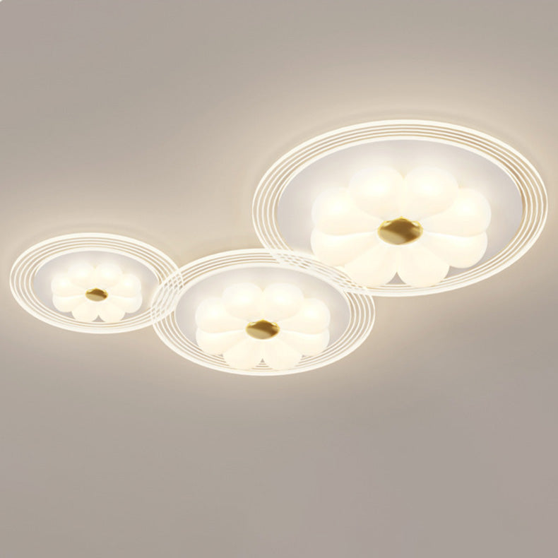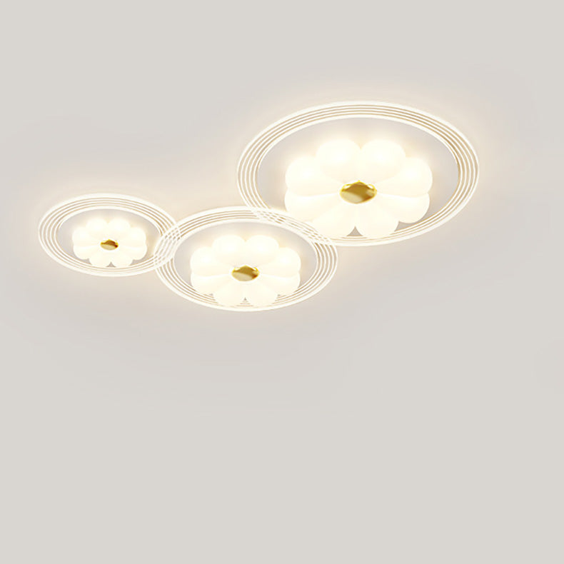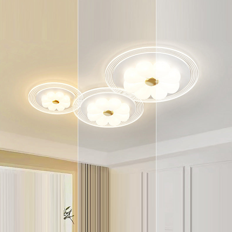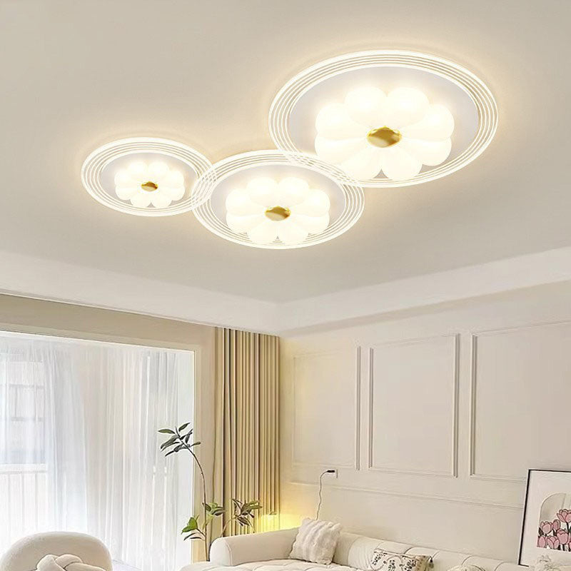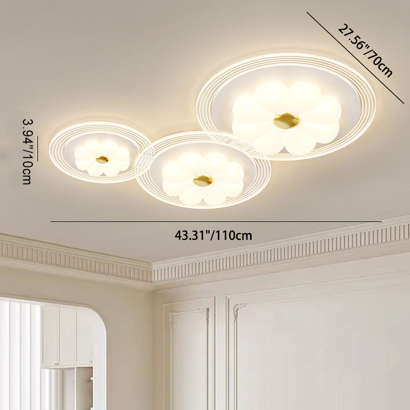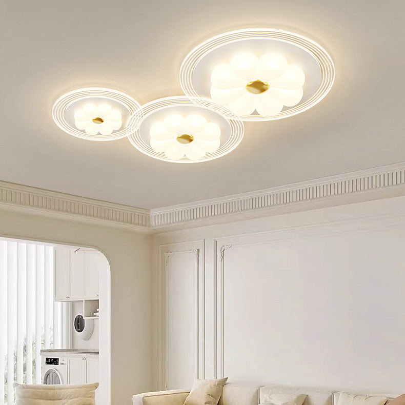 Traditional French Pastoral Floral Combination Acrylic Iron LED Flush Mount Ceiling Light For Living Room