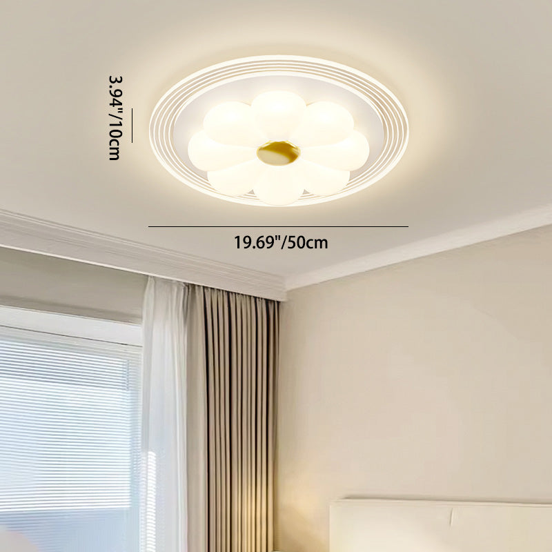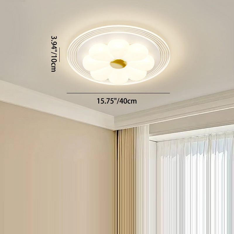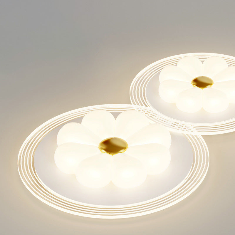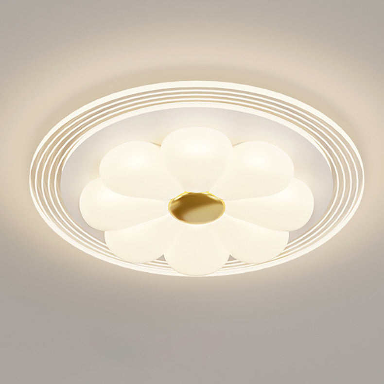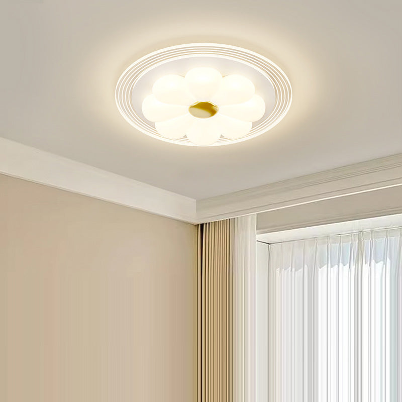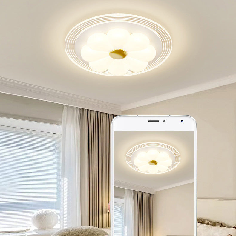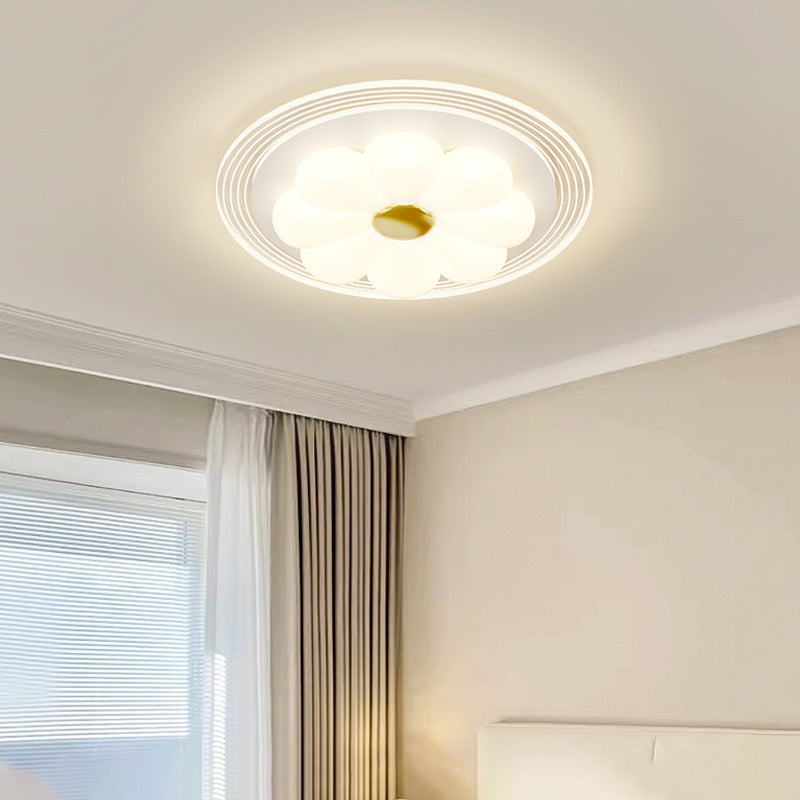 Traditional French Pastoral Floral Combination Acrylic Iron LED Flush Mount Ceiling Light For Living Room