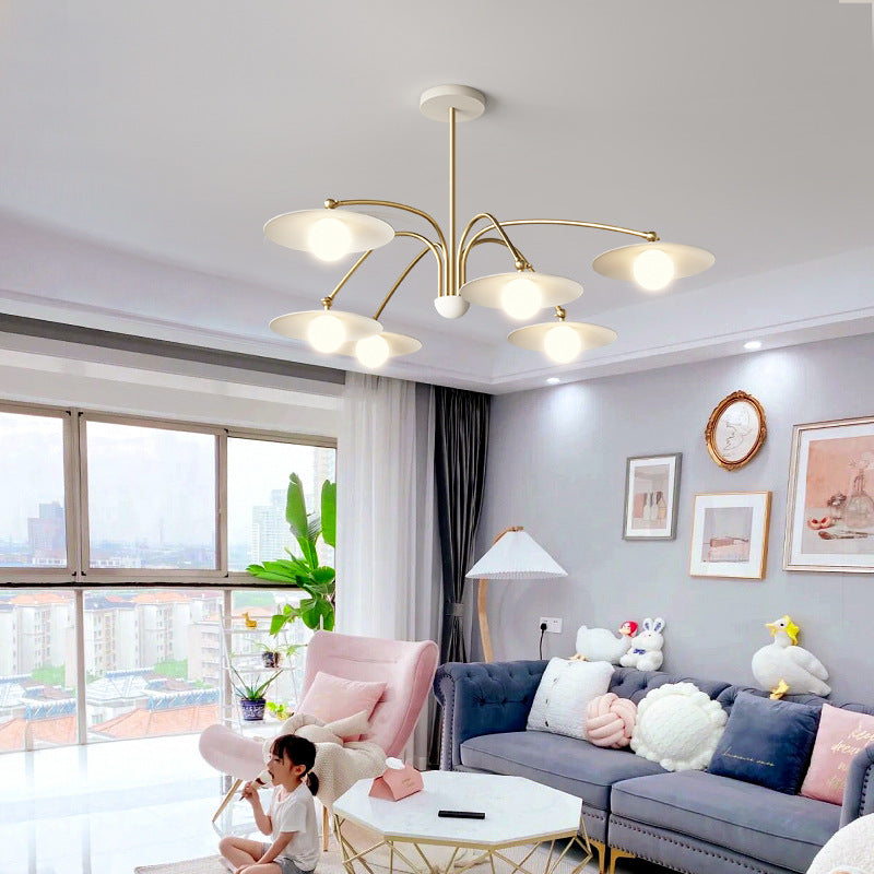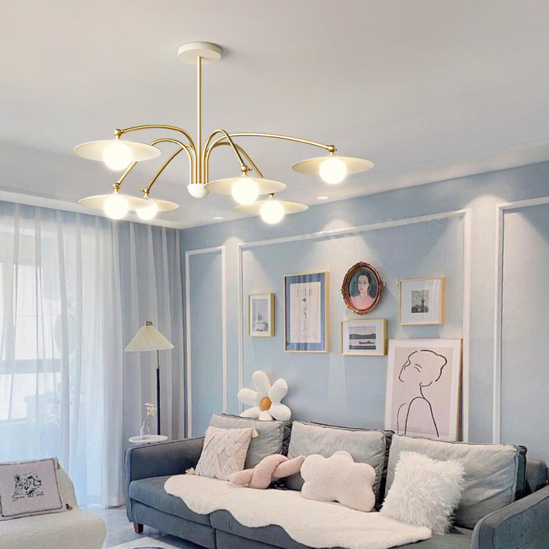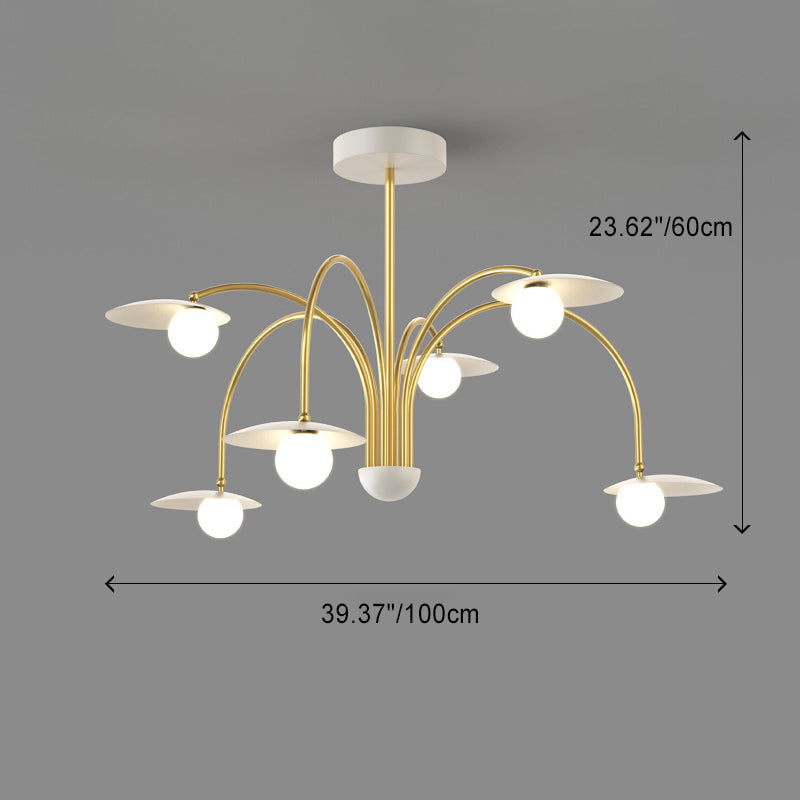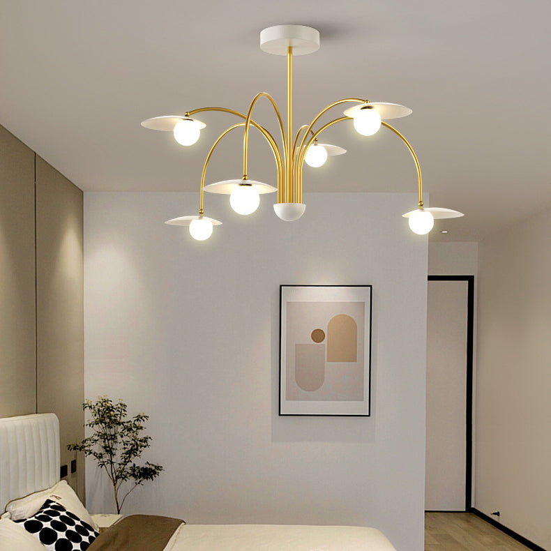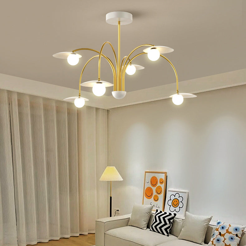Traditional French Pastoral Hardware Glass Ball Shade 6-Light Chandelier For Living Room