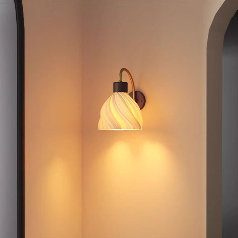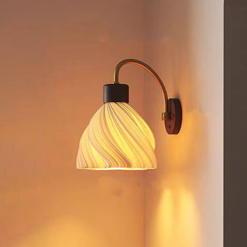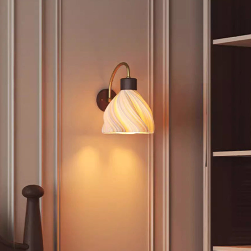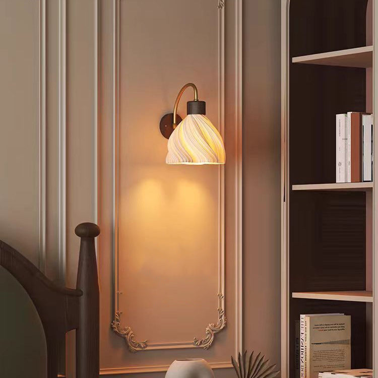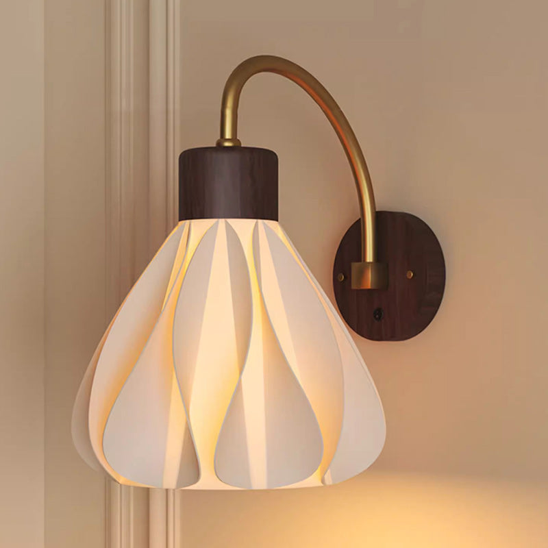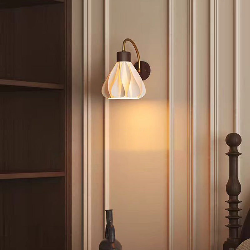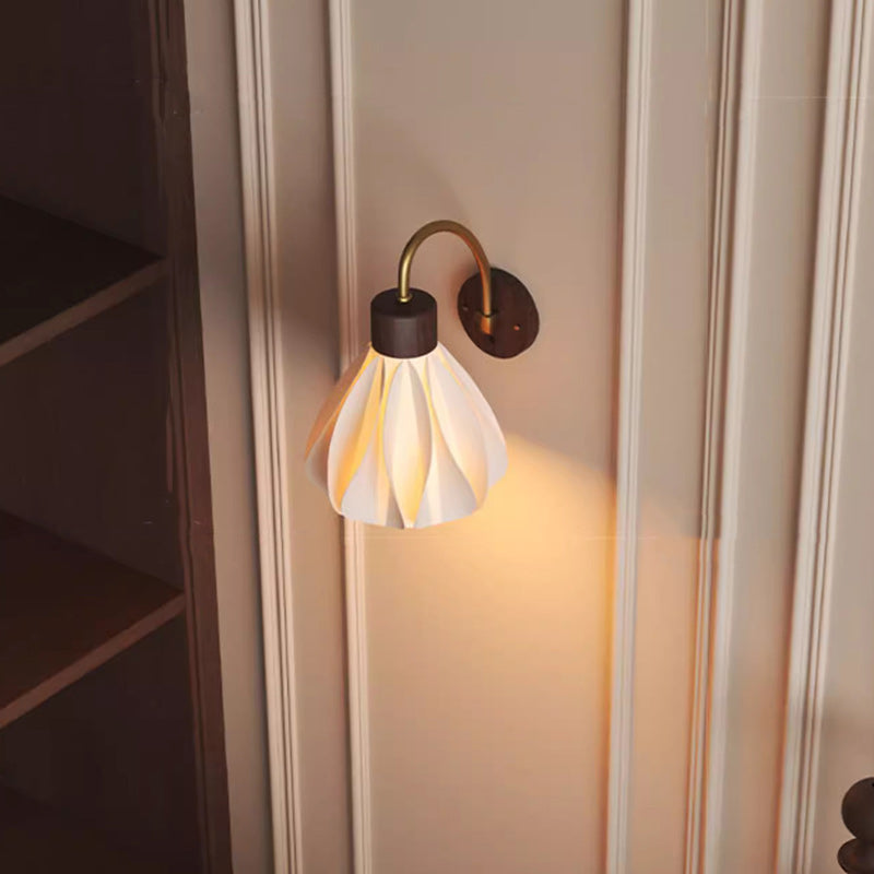 Traditional French Petal Skirt Iron Wood PLA 1-Light Wall Sconce Lamp For Bedside