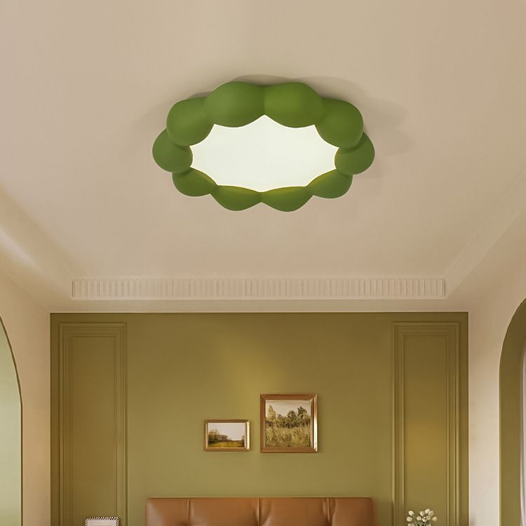 Traditional French Resin Acrylic Round Shade LED Flush Mount Ceiling Light For Living Room