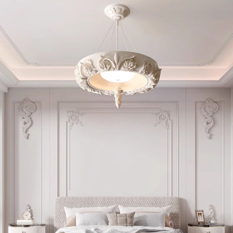 Traditional French Resin Glass Round Carved LED Chandeliers For Dining Room