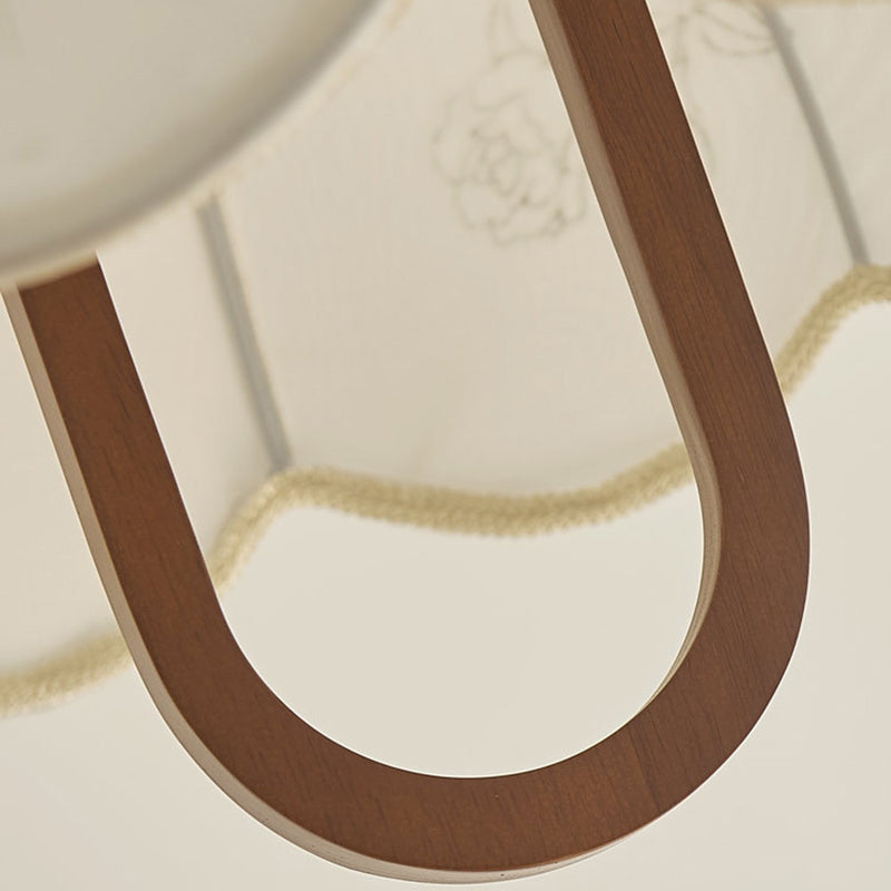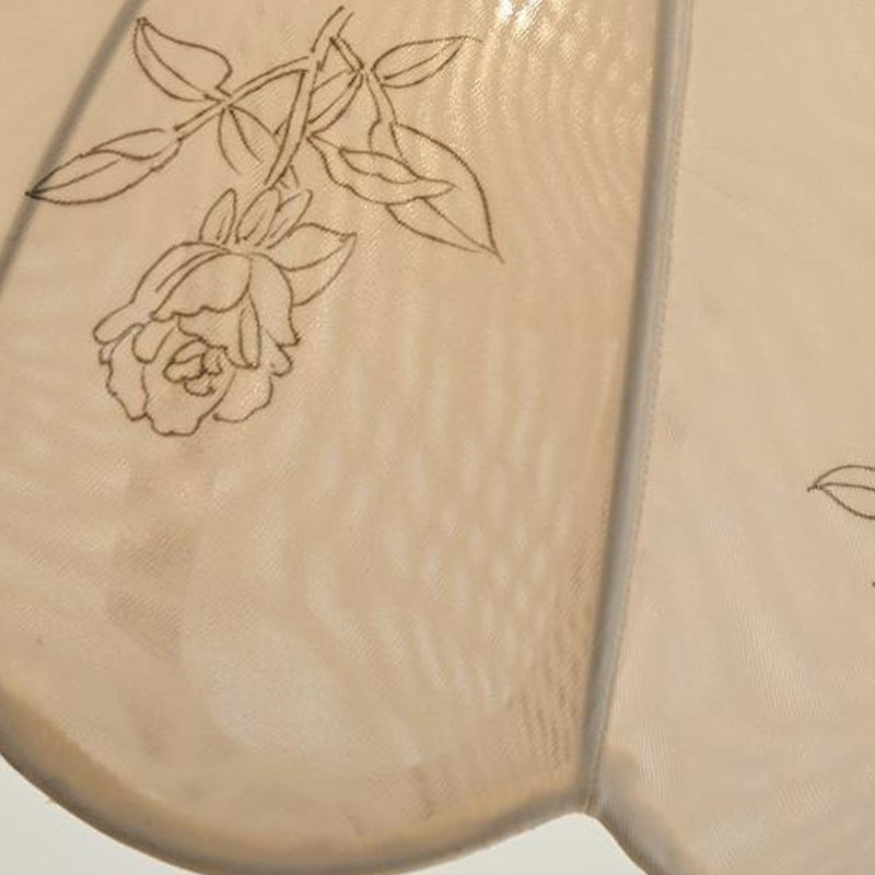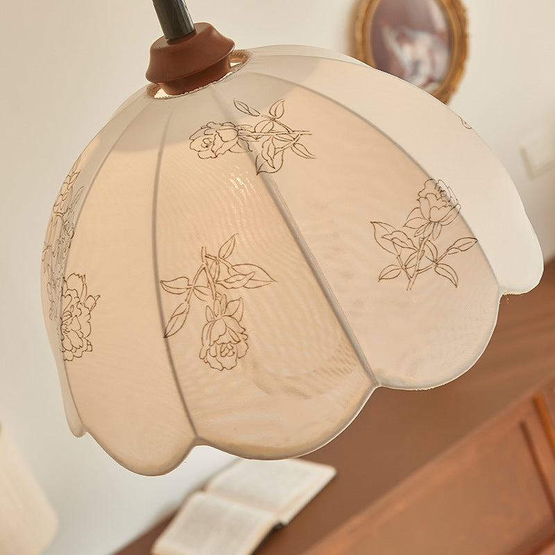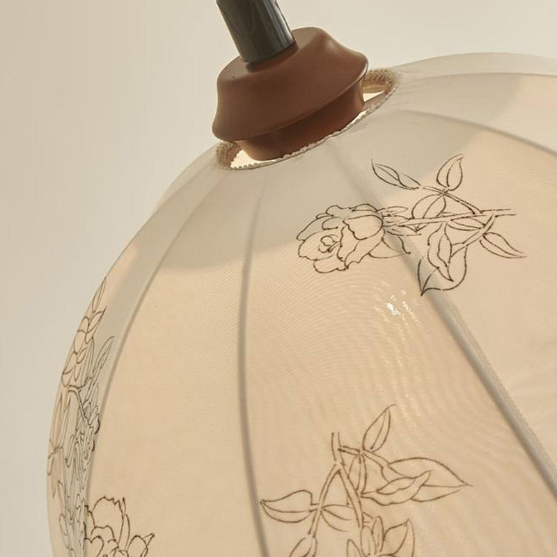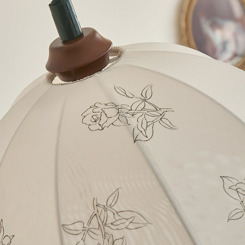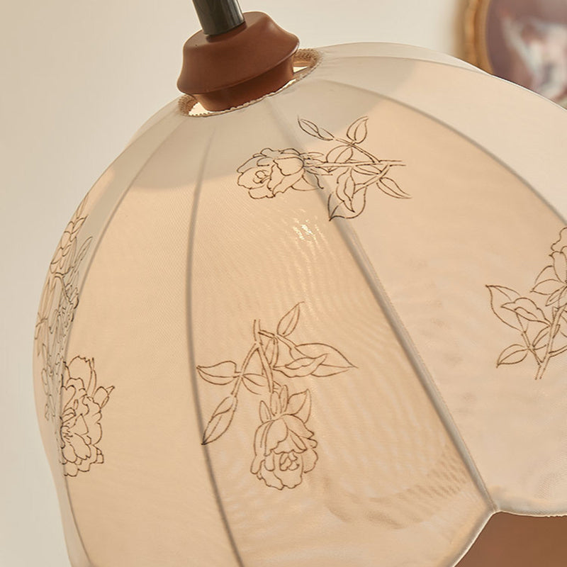 Traditional French Round Dome Floral Print Solid Wood Fabric 1-Light Pendant Light For Living Room