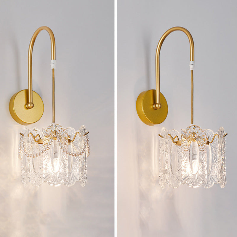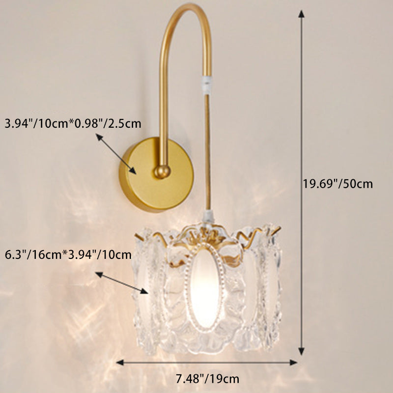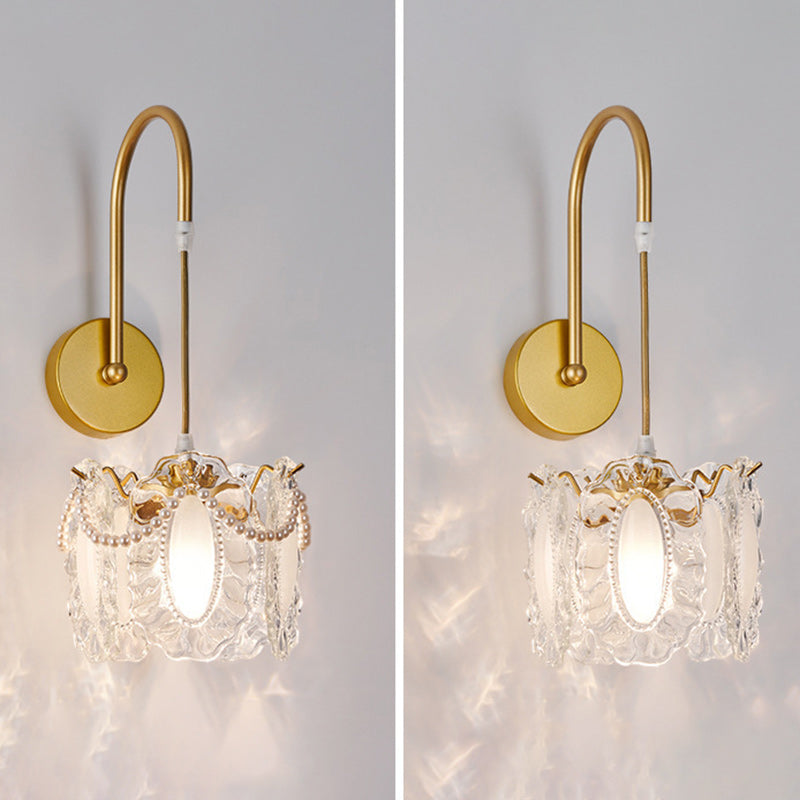 Traditional French Round Feather Shell Glass Hardware 1-Light Wall Sconce Lamp For Living Room
