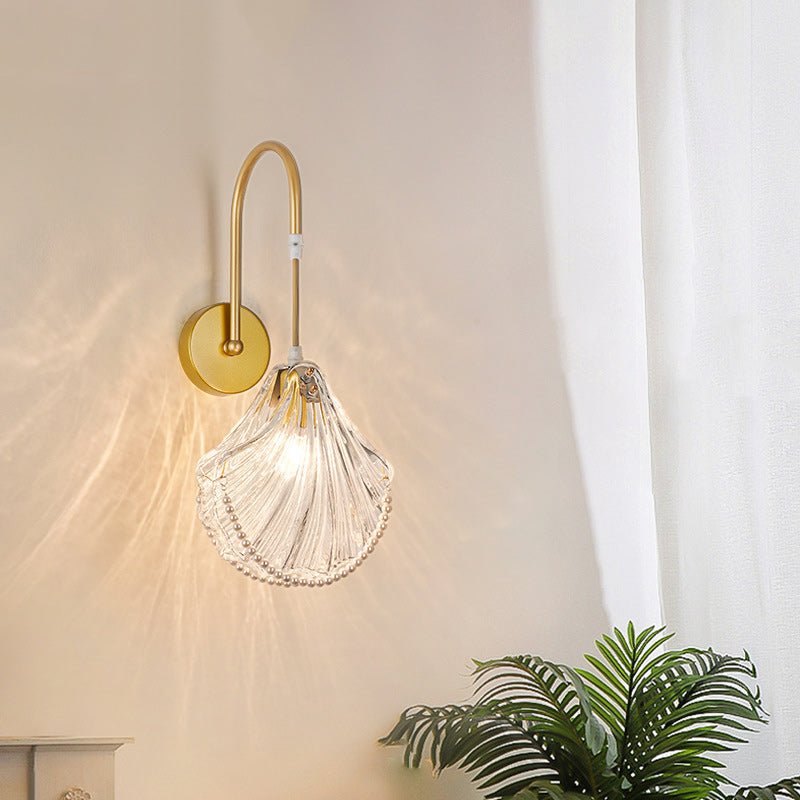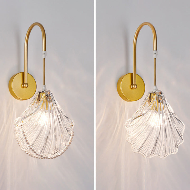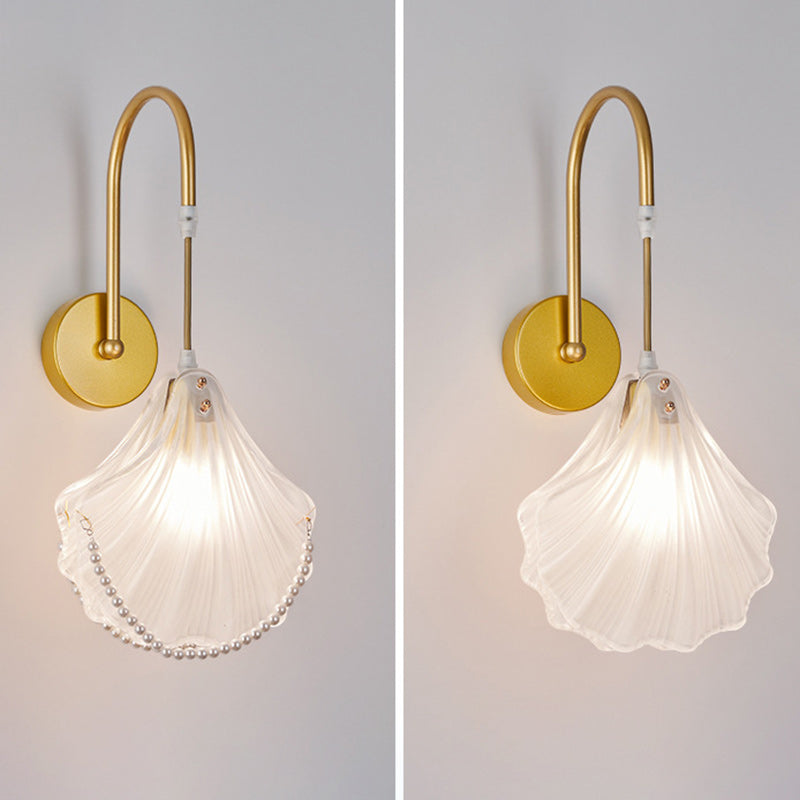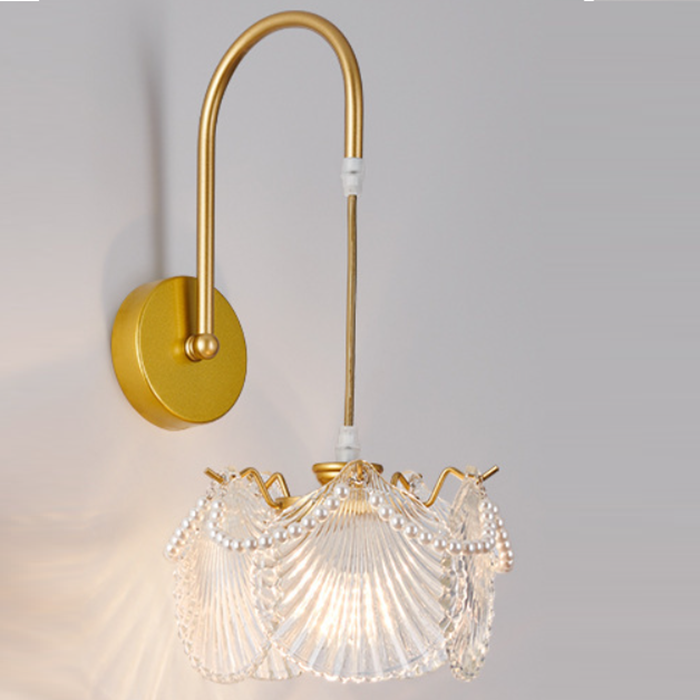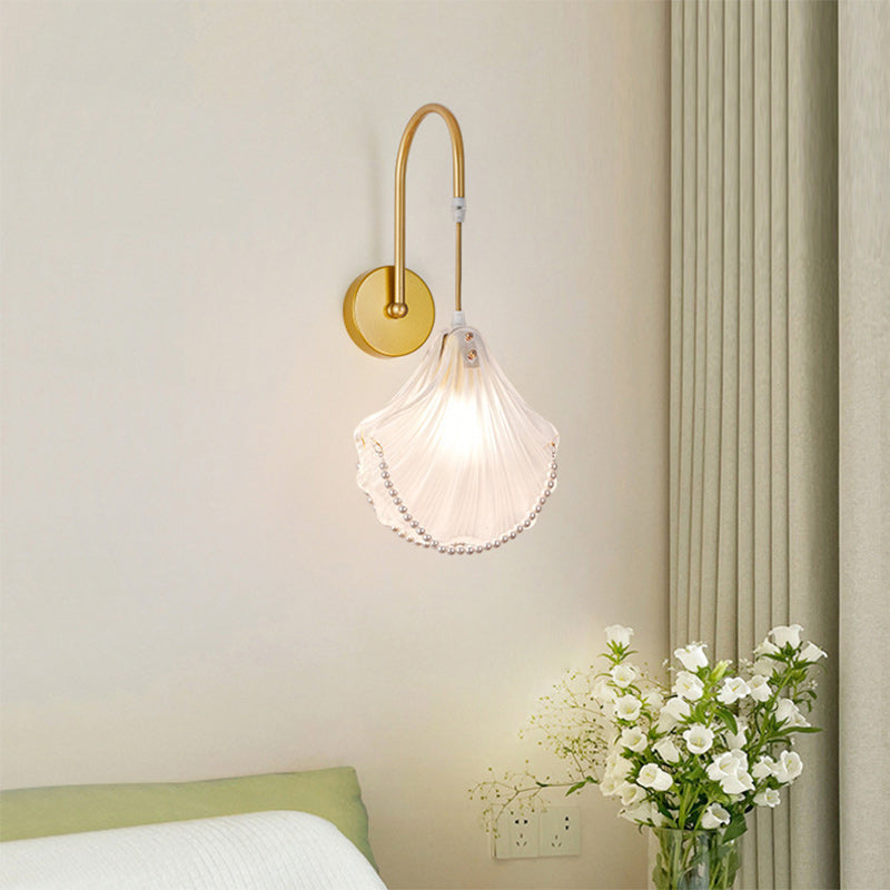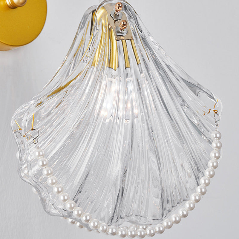 Traditional French Round Feather Shell Pearl Glass Hardware 1-Light Wall Sconce Lamp For Bedroom