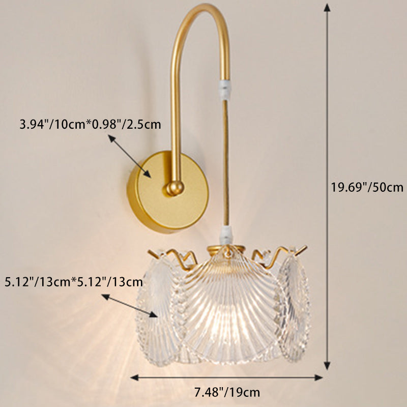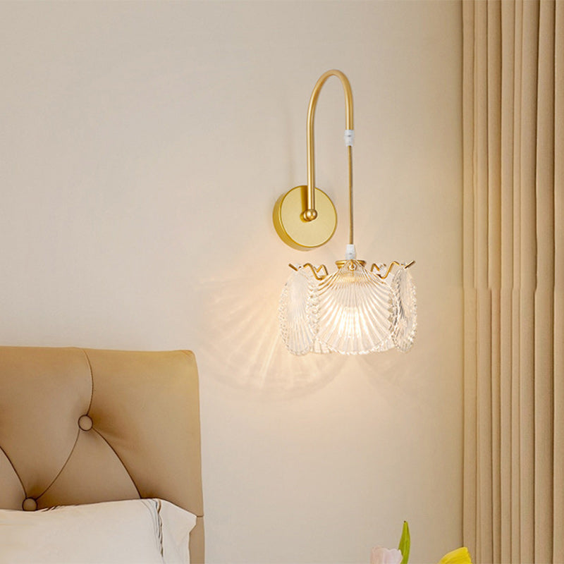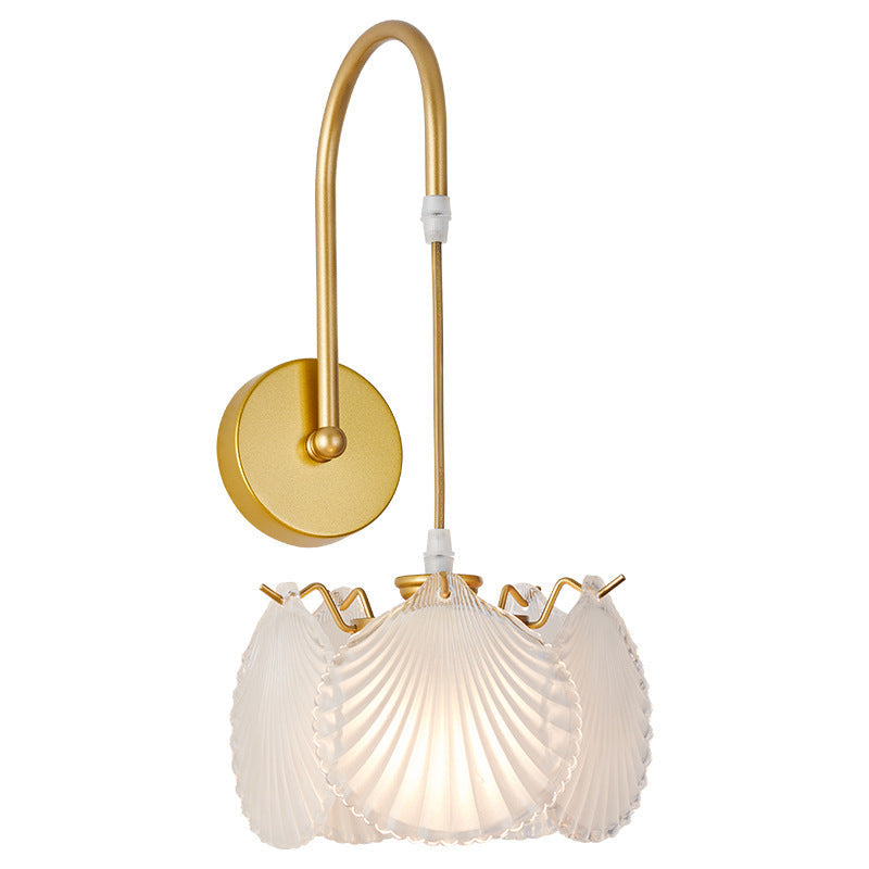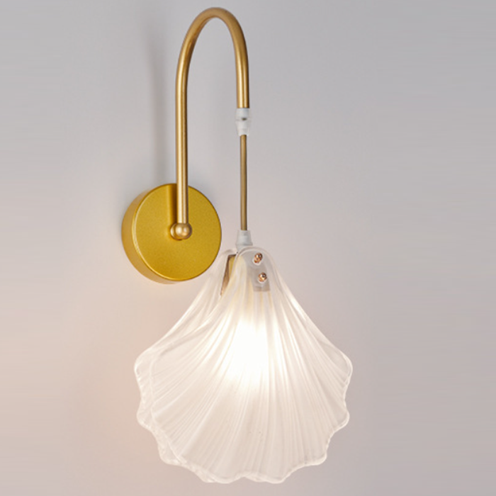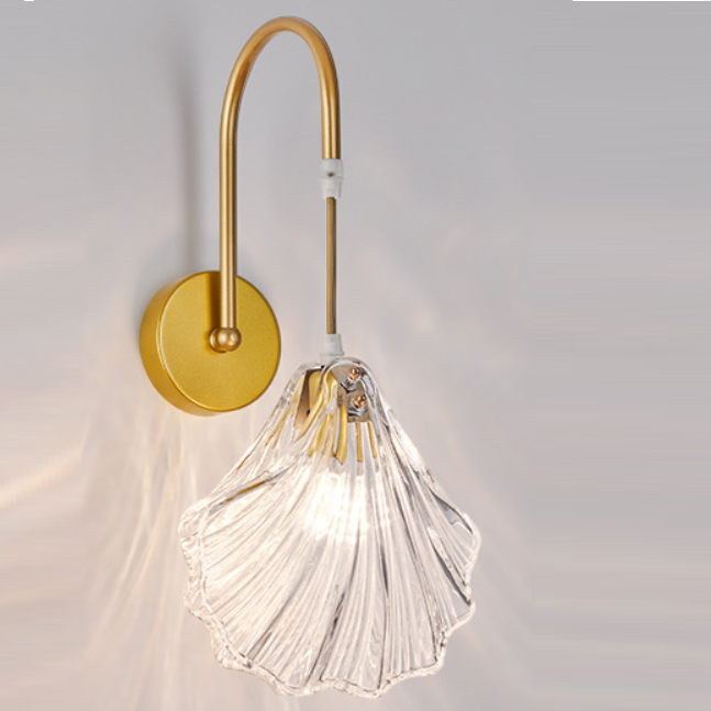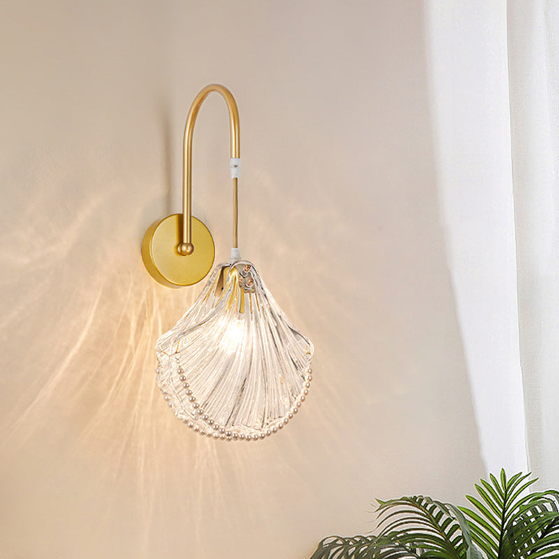 Traditional French Round Feather Shell Pearl Glass Hardware 1-Light Wall Sconce Lamp For Bedroom