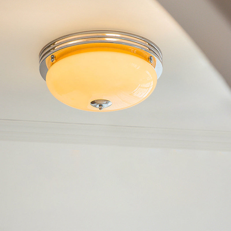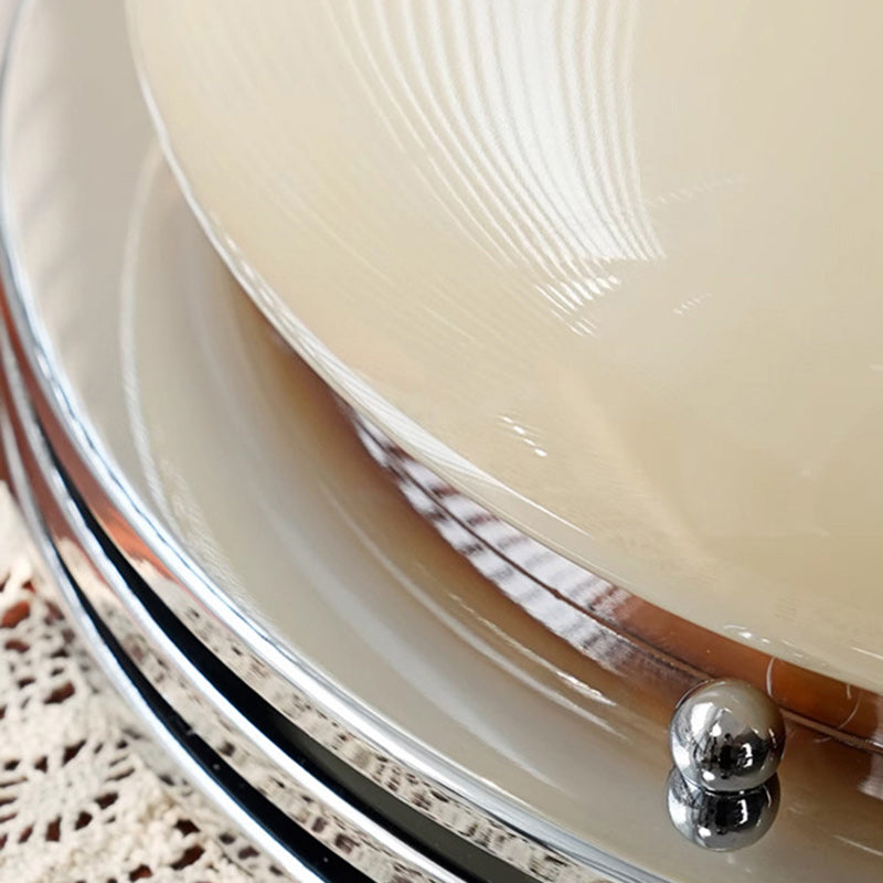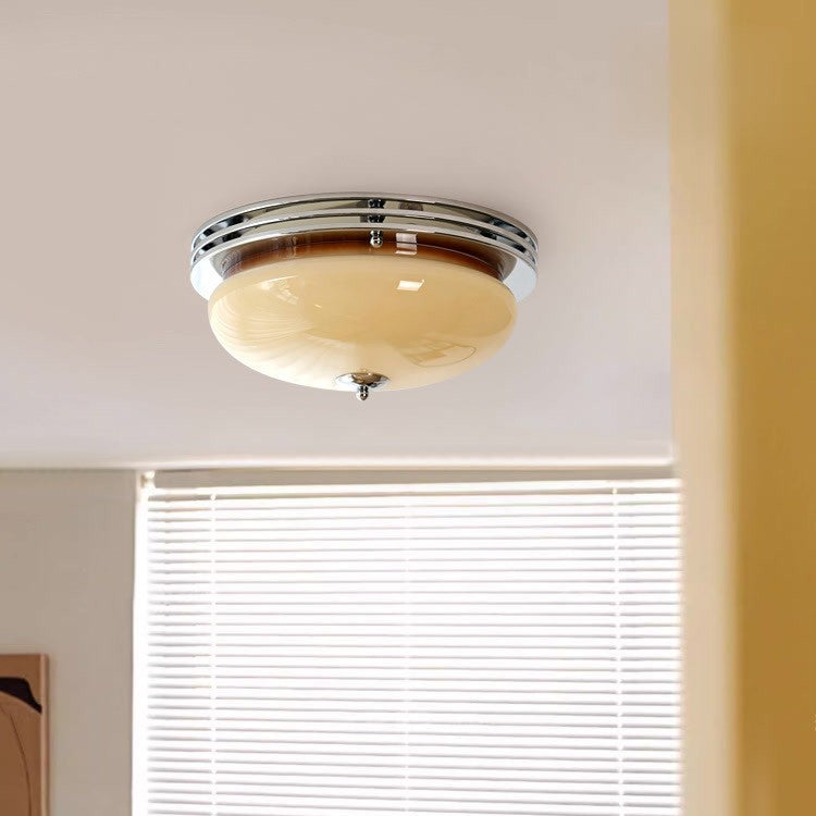 Traditional French Round Iron Glass 3-Light Flush Mount Ceiling Light For Living Room
