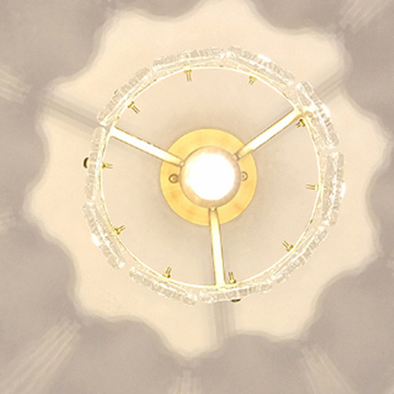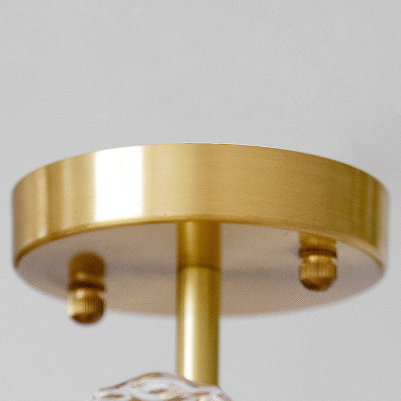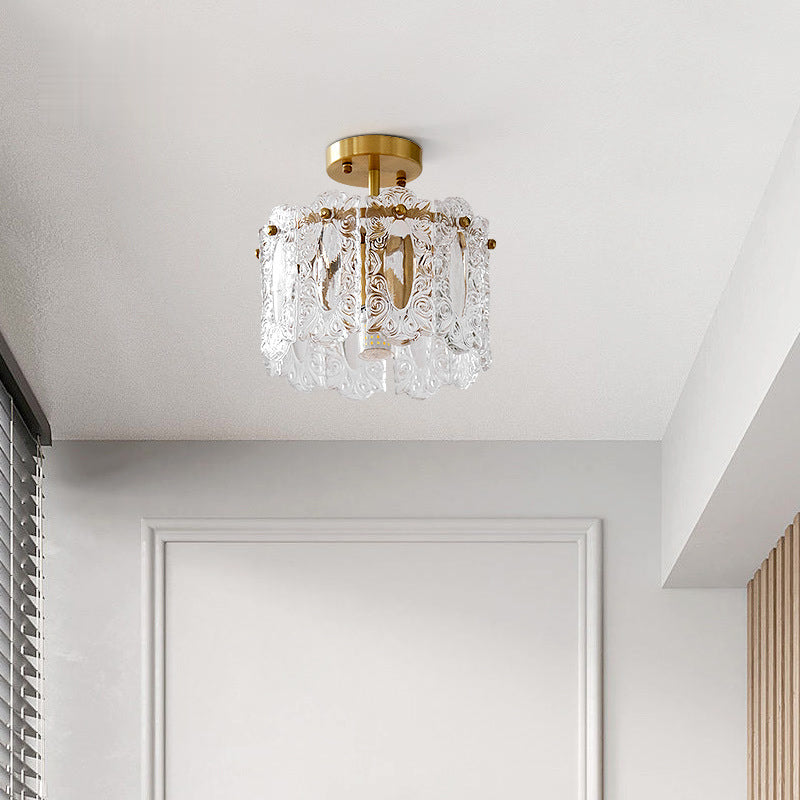 Traditional French Round Lace Full Copper Frame Glass Shade 1-Light Semi-Flush Mount Ceiling Light For Living Room