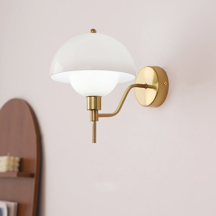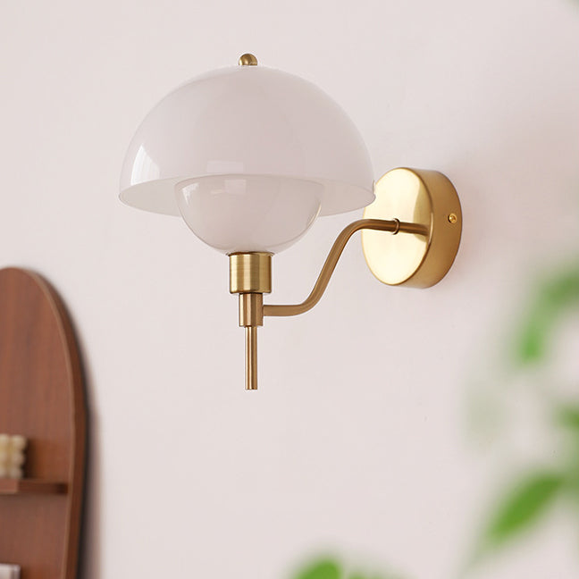 Traditional French Round Mushroom Shape Glass Acrylic Iron 1-Light Wall Sconce Lamp For Living Room
