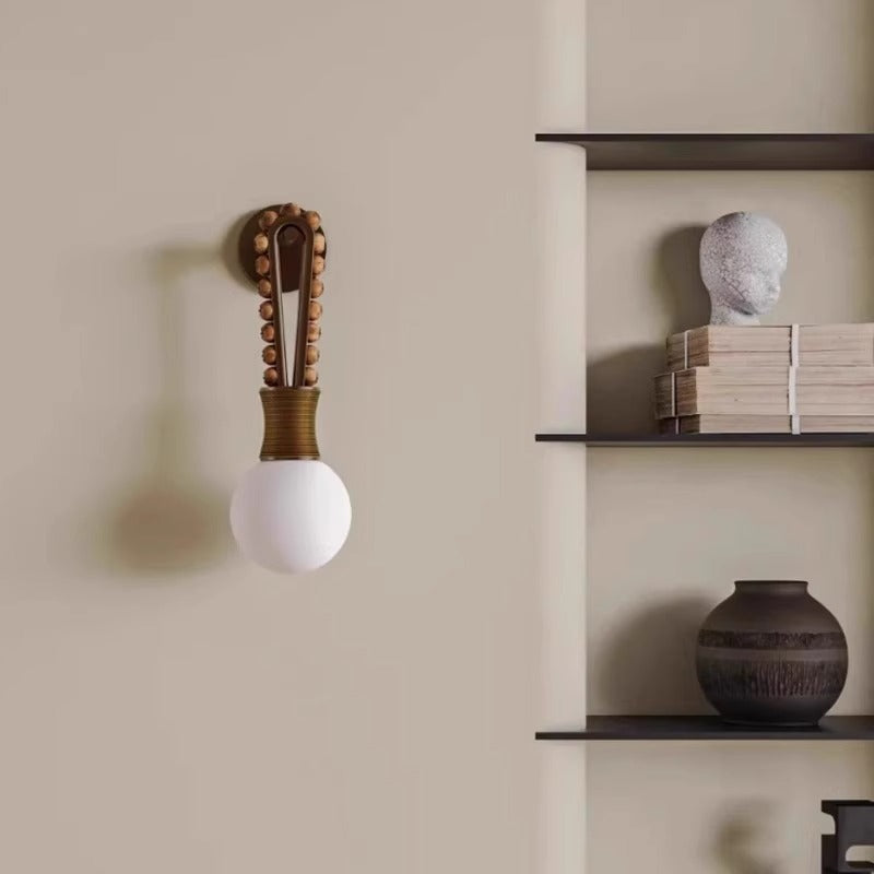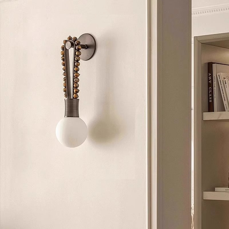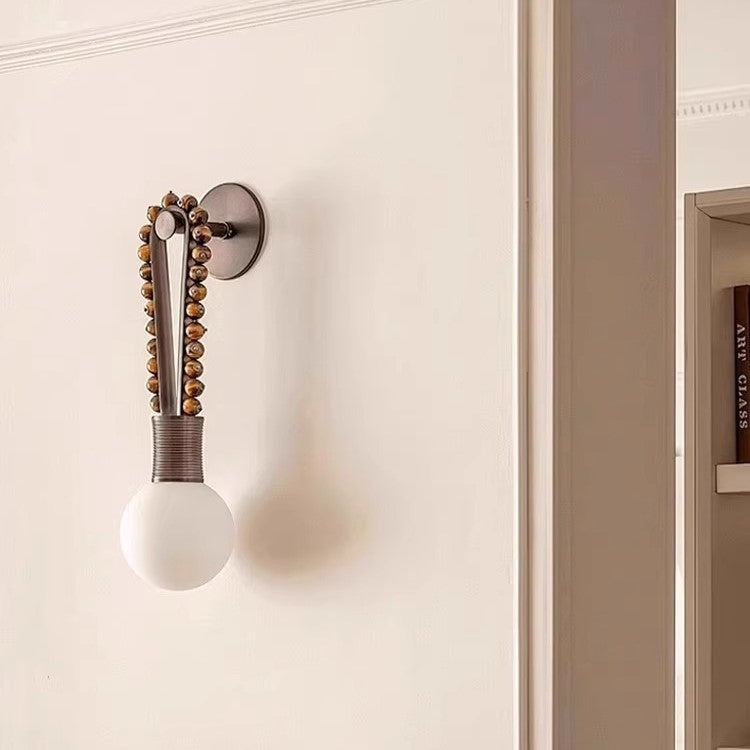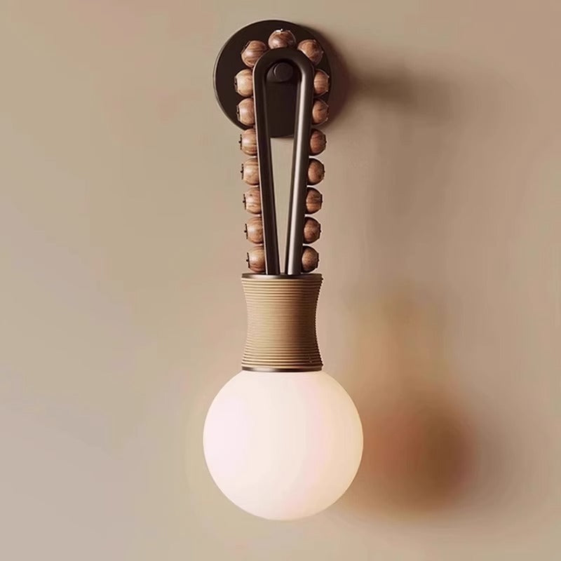 Traditional French Round Orb Hanging Rope Aluminum Glass 1-Light Wall Sconce Lamp For Bedroom