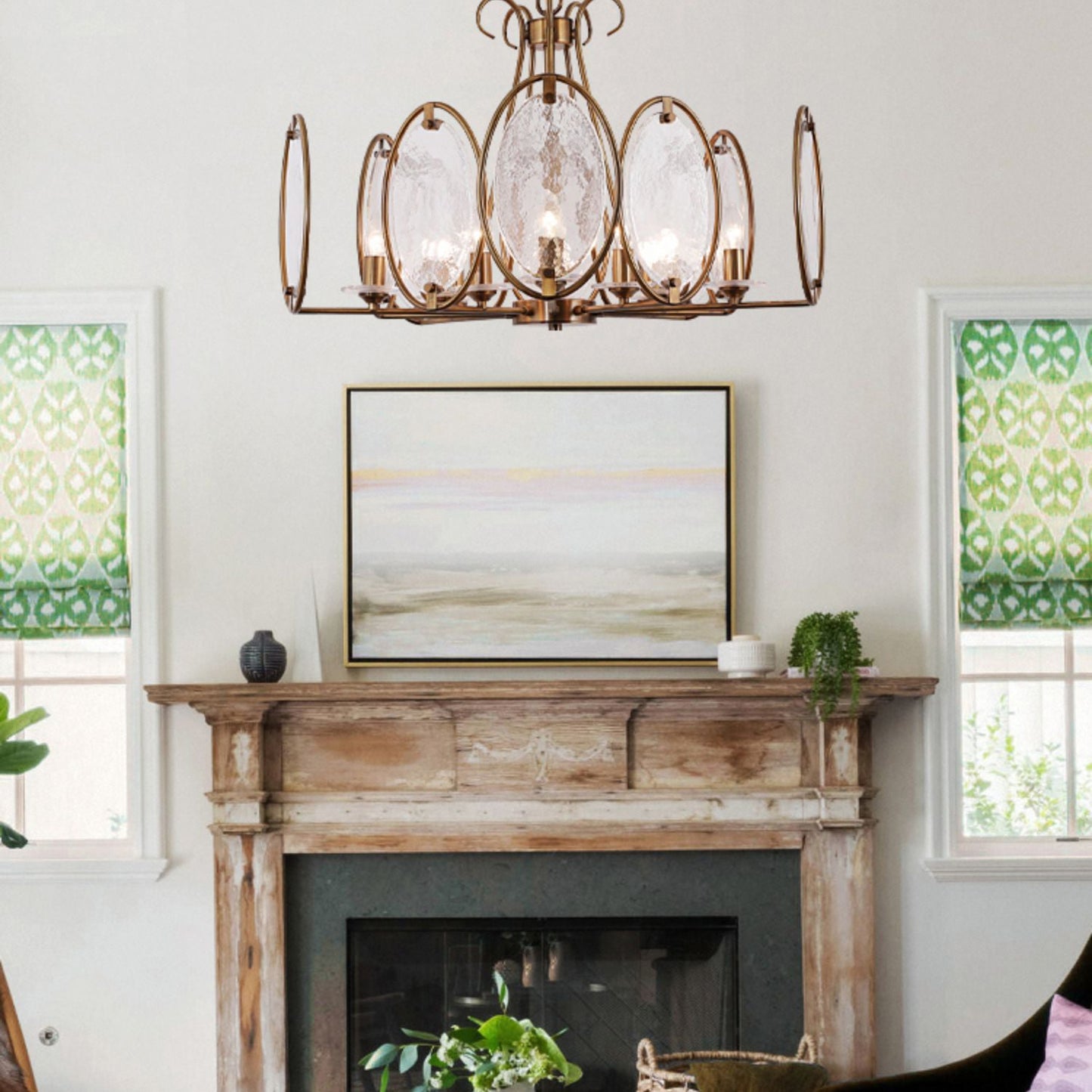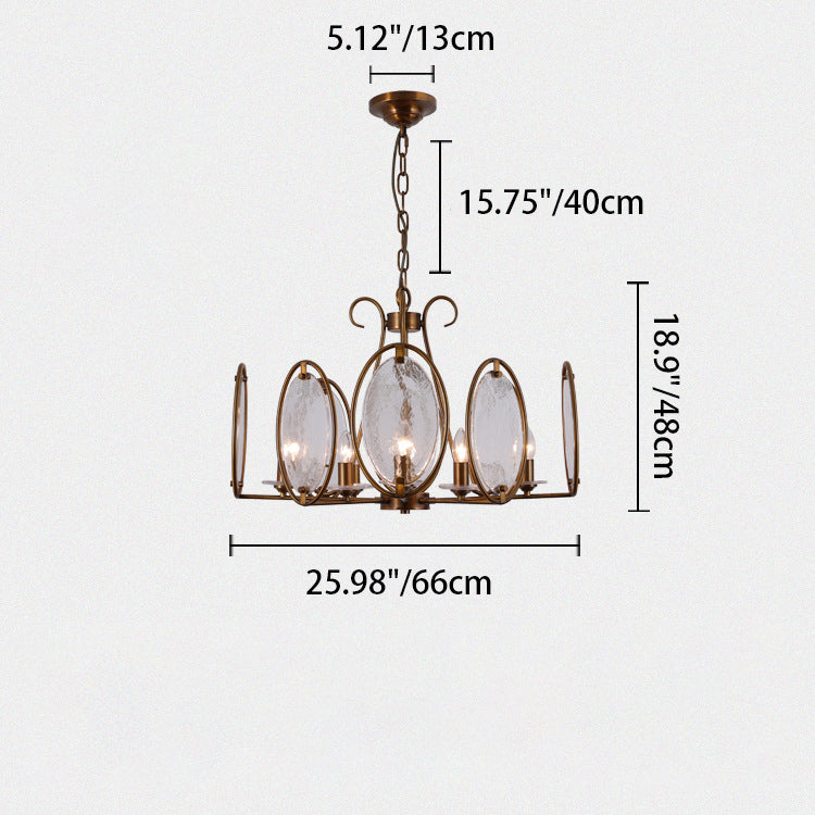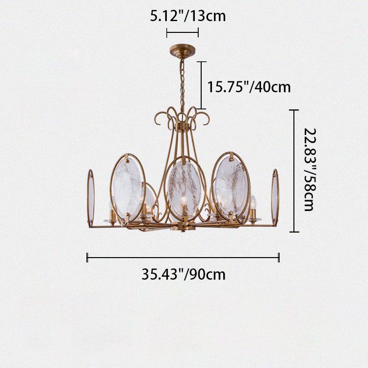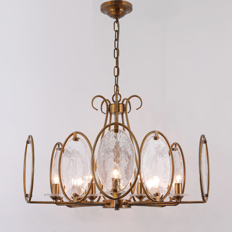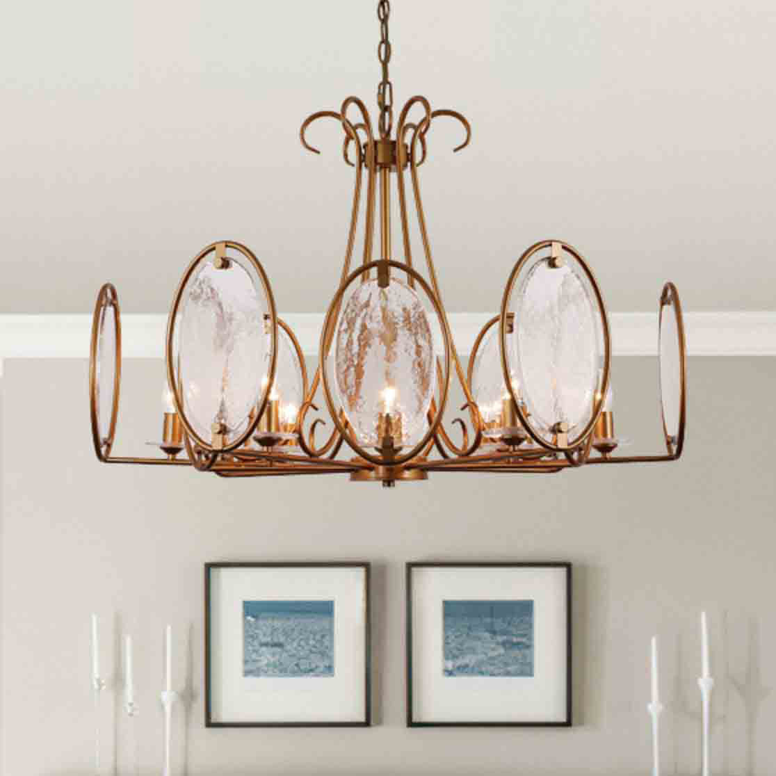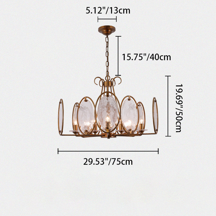 Traditional French Round Oval Copper Glass 8/10/12 Light Chandelier For Living Room