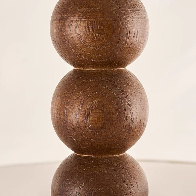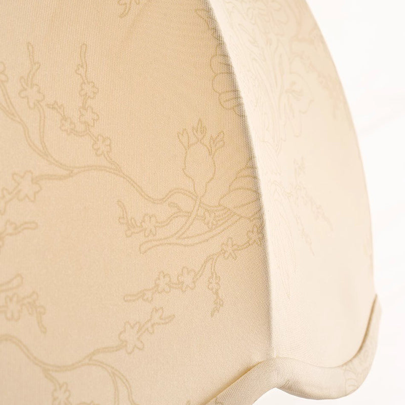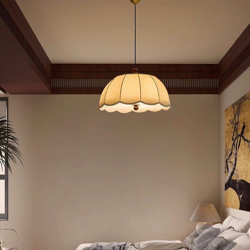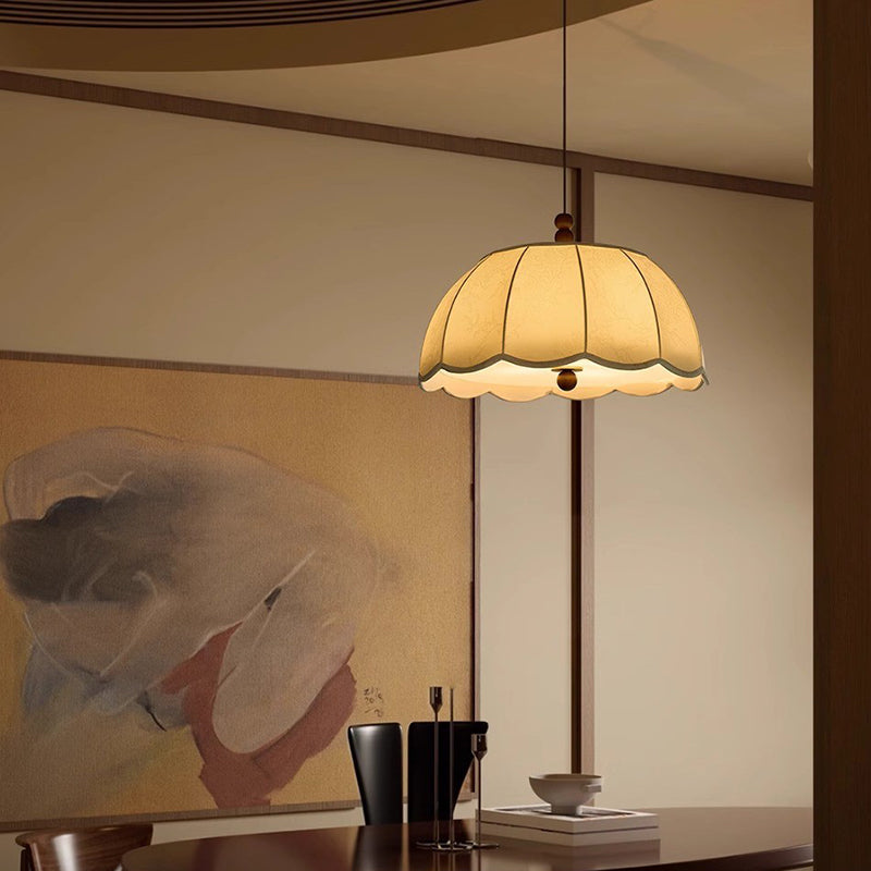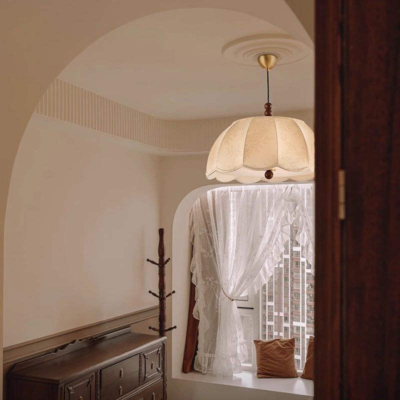 Traditional French Round Petal Wooden Beads Iron Fabric Shade 1-Light Pendant Light For Living Room