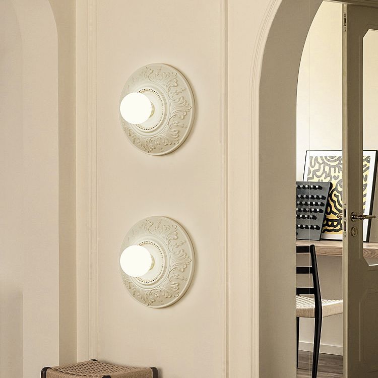 Traditional French Round Relief Resin Glass 1-Light Wall Sconce Lamp For Hallway