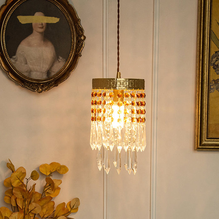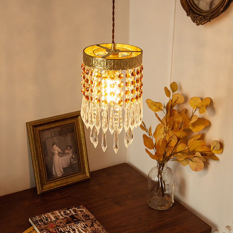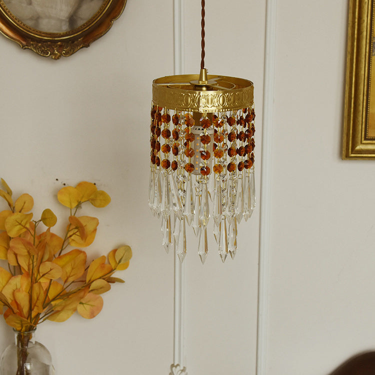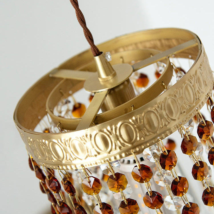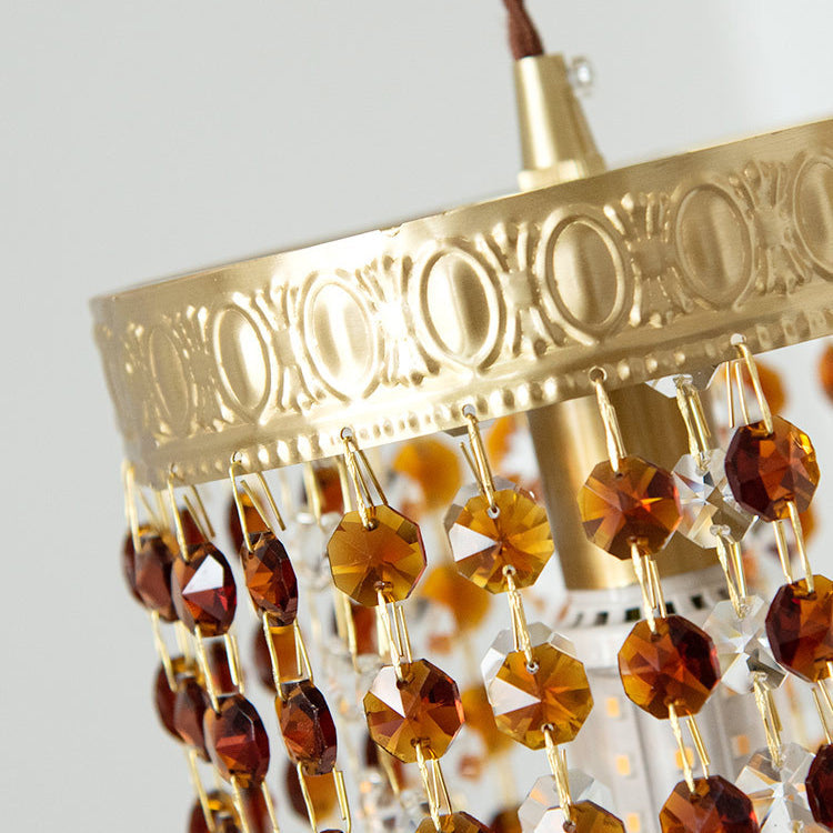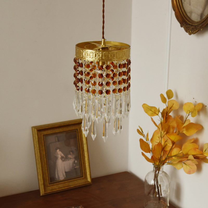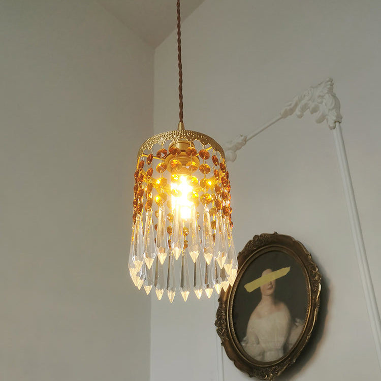 Traditional French Round Teardrop Crystal Copper 1-Light Pendant Light For Living Room