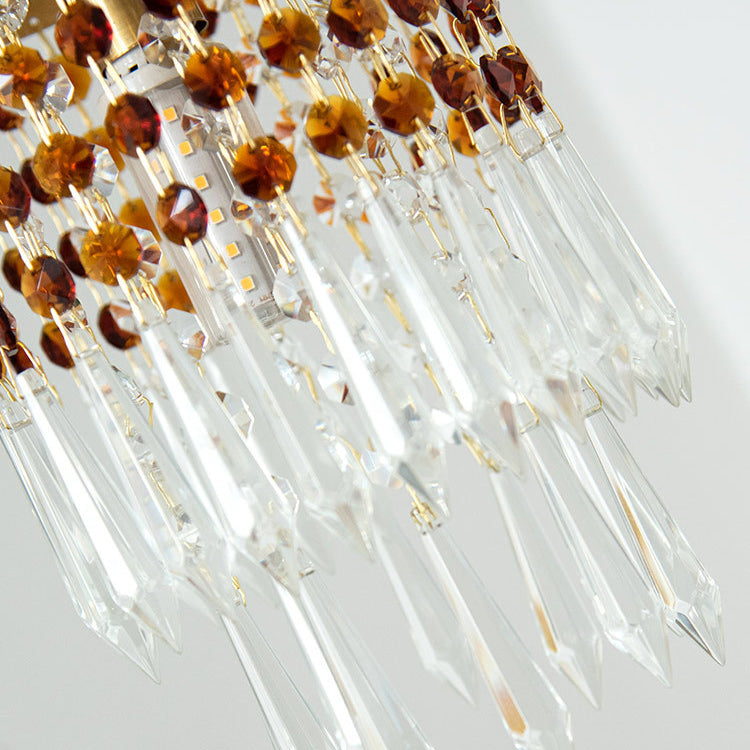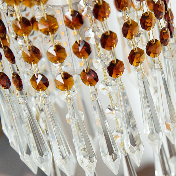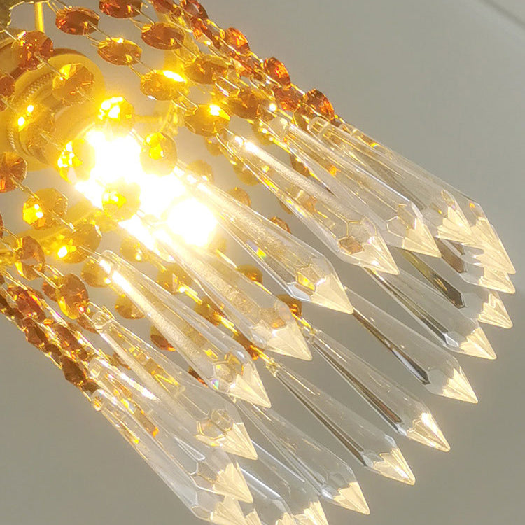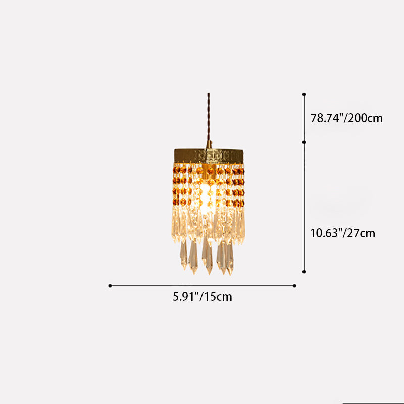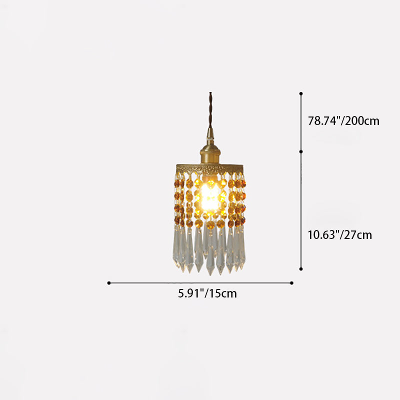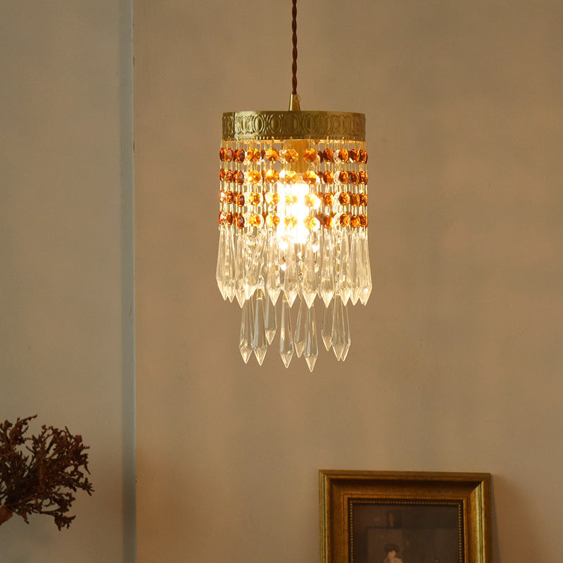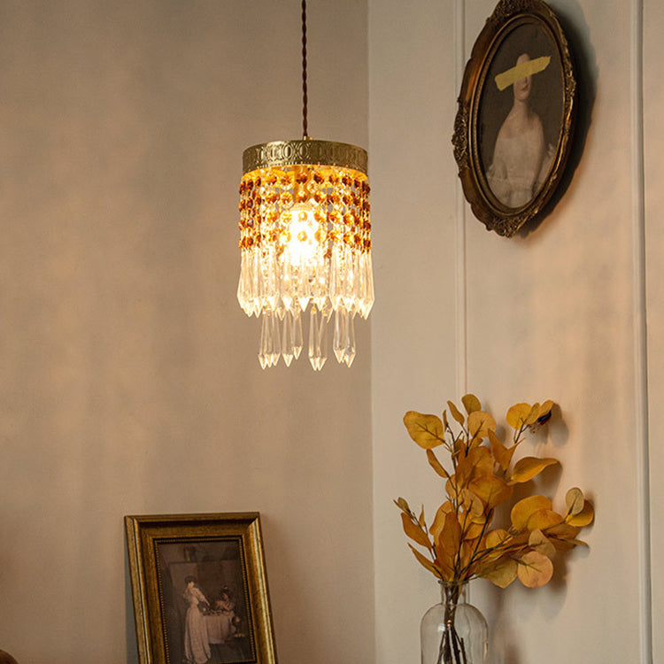 Traditional French Round Teardrop Crystal Copper 1-Light Pendant Light For Living Room