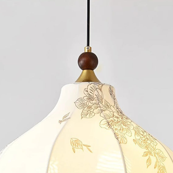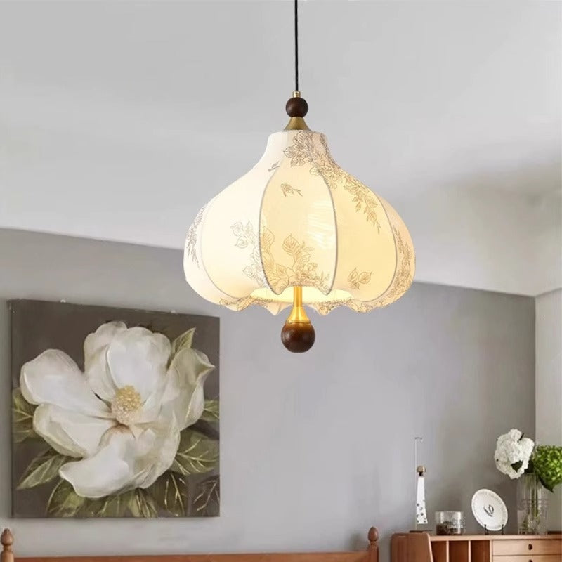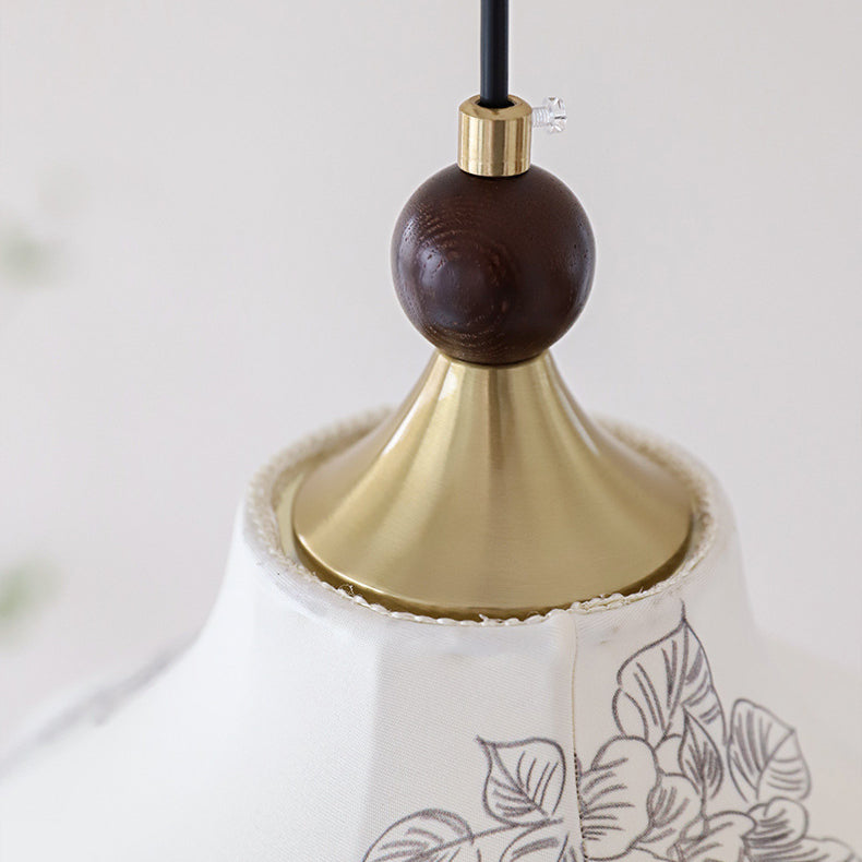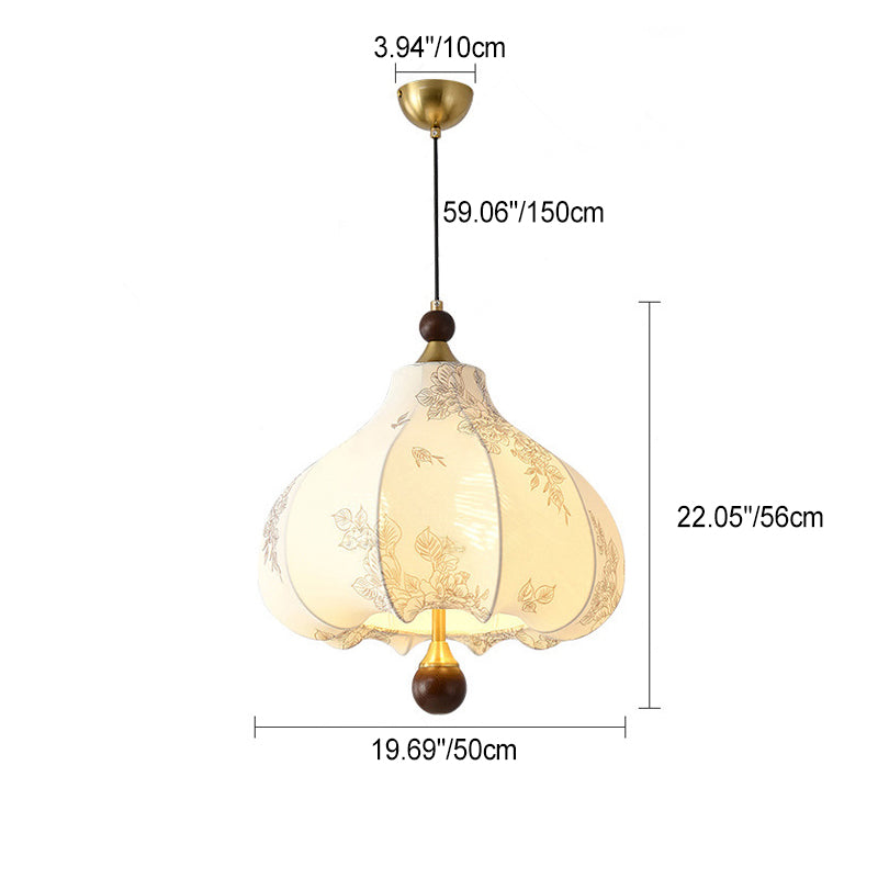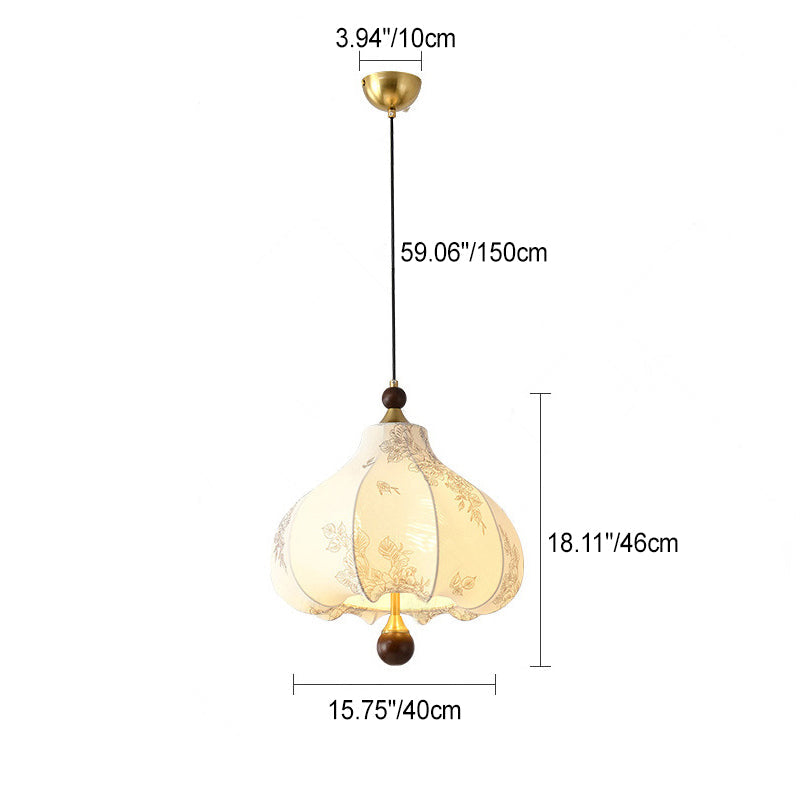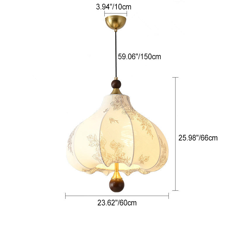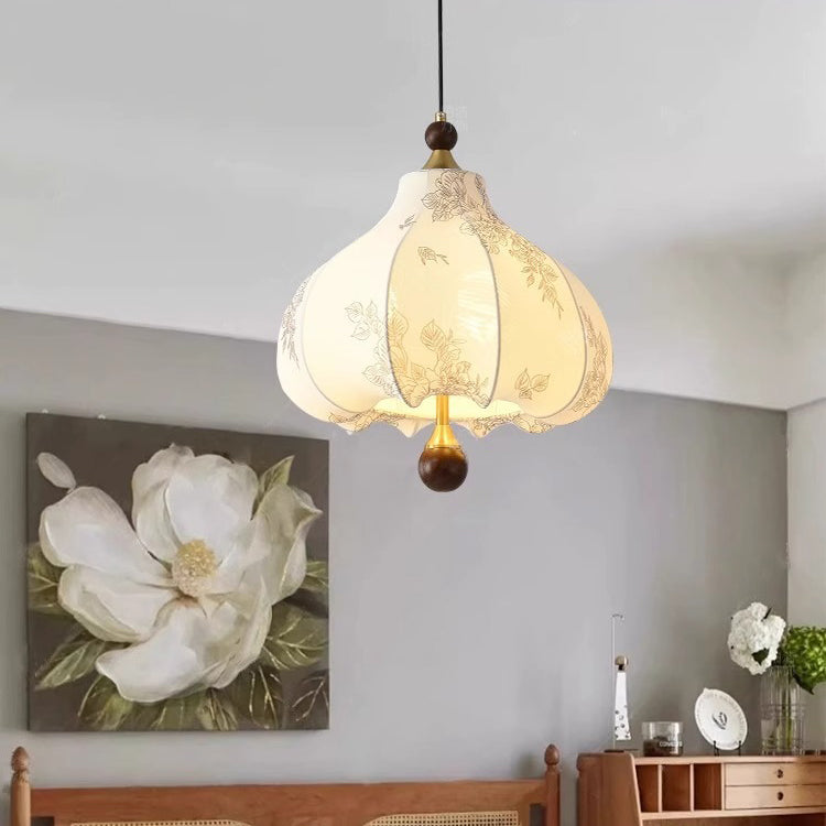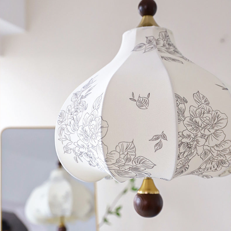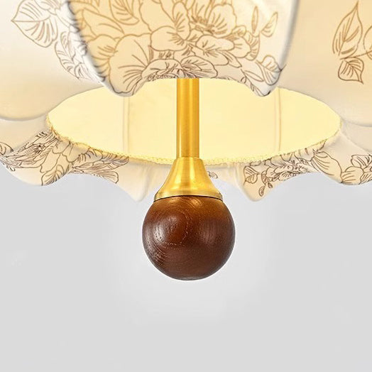 Traditional French Round Trapezoidal Flower Patterned Wood Fabric 1/3/5 - Light Pendant Light For Living Room