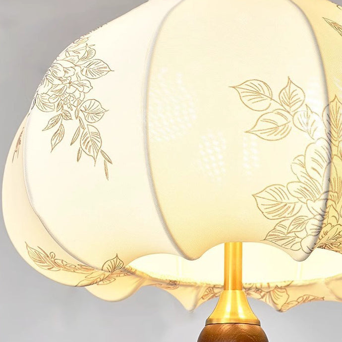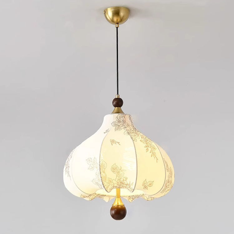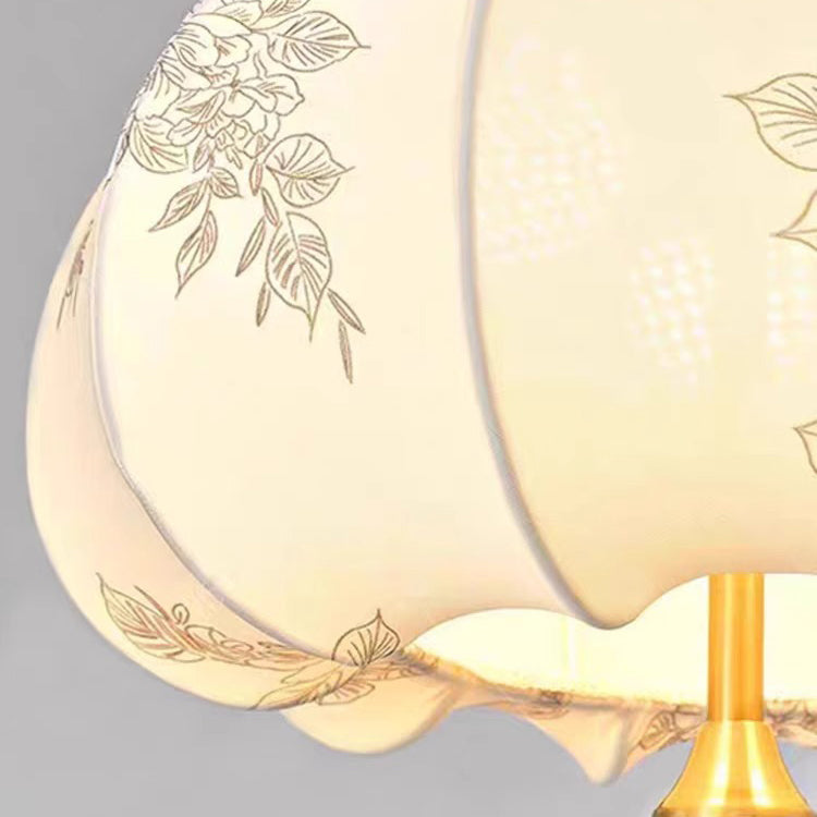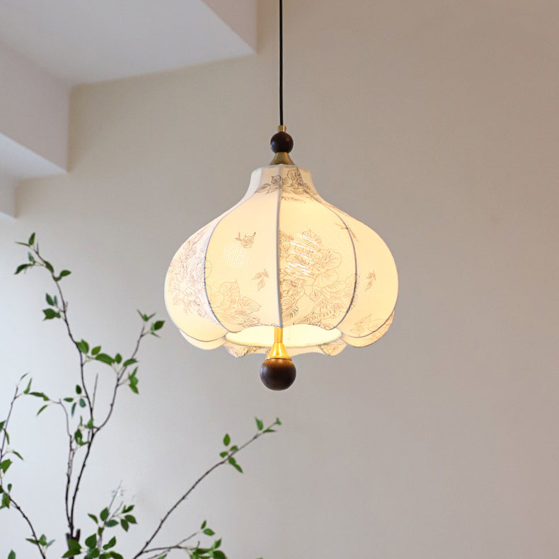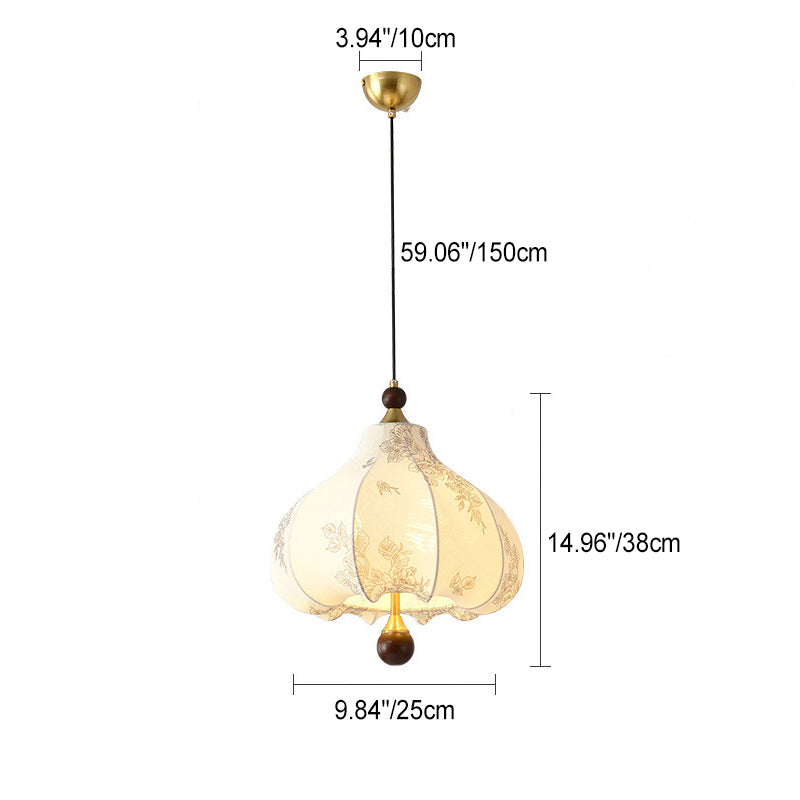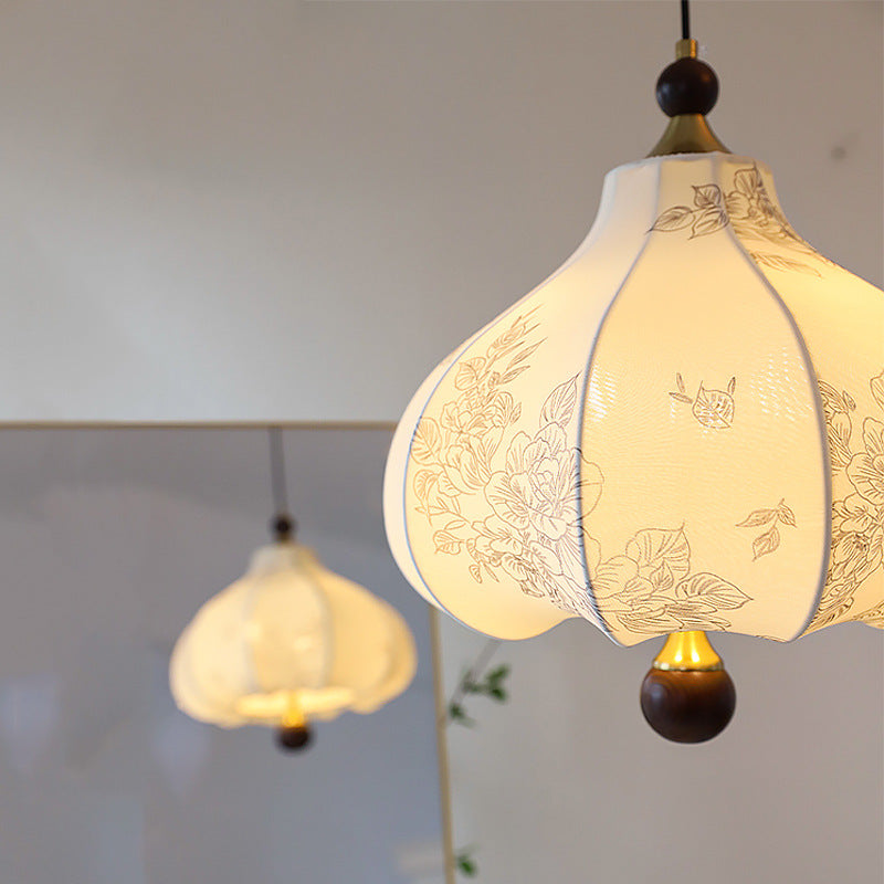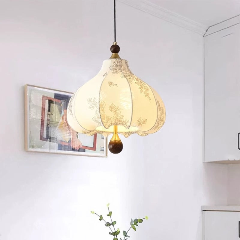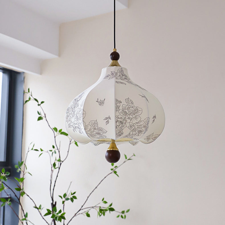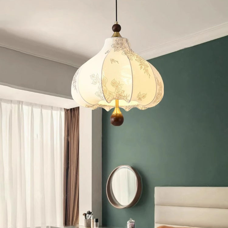 Traditional French Round Trapezoidal Flower Patterned Wood Fabric 1/3/5 - Light Pendant Light For Living Room